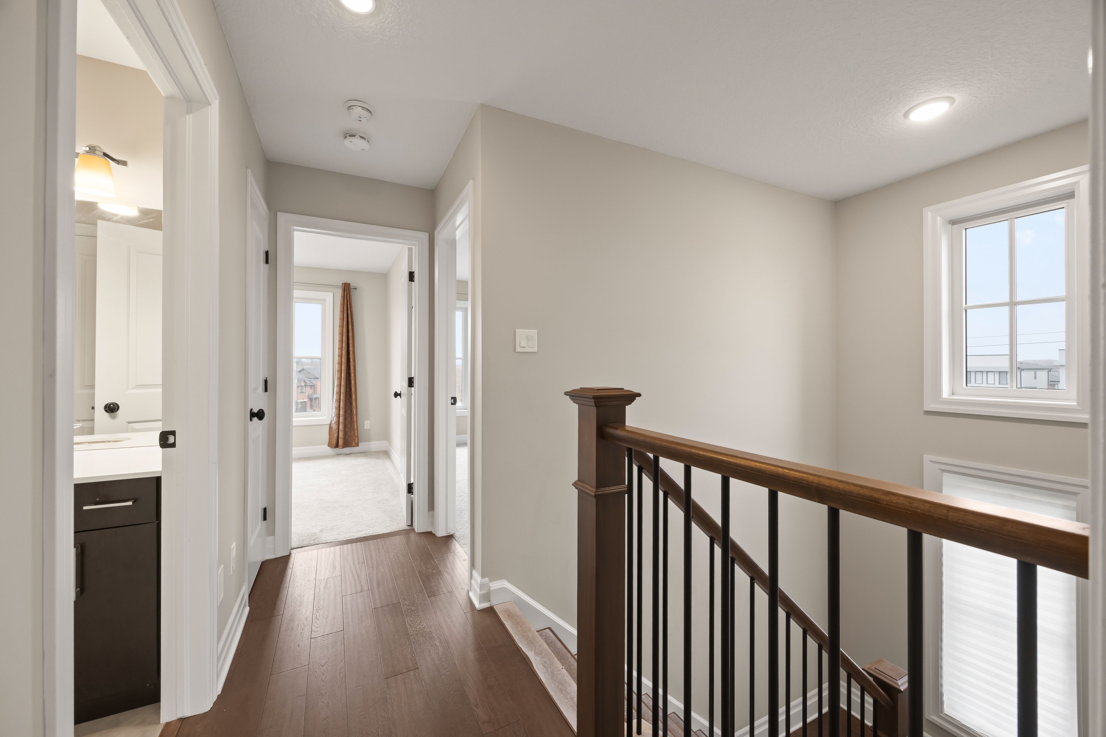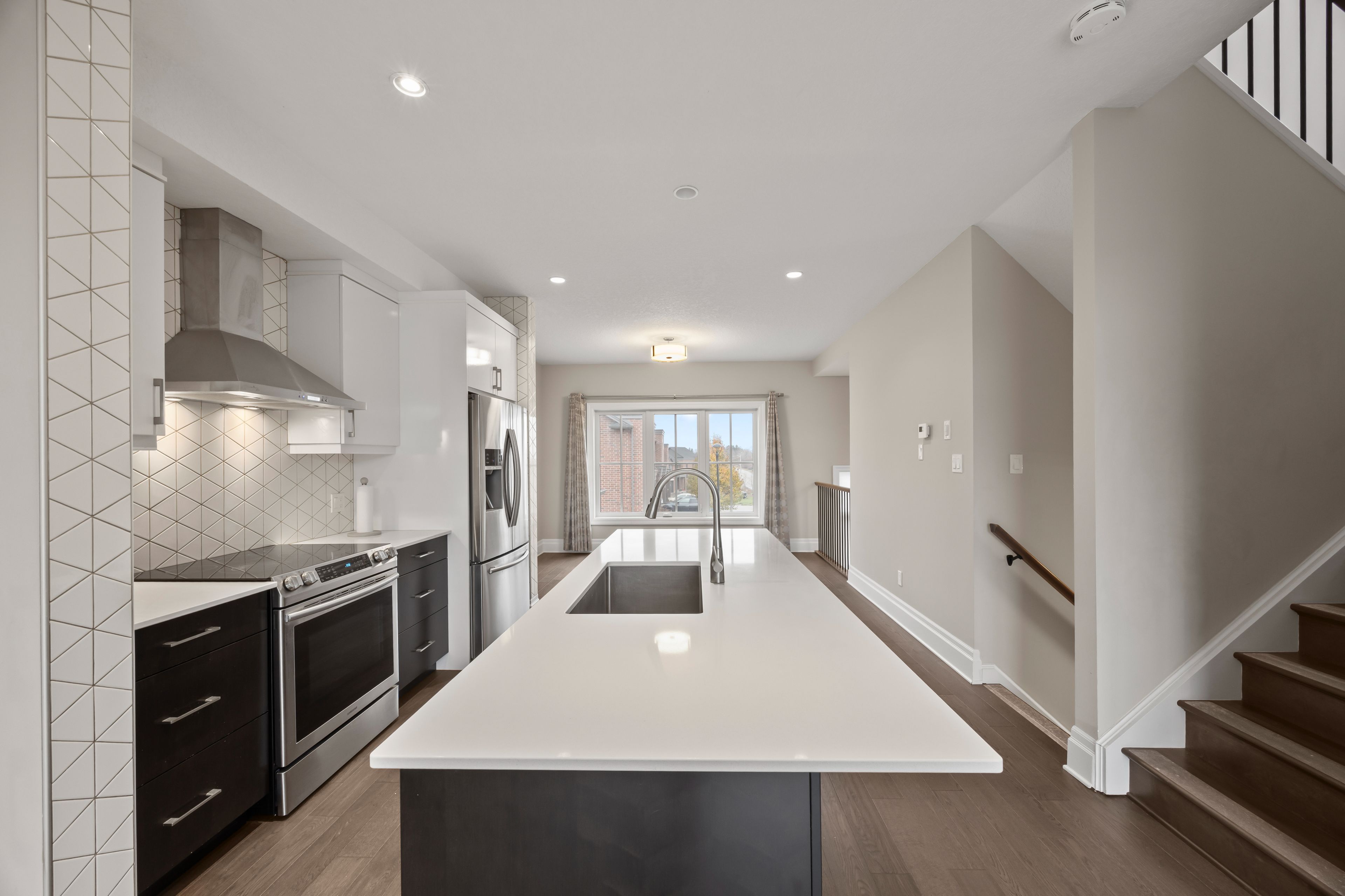• Bright open-concept design with engineered hardwood flooring and a stunning living room.