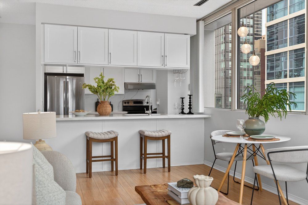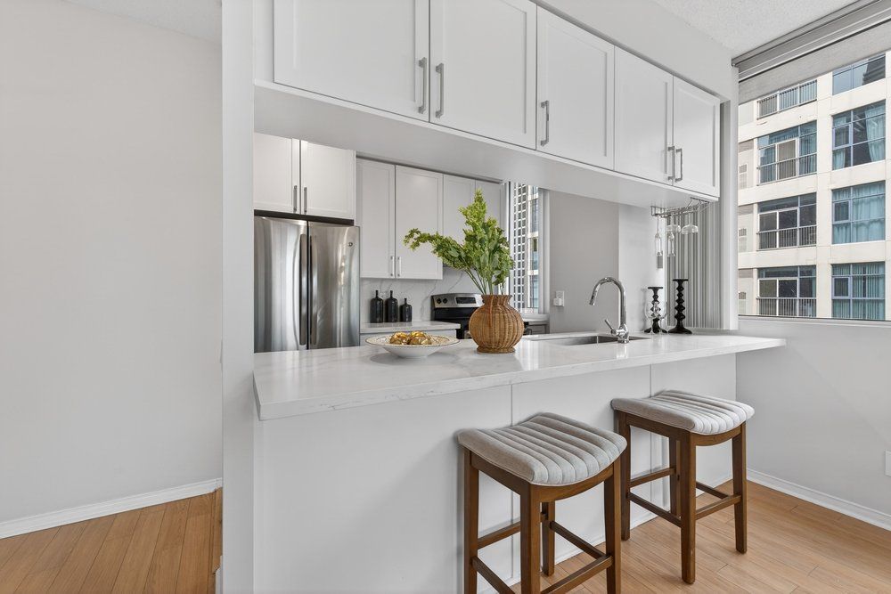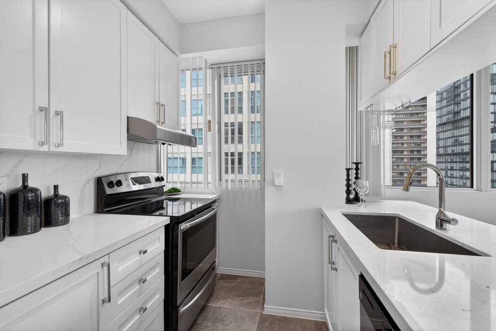 Welcome to this beautifully renovated 1-bedroom condo in the vibrant yonge & wellesley neighbourhood. Thoughtfully redesigned with a sleek, modern aesthetic, this home showcases quality craftsmanship throughout. No expense was spared in transforming the kitchen into a luxurious space any chef would be proud of, featuring quartz countertops, a stylish backsplash, and a breakfast bar with seating for up to four, along with all-new stainless steel appliances including fridge, stove, and dishwasher, perfect for both everyday living and entertaining. The spacious open-concept living and dining area is framed by large windows, filling the space with natural light and offering a desirable northeast exposure. The generously sized bedroom also features expansive windows and a large closet, providing ample storage. A beautifully updated 4-piece bathroom completes the home's contemporary appeal. With parking and a locker included, this turnkey suite offers an exceptional blend of comfort, style, and convenience. Enjoy unbeatable access to everything the city has to offer, just steps to transit, shops, restaurants, cafes, and everyday essentials. Within walking distance to parks, grocery stores, and the subway, this prime location also places you minutes from yorkville, the university of toronto, toronto metropolitan university, and major hospitals, making it an ideal choice for professionals, students, and investors alike.