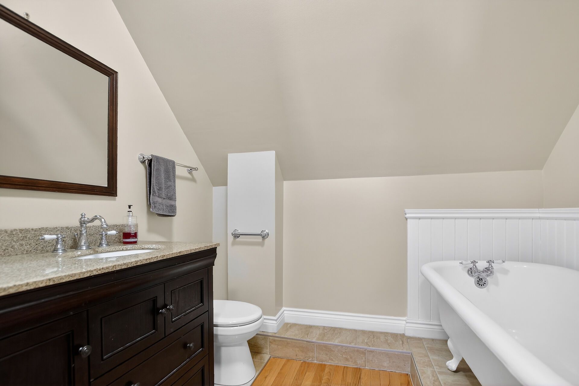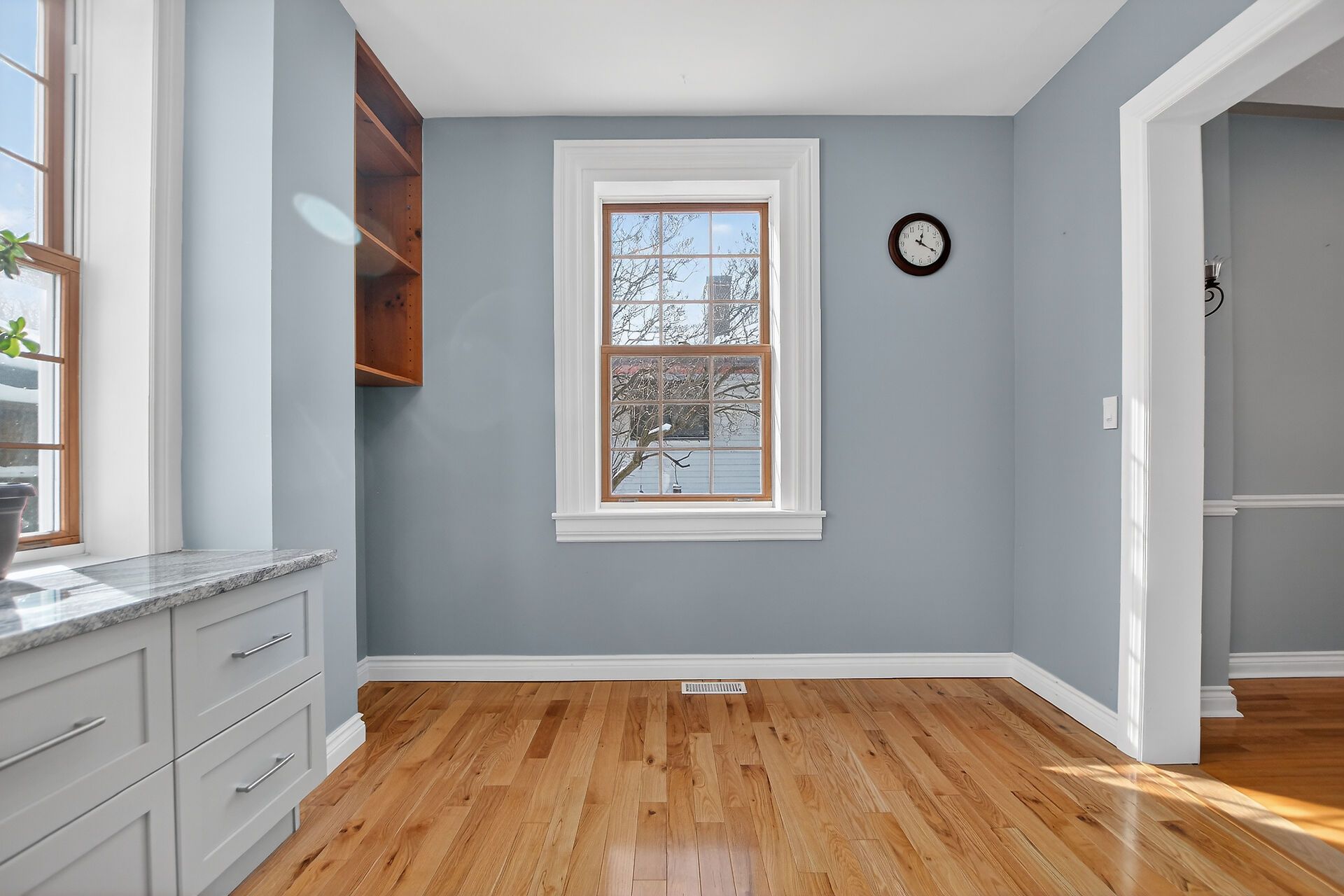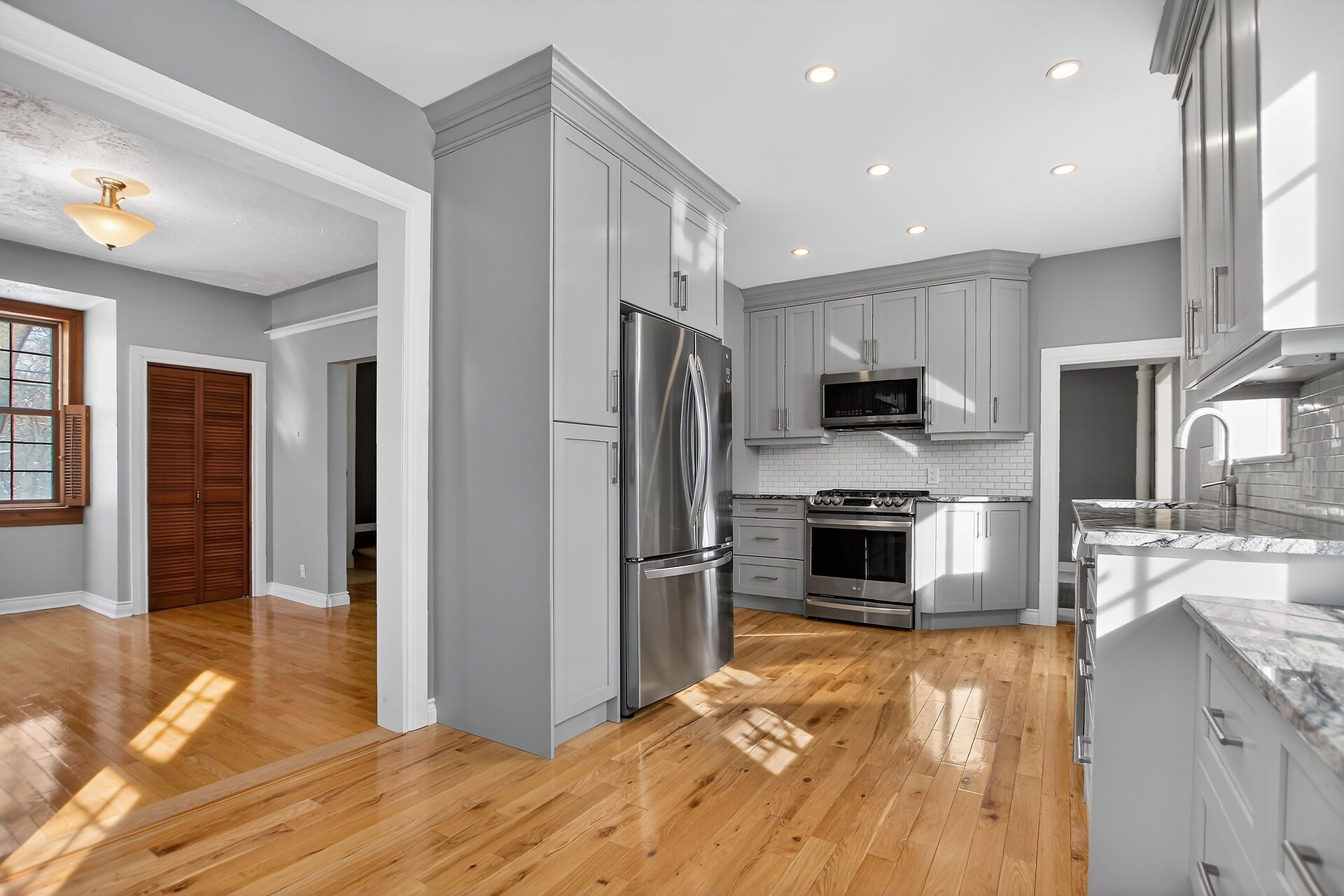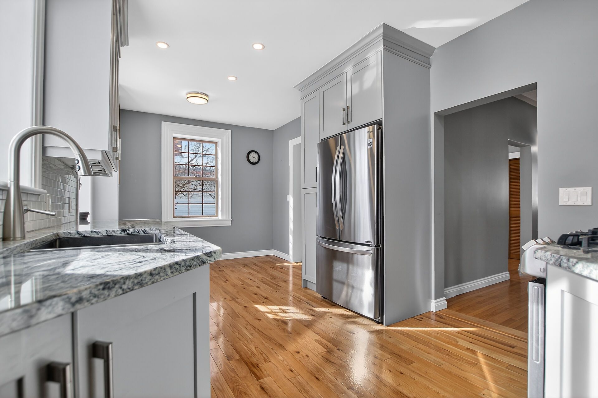 • Remodeled kitchen with granite countertops and eat-in area.