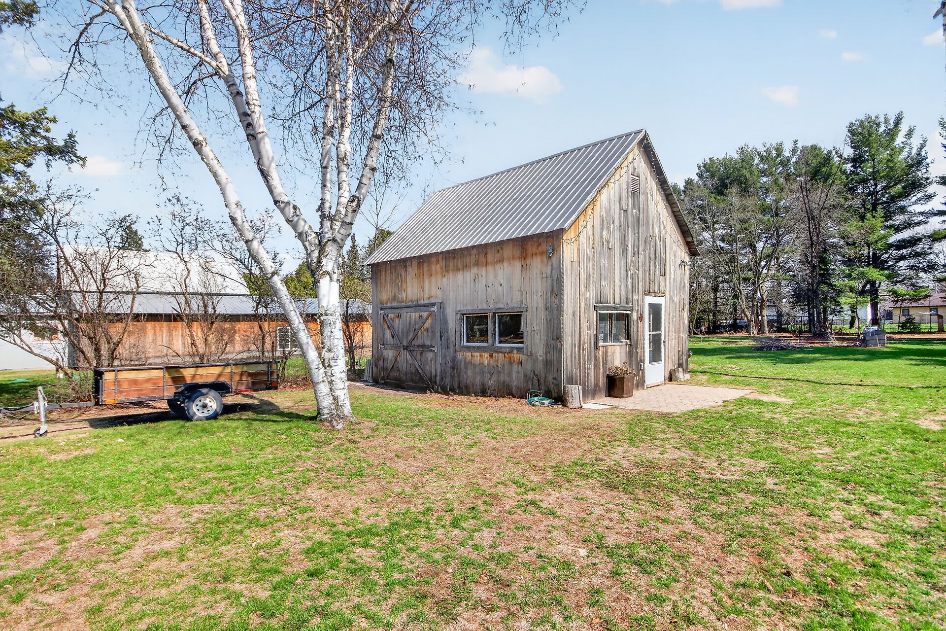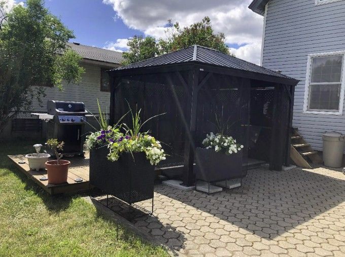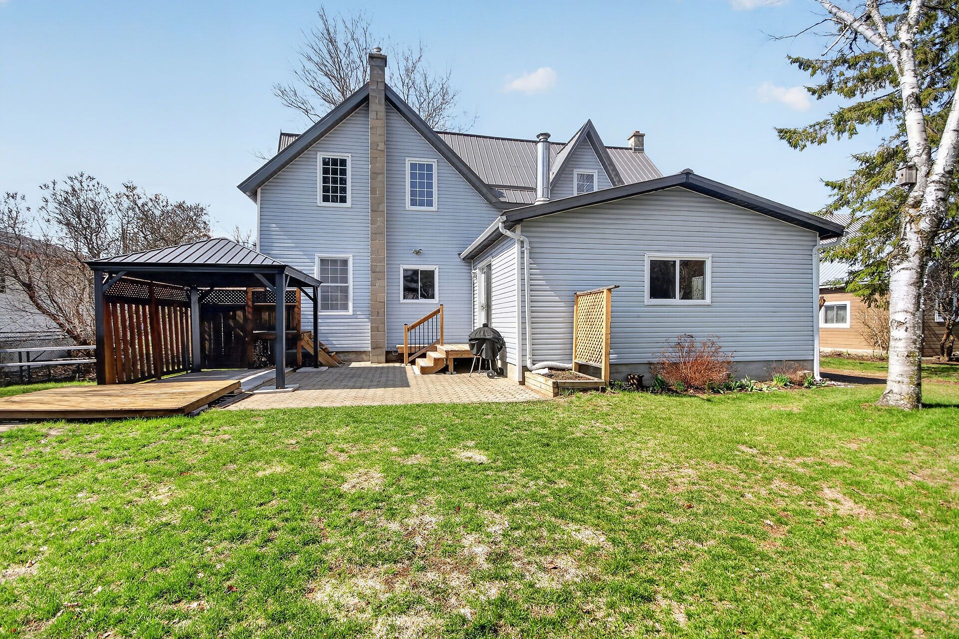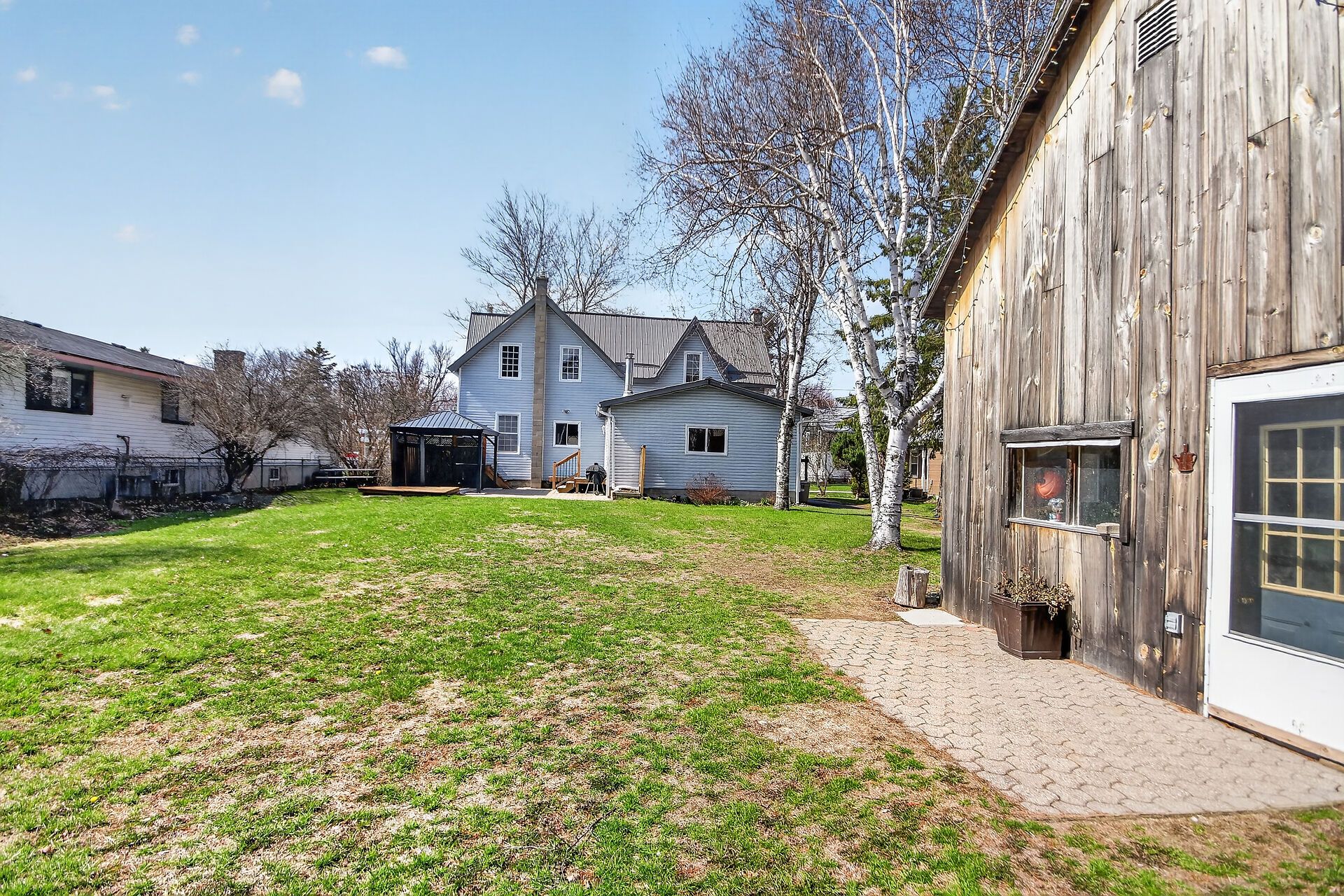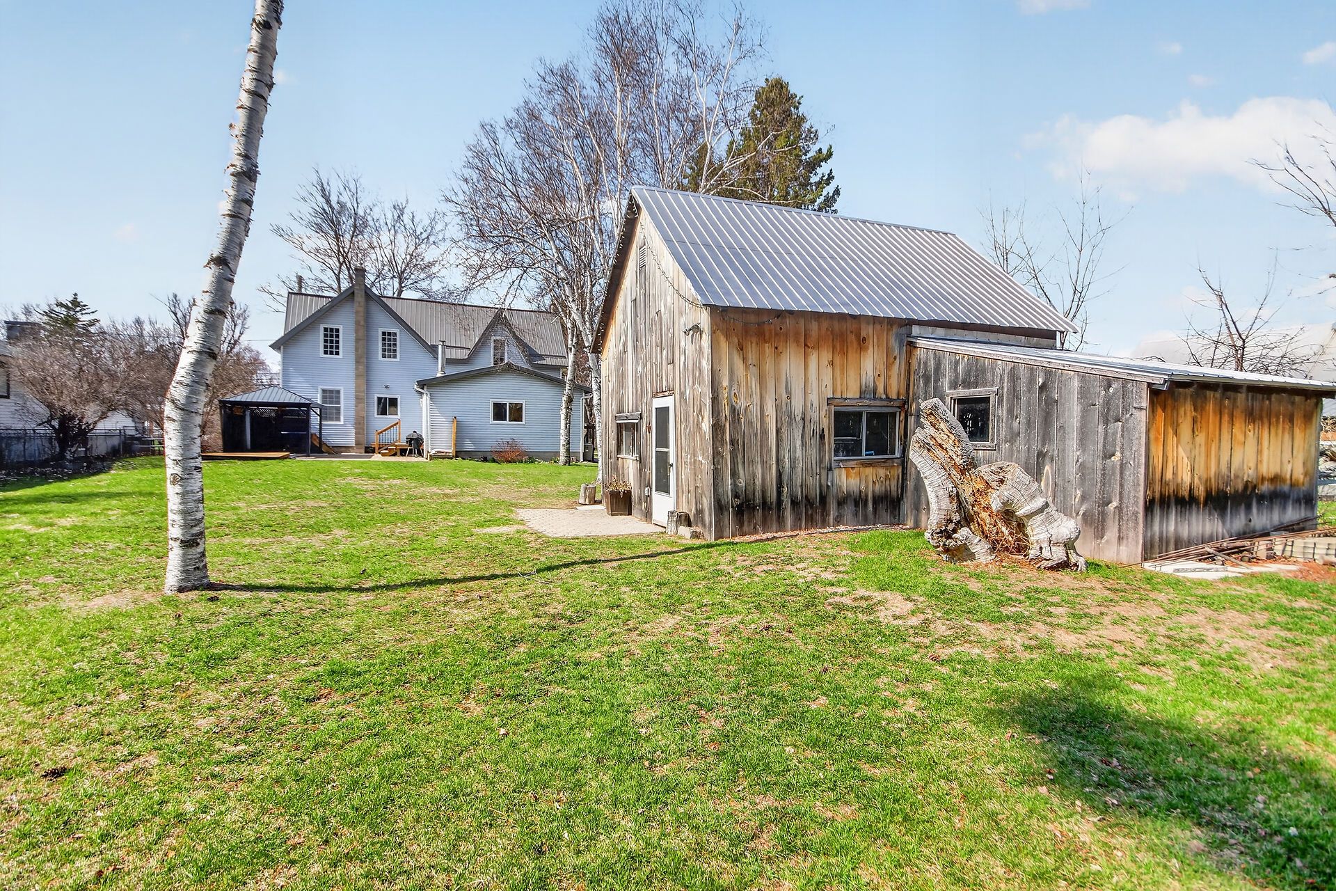 • Large yard with patio, gazebo, and workshop for outdoor activities.