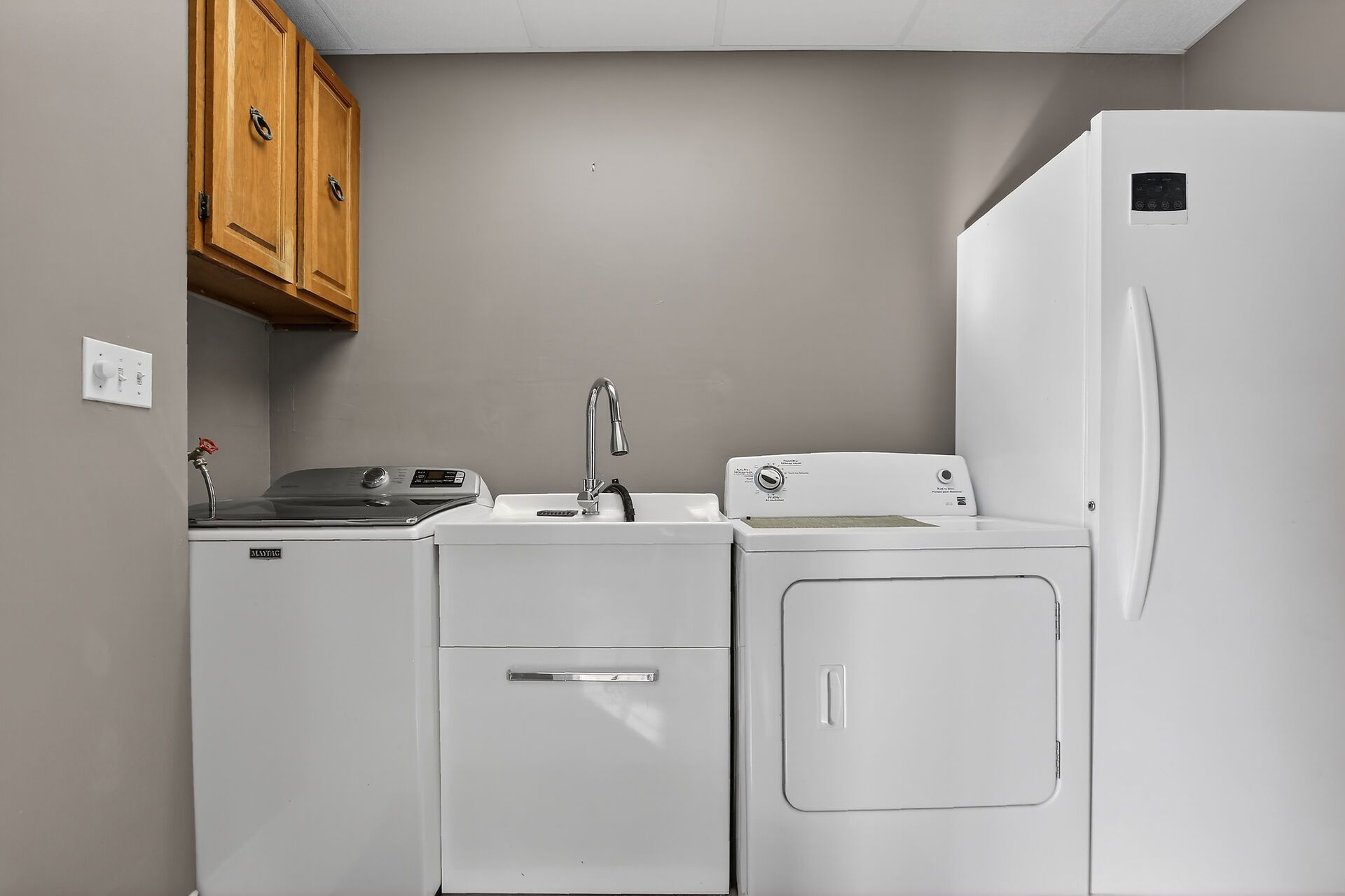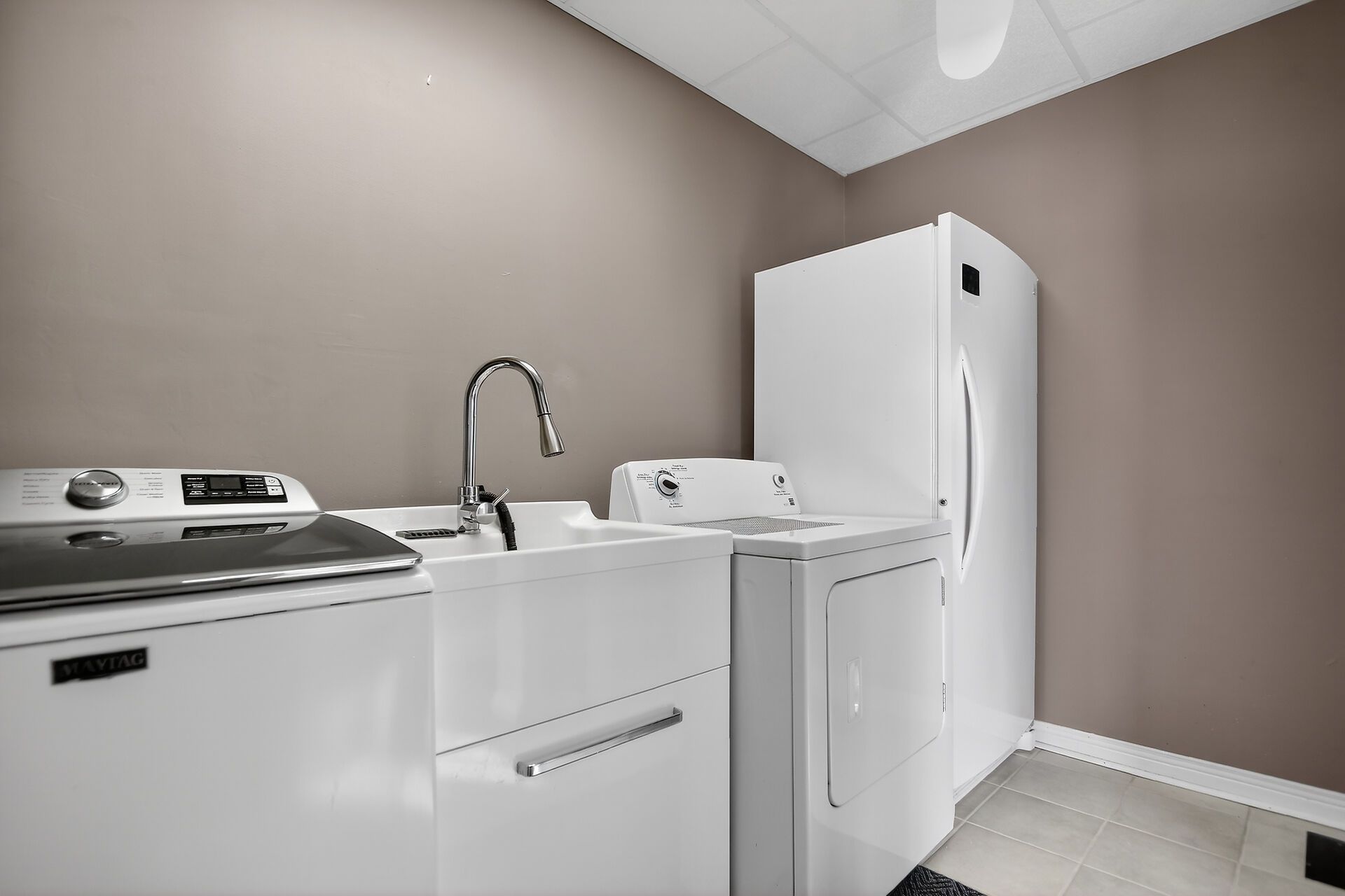 • Spacious living and cozy family room with gas stove.