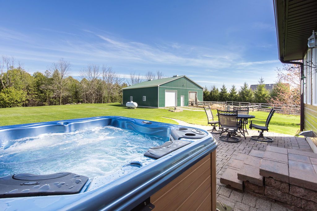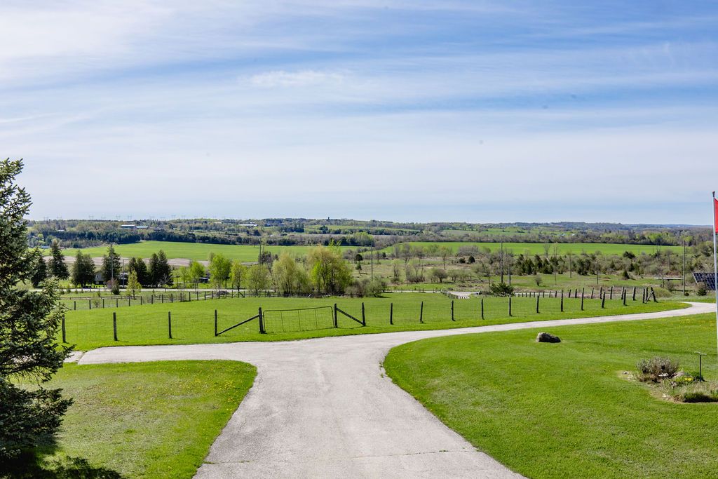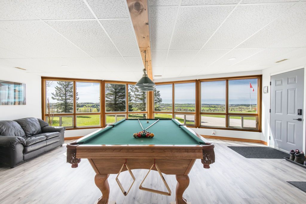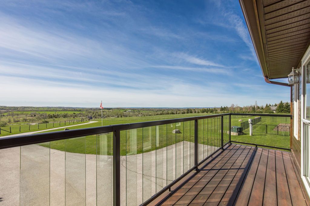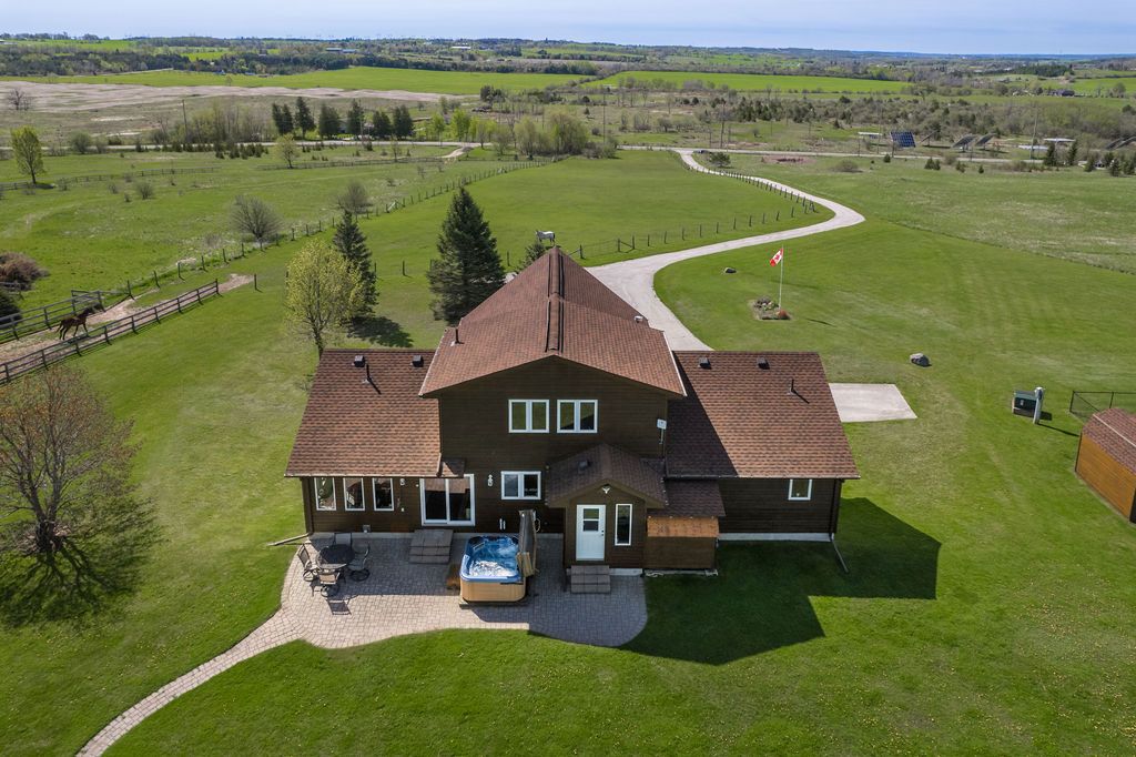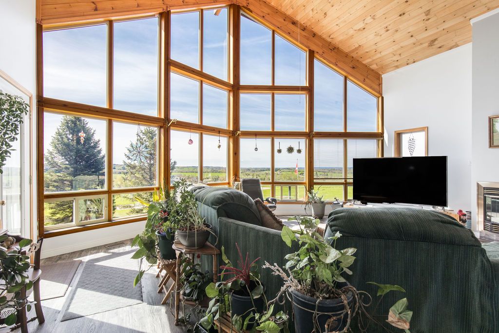 Enjoy panoramic long views & country living on 15 + rolling acres less than an hour from the gta! Privacy plus! Wonderfully bright, south facing contemporary home located just south of barrie with easy access to hwy 400. This home boasts over 3500 sq ft of finished living space, cathedral ceilings, wall-to-wall windows, double fireplace, 2 balconies and a main floor walkout to the patio and hot tub area. Ground level finished basement that has walkouts and an inside garage entry. Lots of possibilities that could include a lower level suite or a 300 sq ft loft bedroom. Enhancements include: updated kitchen in 2021, expansive quartz top centre island, stainless steel appliances, all new flooring, spacious primary bedroom with en suite & walk-in closet, all 3 full baths have been updated, new propane furnace in 2017. A/c in 2018, uv water system, central vac, 50 yr shingles in 2015, & high speed internet.