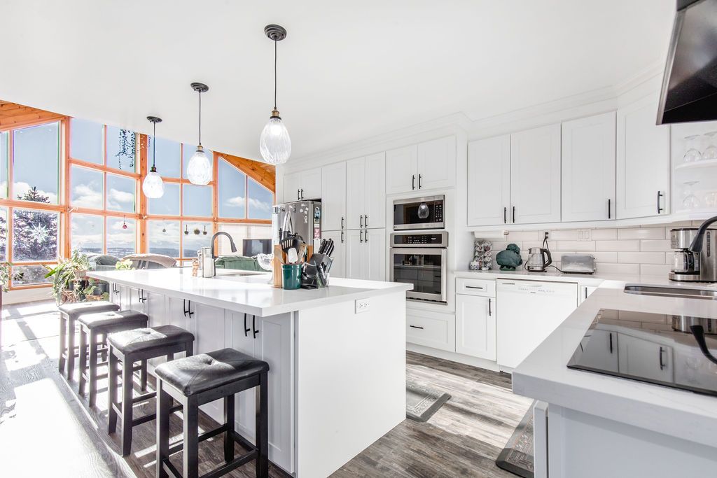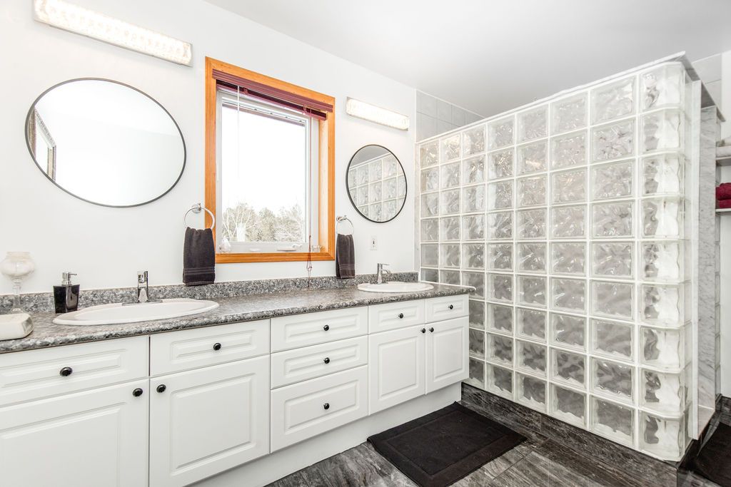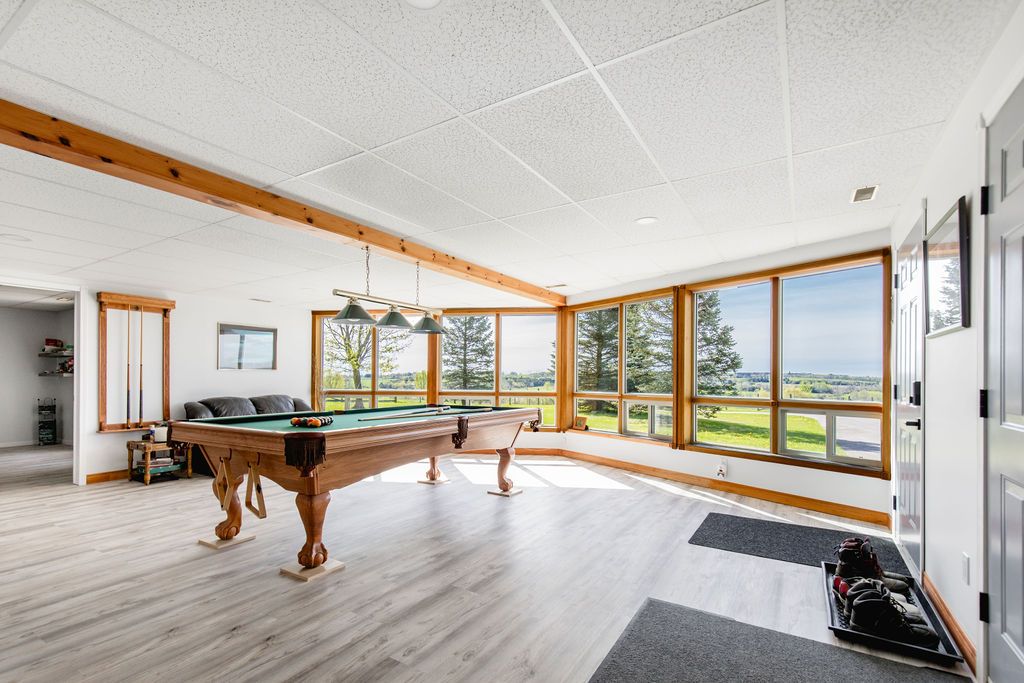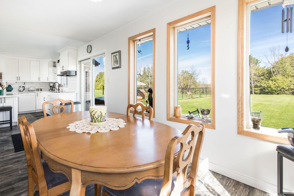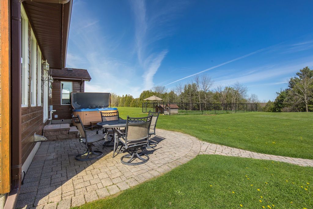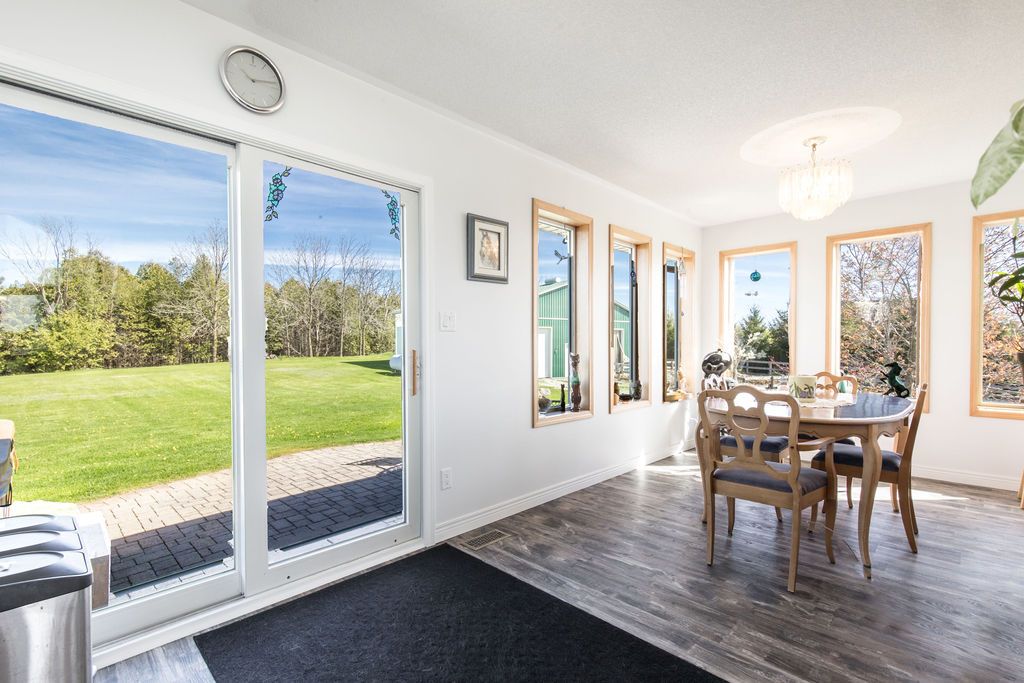 Enjoy panoramic long views & country living on 15 + rolling acres less than an hour from the gta! Privacy plus! Wonderfully bright, south facing contemporary home located just south of barrie with easy access to hwy 400. This home boasts over 3500 sq ft of finished living space, cathedral ceilings, wall-to-wall windows, double fireplace, 2 balconies and a main floor walkout to the patio and hot tub area. Ground level finished basement that has walkouts and an inside garage entry. Lots of possibilities that could include a lower level suite or a 300 sq ft loft bedroom. Enhancements include: updated kitchen in 2021, expansive quartz top centre island, stainless steel appliances, all new flooring, spacious primary bedroom with en suite & walk-in closet, all 3 full baths have been updated, new propane furnace in 2017. A/c in 2018, uv water system, central vac, 50 yr shingles in 2015, & high speed internet.