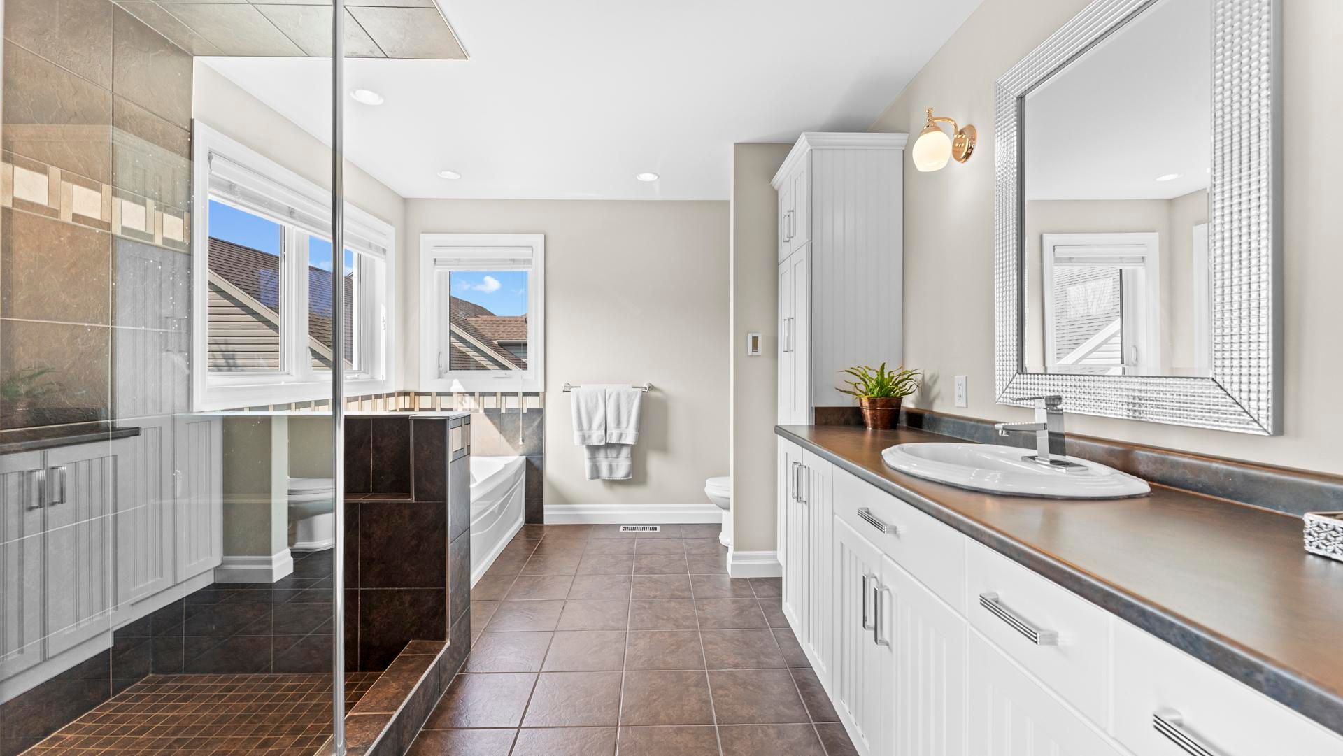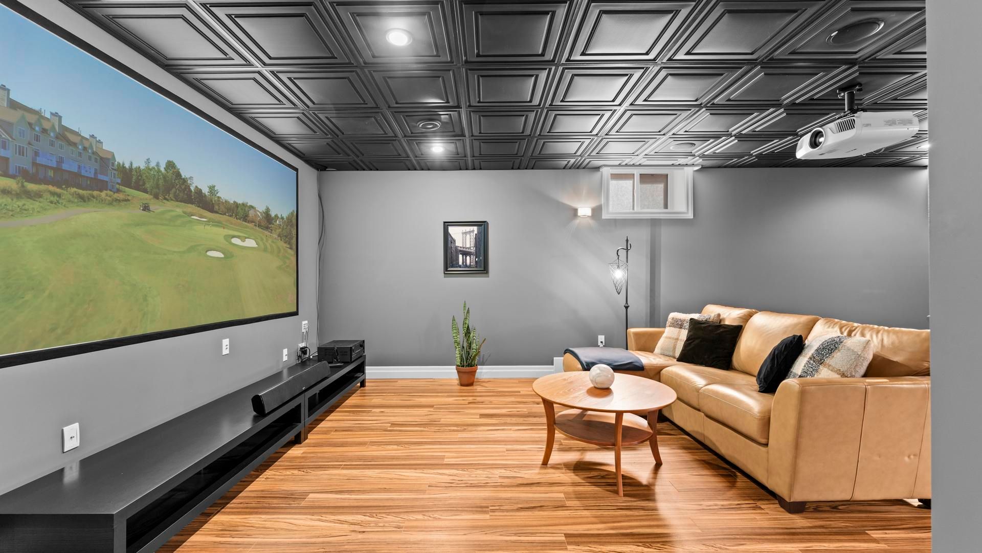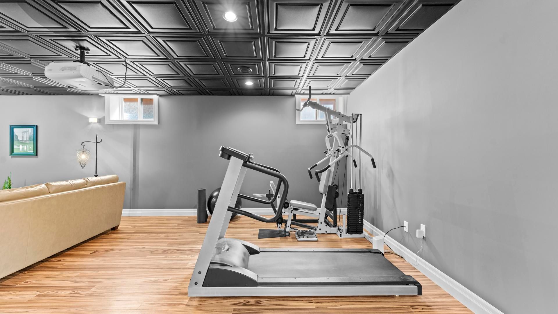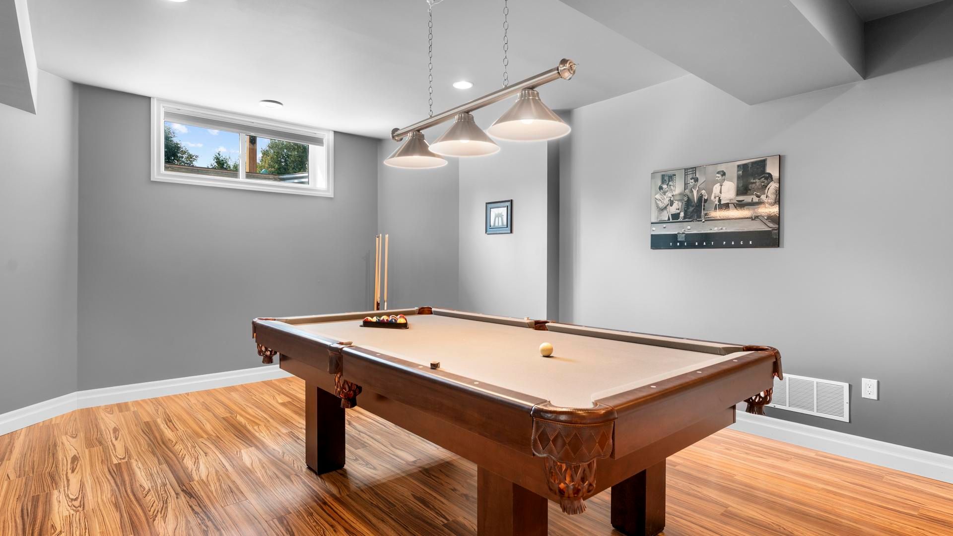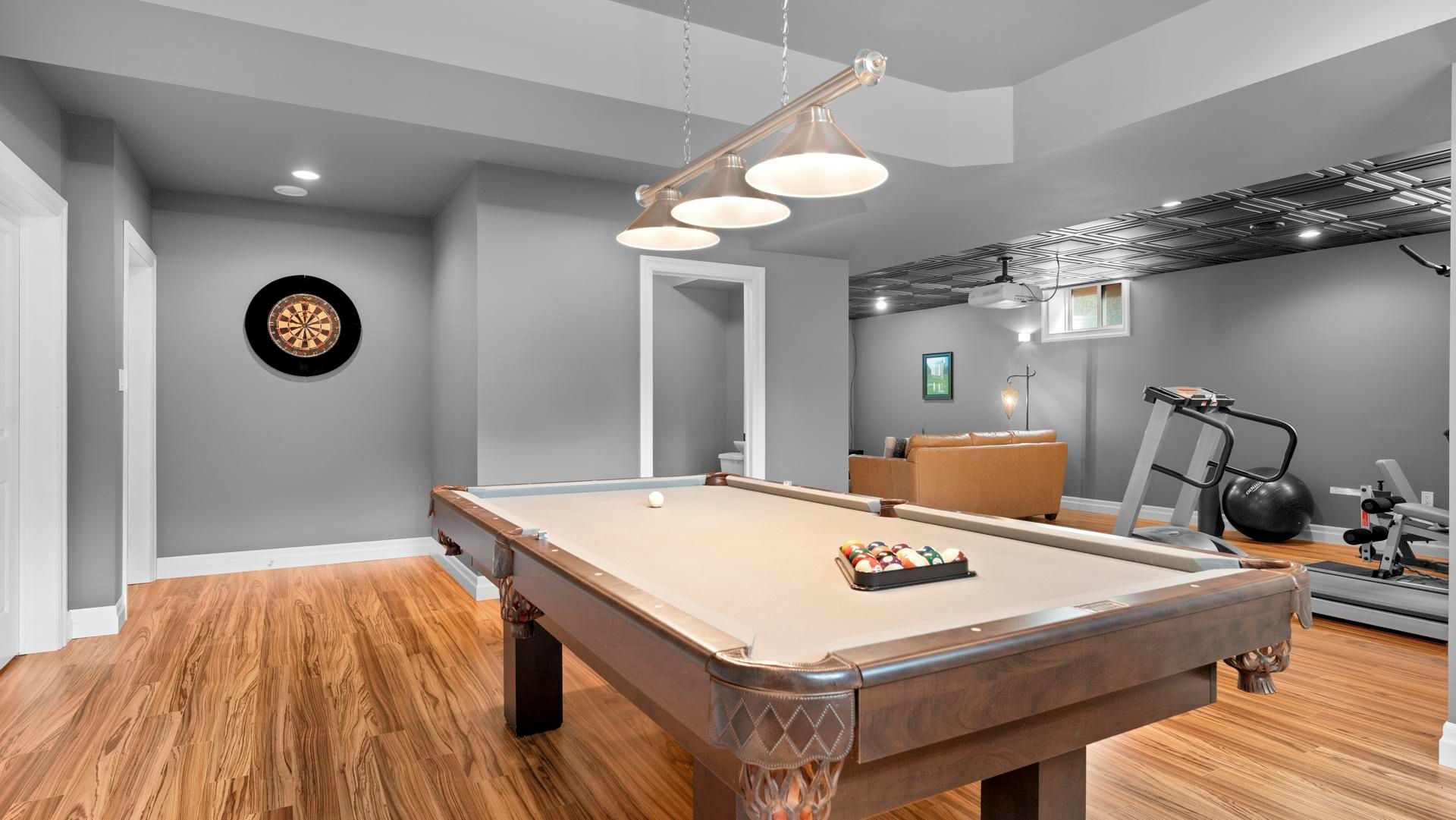 • Lower level features media room, games area, and fitness corner.