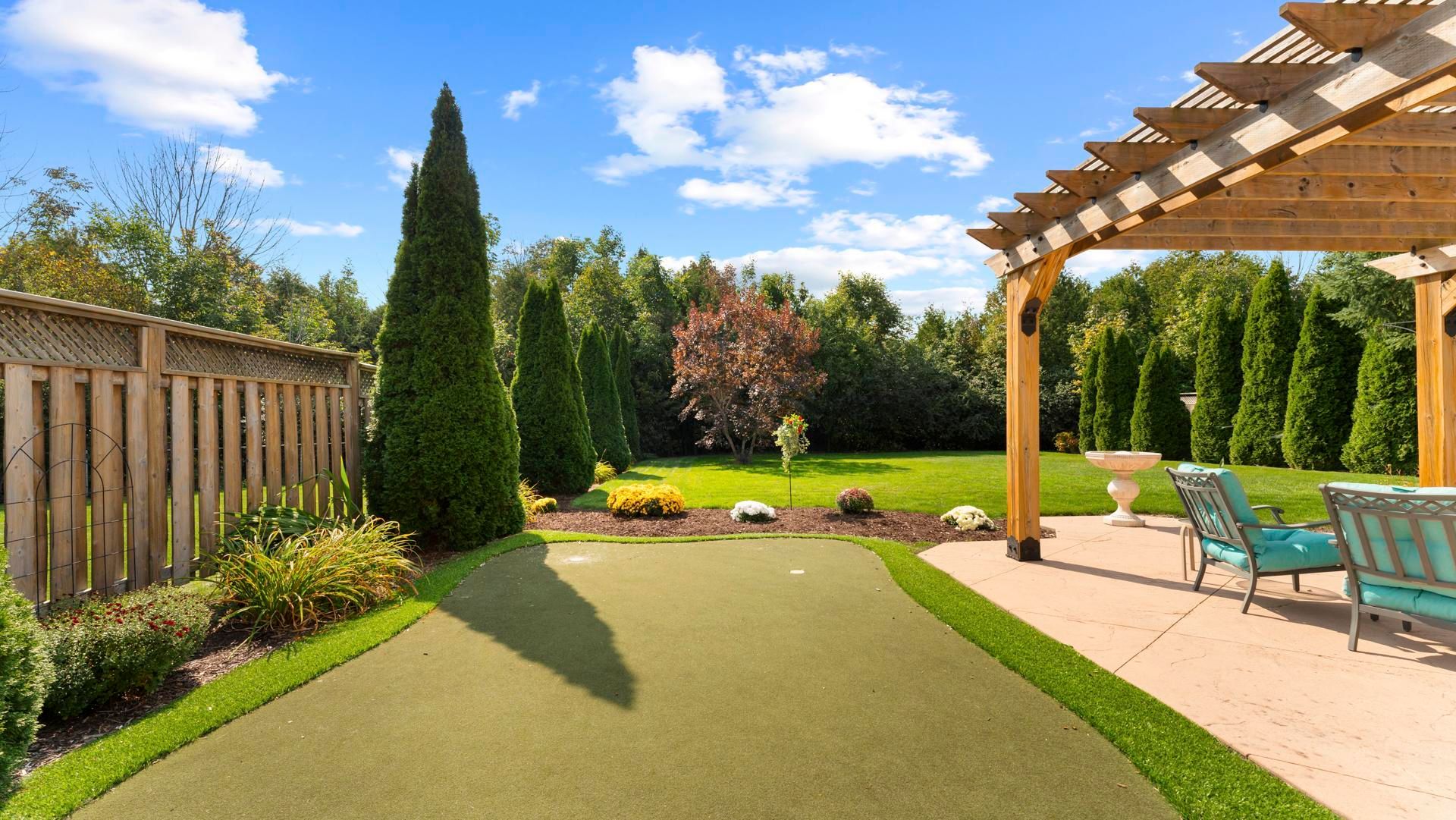 Under the kincardine sun in the desirable hunter's ridge community, you'll find this meticulously maintained terracotta beauty. Tucked away on a quiet cul-de-sac, this two-storey family home offers exceptional privacy with a spacious, green backyard that backs onto a peaceful ravine. Step through the front door and immediately feel the pride of ownership throughout. The home offers a wonderful flow from front to back, beginning with the bright living room and kitchen, both featuring large windows that fill the space with natural light. The open-concept design leads seamlessly outside to a poured concrete patio. Perfect for entertaining, complete with a pergola and even a private putting green to keep your short game sharp. The kitchen is beautifully appointed with rich cherry cabinetry, sleek granite countertops, an induction stove, and stainless steel appliances. Convenience is key with a main floor laundry room and a clever laundry chute from the primary bedroom, making everyday living that much easier. Upstairs, you'll find three bedrooms and a custom 3-piece bathroom. The primary suite is a true retreat, featuring a custom dressing room, a stunning ensuite, and its own private walk-out balcony. The lower level continues to impress with a media room, games area, and a dedicated fitness corner. The garage also provides direct access to the lower level, along with an additional 3-piece bathroom for added convenience. This property is truly a showpiece and must be seen to be fully appreciated. Contact your realtor today to schedule a viewing.
