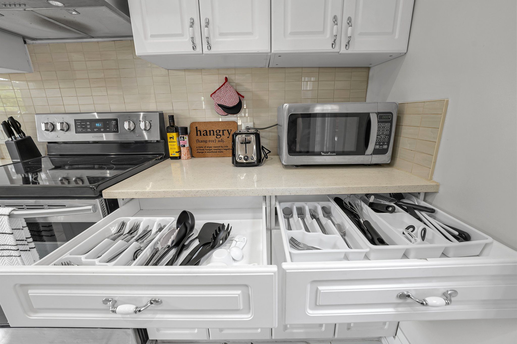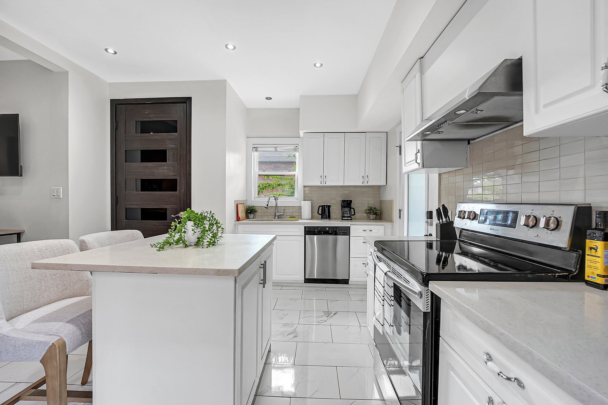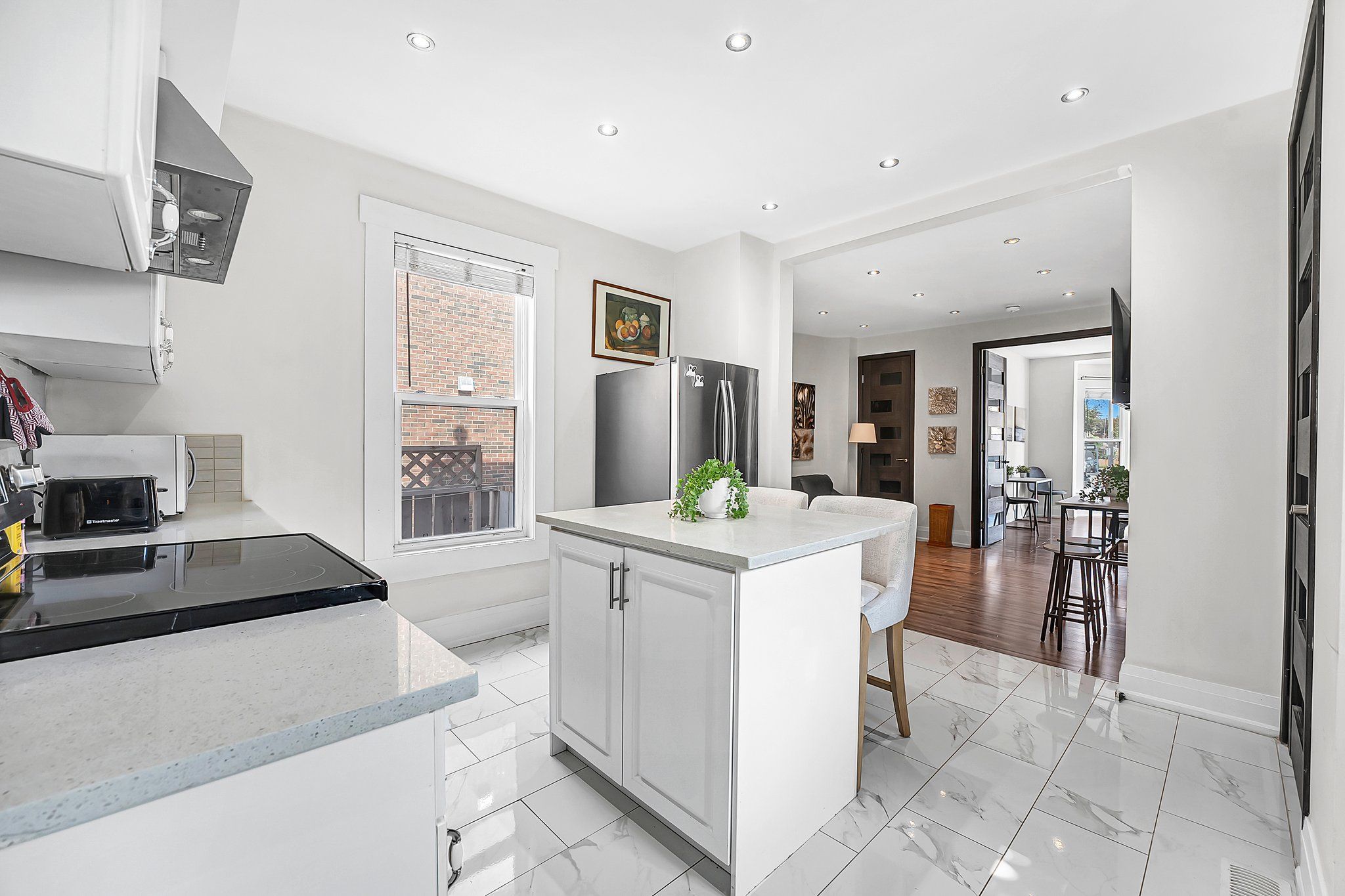 • Open-concept design with kitchen, living, and dining areas perfect for hosting.