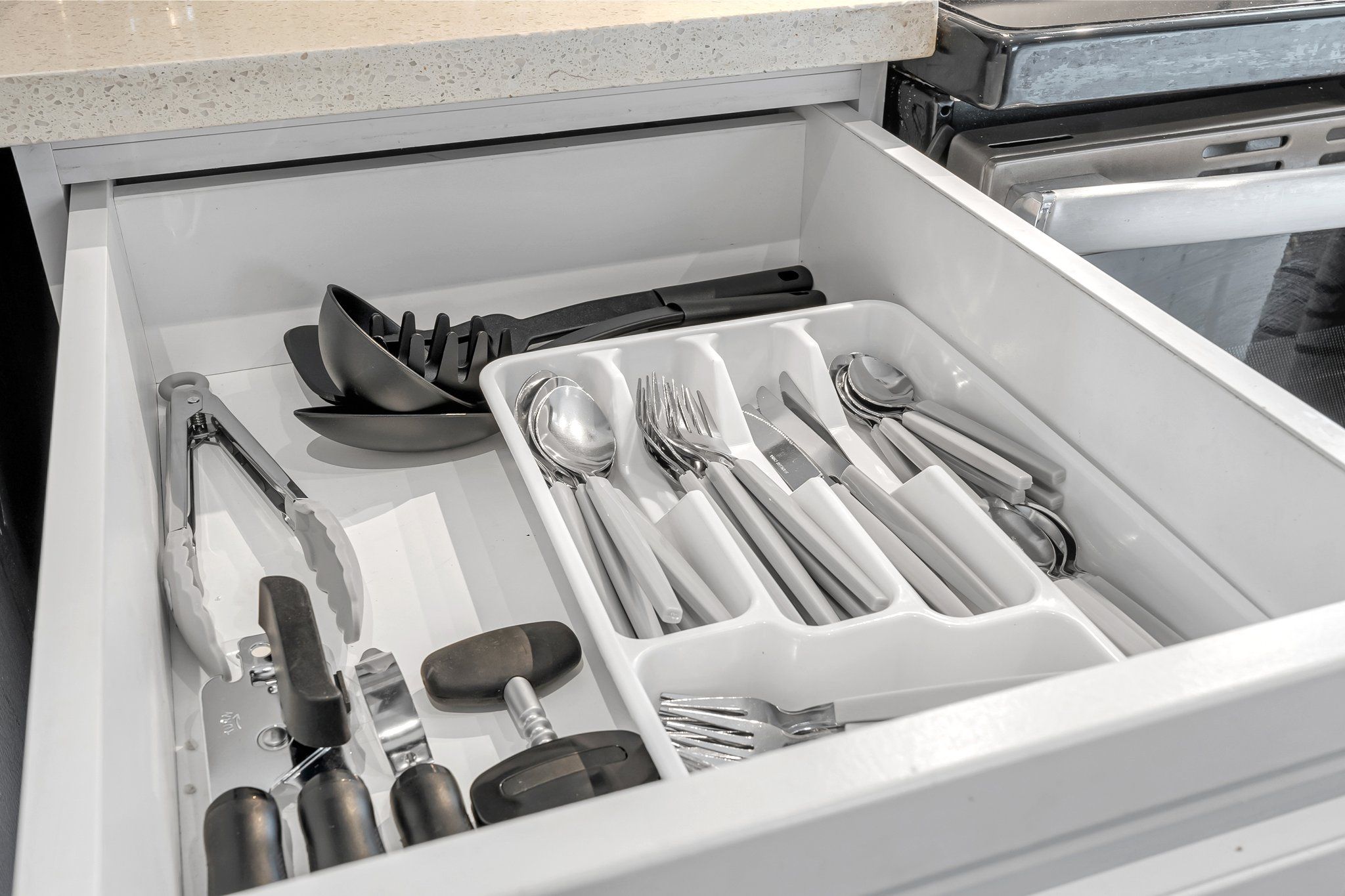 • Functional living space with modern laminate flooring and stainless steel appliances.