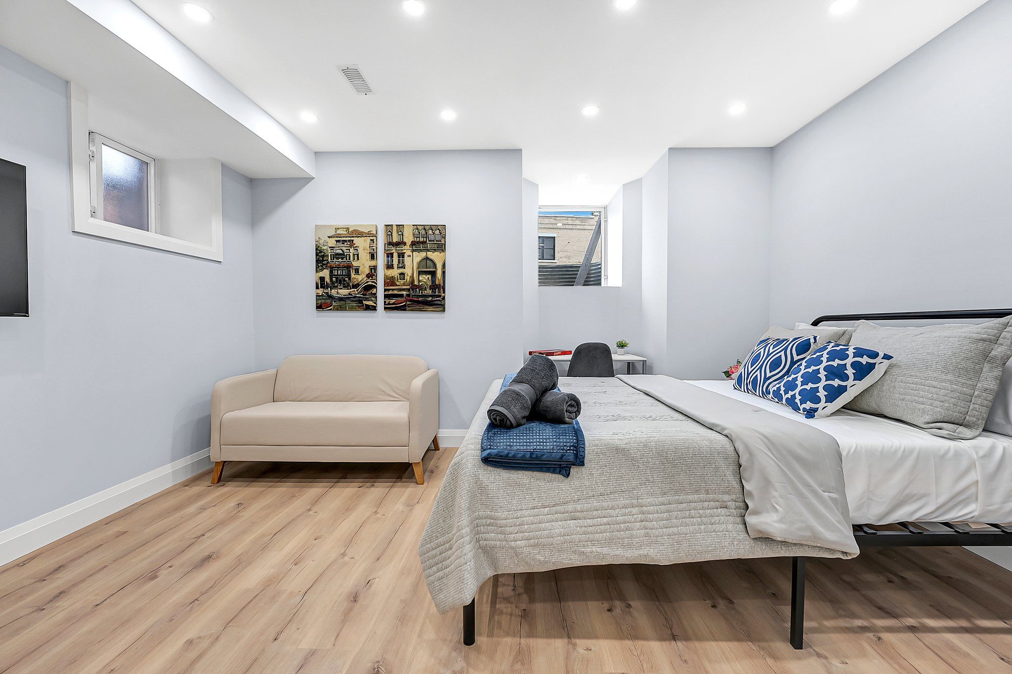 • Fully furnished basement apartment with spacious bedroom and walk-in closet.