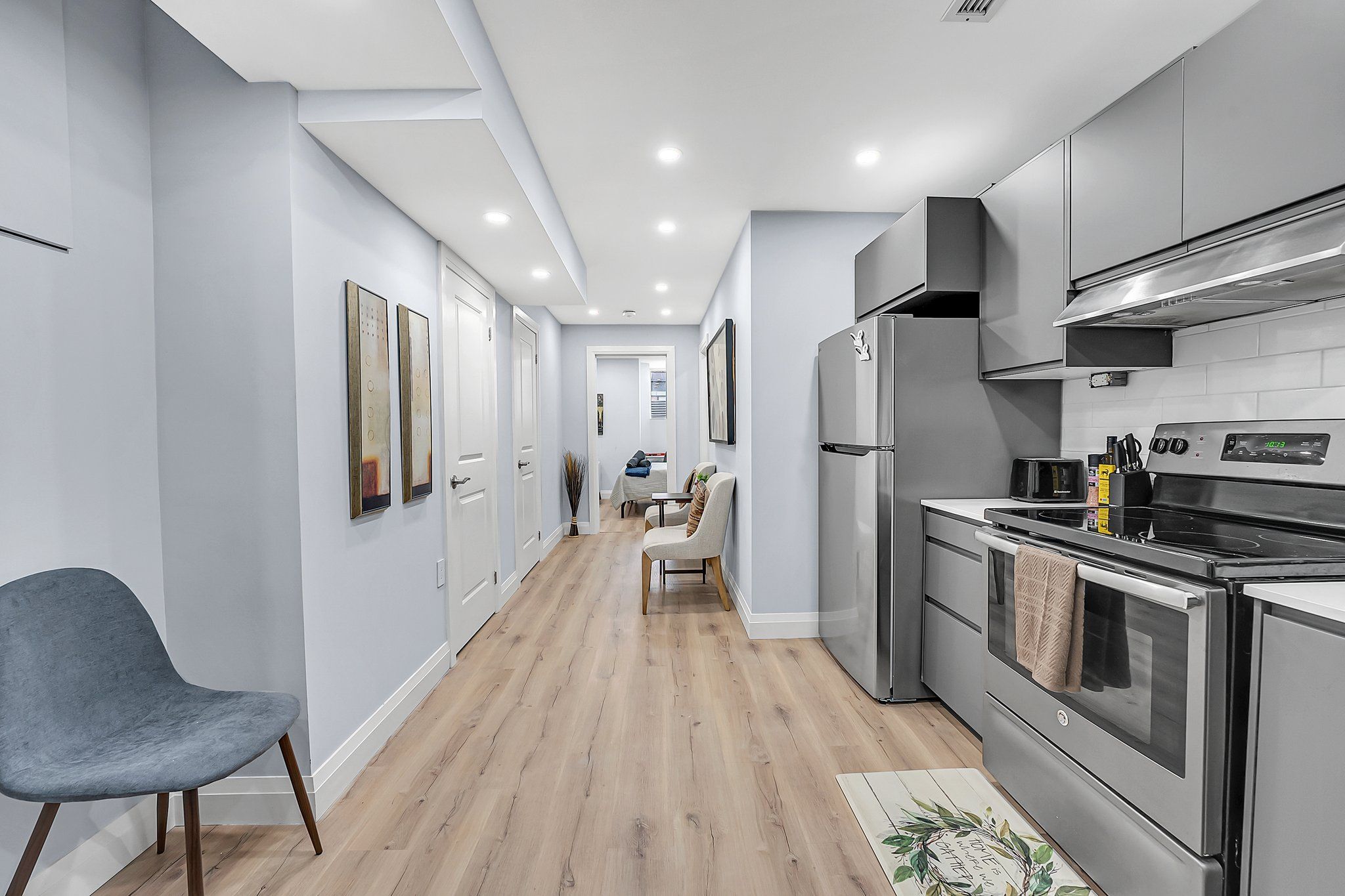 Welcome to unit #3 at 556 king st e, located in hamilton's landsdale community. This fully furnished basement apartment features a spacious bedroom with a walk-in closet, a 3-piece bathroom with a stand-up shower, and a modern eat-in kitchen complete with quartz countertops and stainless steel appliances. Additional highlights include 8-foot ceilings, laminate flooring, and pot-lights throughout, creating a bright and contemporary living space. Conveniently situated with easy access to highway 403, the hamilton go centre, st. Joseph's hospital, hamilton city hall, the art gallery of hamilton, as well as nearby schools, parks, shops, restaurants, and other local amenities, this unit offers comfortable, turnkey living in a central and well-connected location.