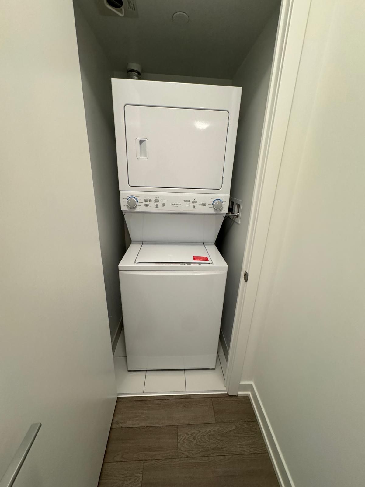Welcome to the dylan - a luxurious one-bedroom, two-bathroom condo with a versatile enclosed den, perfectly situated in one of the city's most connected and convenient neighborhoods. Nestled in a vibrant community, this modern residence offers exceptional access to public transportation, making commuting effortless. You'll also enjoy being just steps from premier shopping, diverse dining options, parks, and everyday essentials, ensuring everything you need is always within reach. Inside, the condo features a bright, spacious open-concept layout with high-quality finishes throughout. The private den with full enclosure provides the flexibility to be used as a home office or even a second bedroom. The contemporary kitchen is outfitted with sleek cabinetry, quartz countertops, and high-end stainless steel appliances, perfect for both cooking and entertaining. Additional highlights include laminate wood flooring, modern fixtures, and a private balcony offering great views. This is urban living at its finest-comfort, style, and unbeatable convenience all in one.
