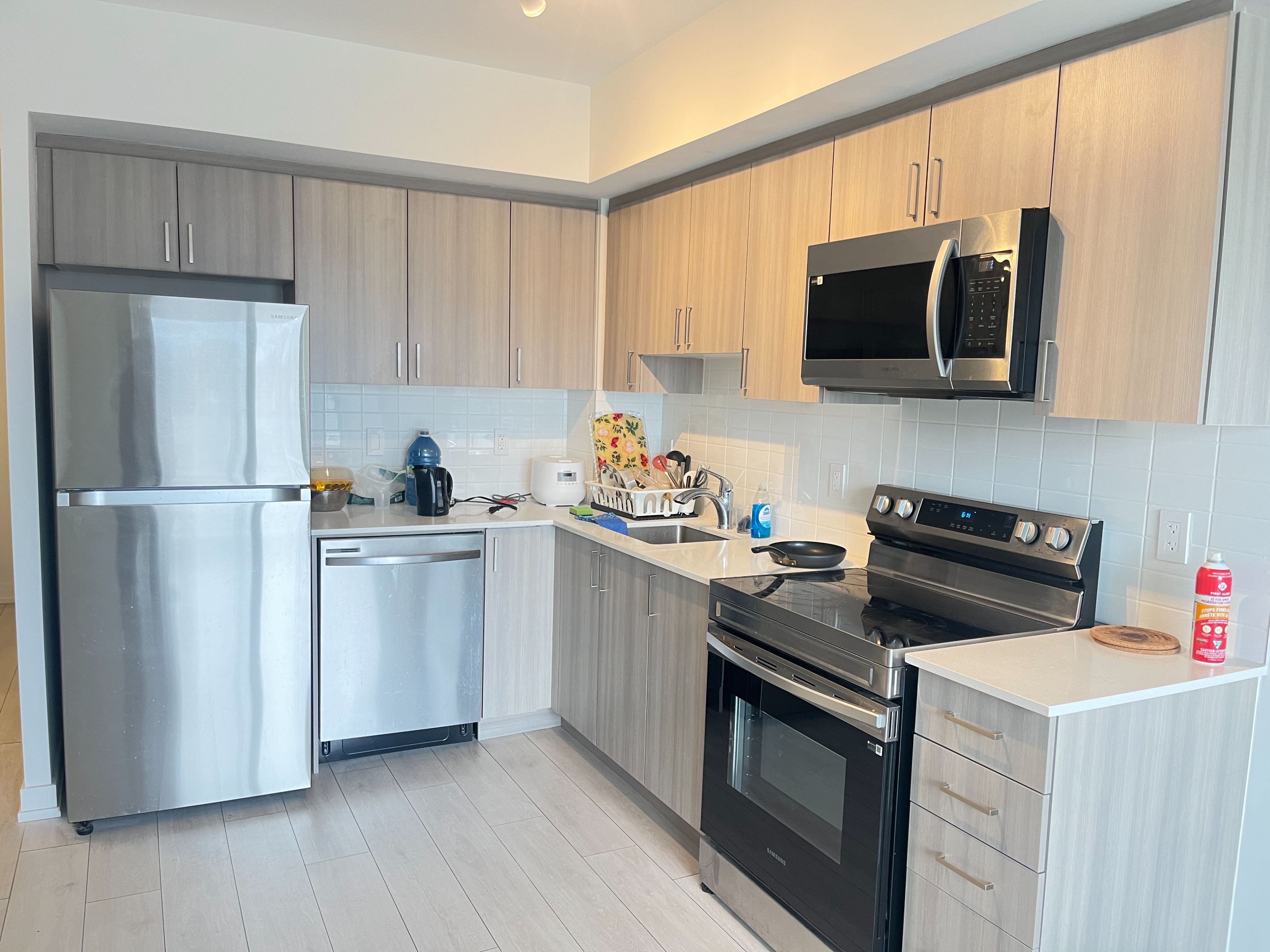 Welcome to the dylan condos, offering sophisticated urban living in the vibrant heart of midtown toronto. This beautifully designed 1-bedroom + den (with door), 2-bathroom suite features high ceilings, floor-to-ceiling windows, and a bright open-concept layout filled with natural light. The contemporary kitchen boasts sleek cabinetry, stainless steel appliances, and generous counter space-perfect for both everyday living and entertaining. The spacious primary bedroom provides a serene retreat, while the versatile enclosed den is ideal for a home office or guest space. Additional highlights include in-suite laundry and dedicated bicycle parking. Residents enjoy exceptional building amenities such as a fully equipped fitness centre, stylish party room, visitor parking, and professional on-site management. Ideally located just steps from lawrence west subway station, and minutes to yorkdale shopping centre, allen road, and highway 401, this home offers unmatched connectivity. With shops, dining, parks, and schools nearby, this is city living at its finest-combining comfort, style, and convenience.