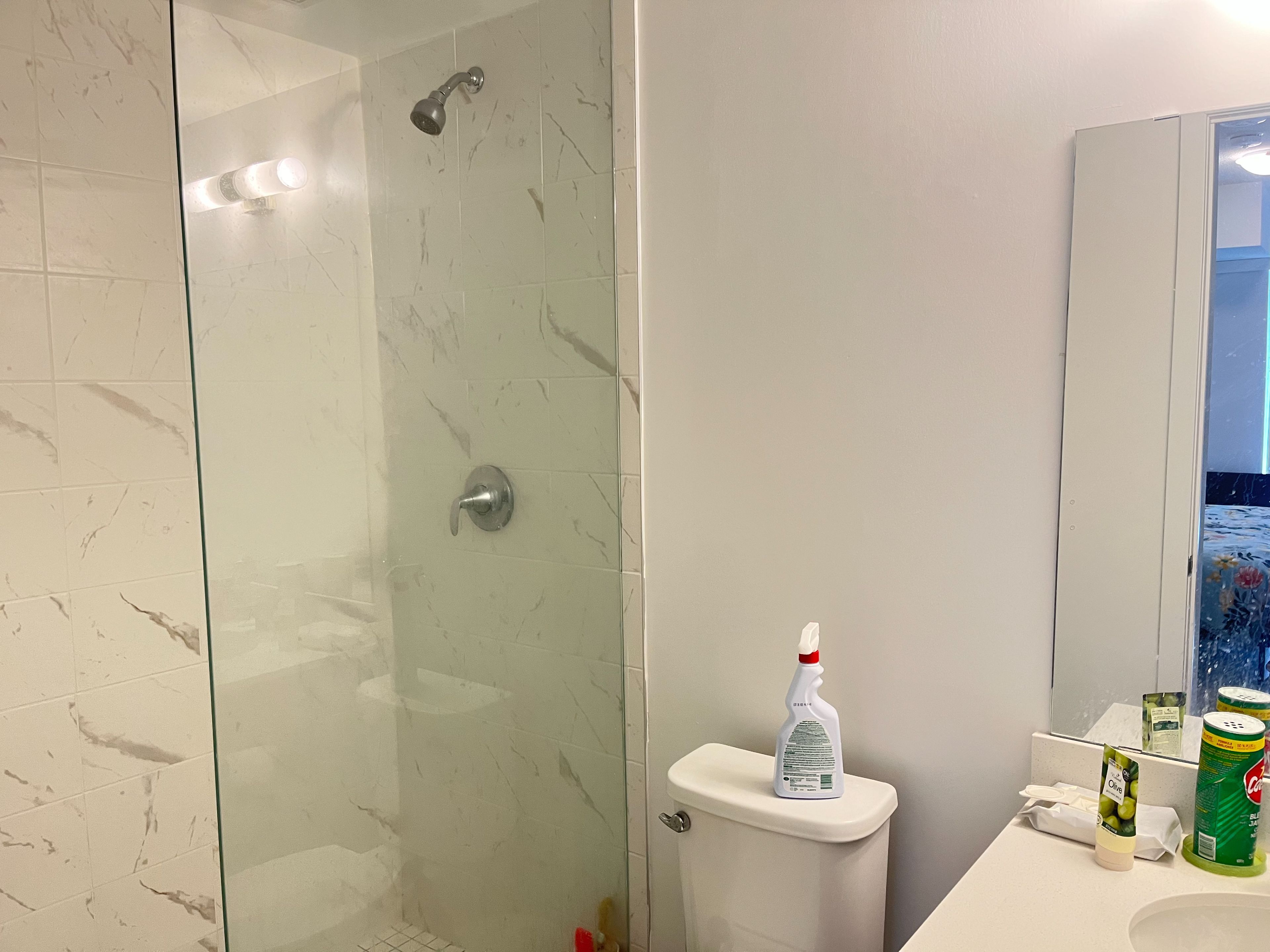 • Bright open-concept layout with high ceilings and floor-to-ceiling windows.