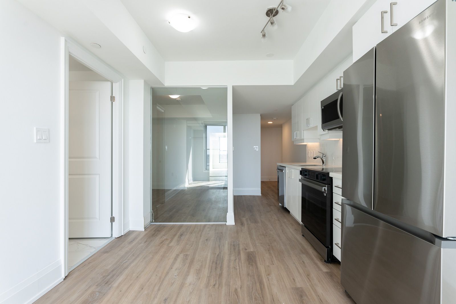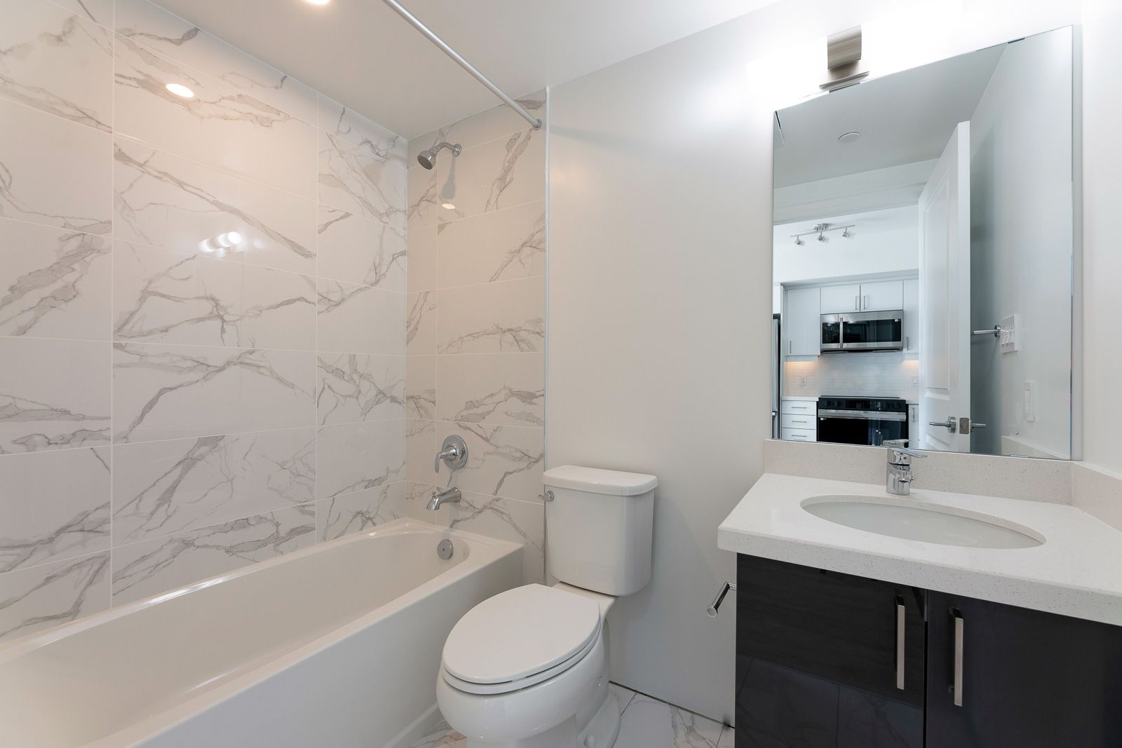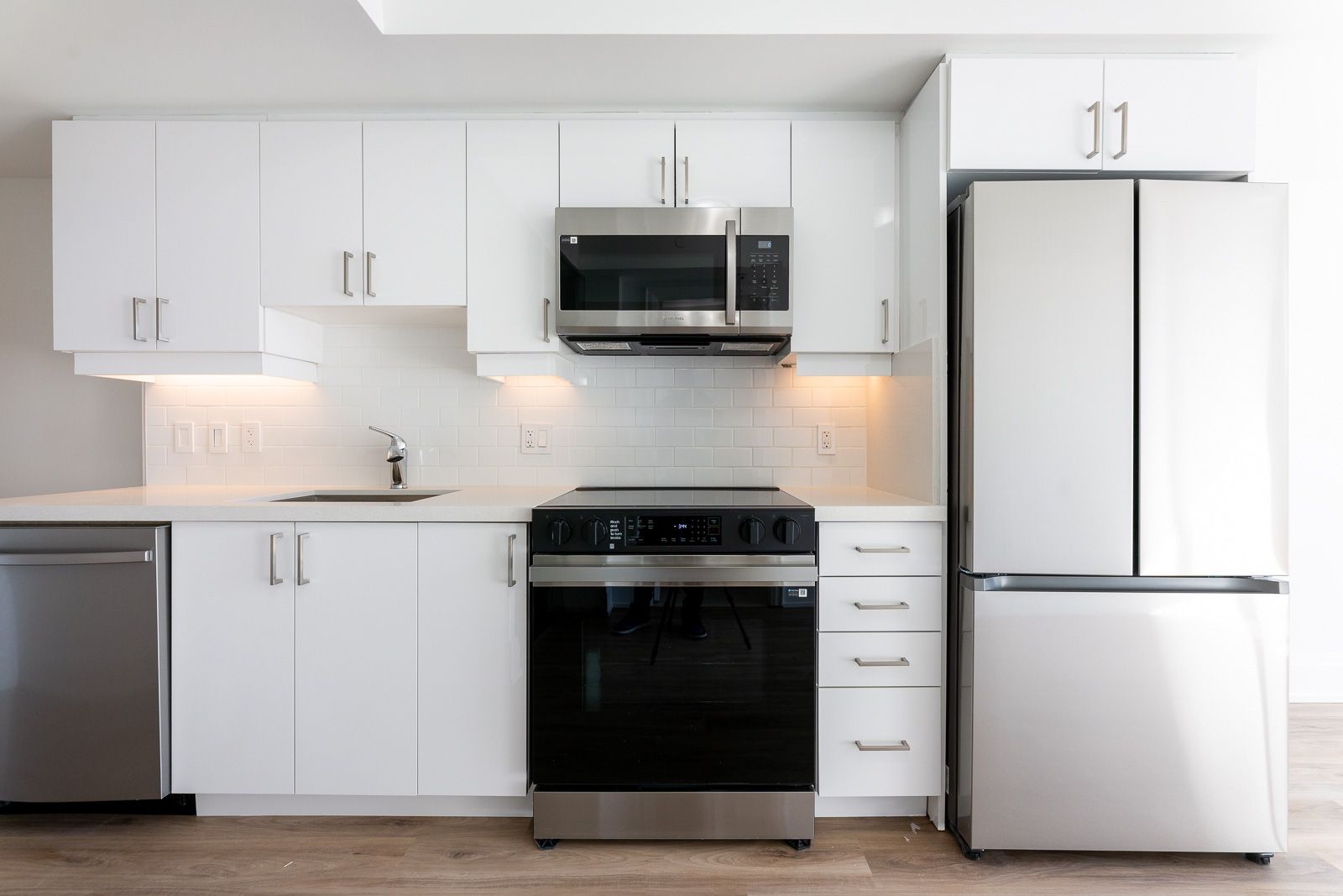 Welcome home to this bright, modern residence featuring an open-concept layout, contemporary finishes, and abundant natural light throughout. The sleek kitchen offers stainless steel appliances, quartz countertops, white cabinetry, and a subway tile backsplash, seamlessly flowing into the airy living space. Enjoy in-suite laundry, a spa-inspired bathroom, and a spacious bedroom with mirrored closet. Step out onto your private balcony to relax and unwind. Move-in ready and ideal for stylish, low-maintenance urban living.
