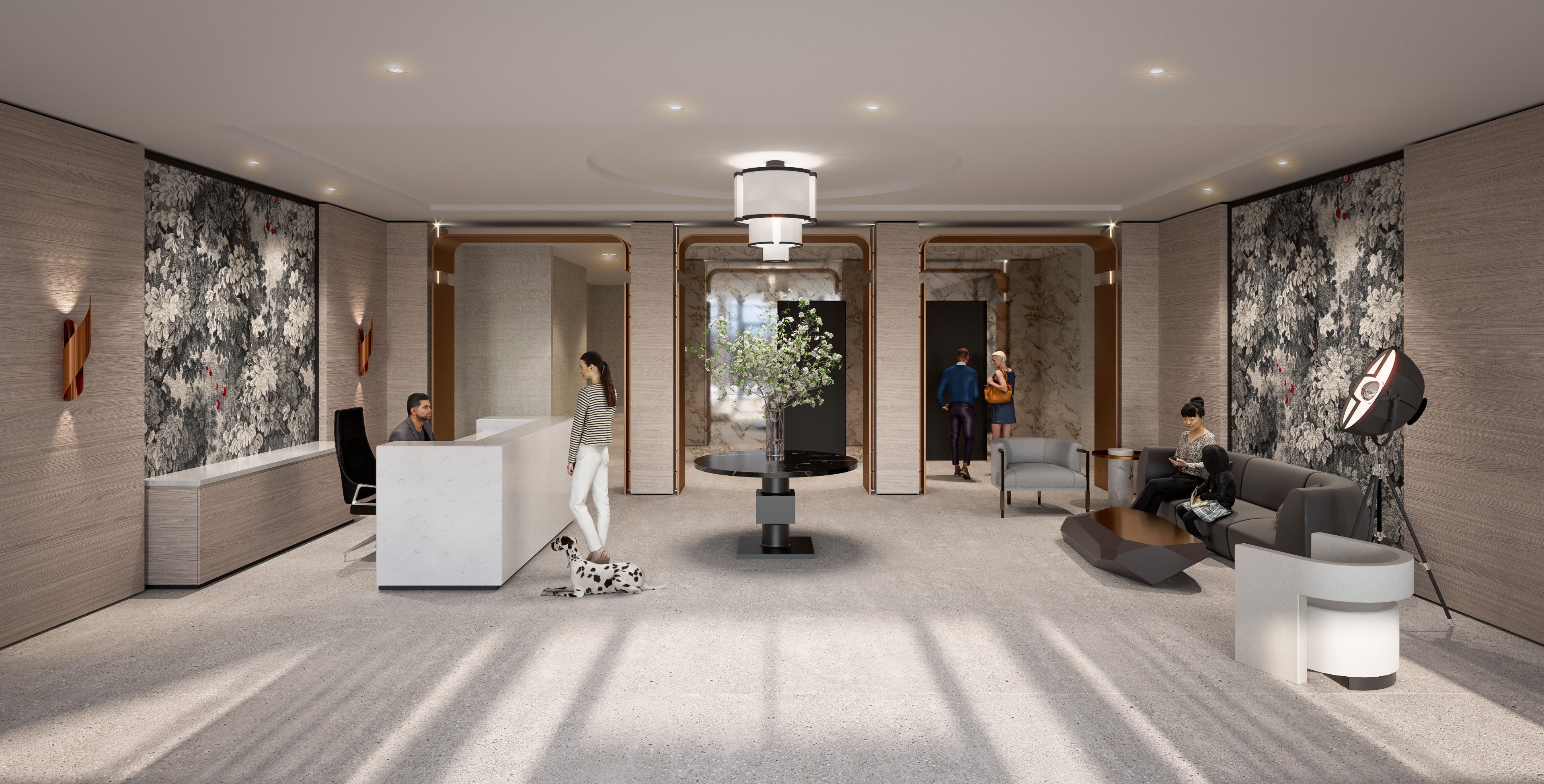 • Sleek kitchen with stainless steel appliances and quartz countertops.