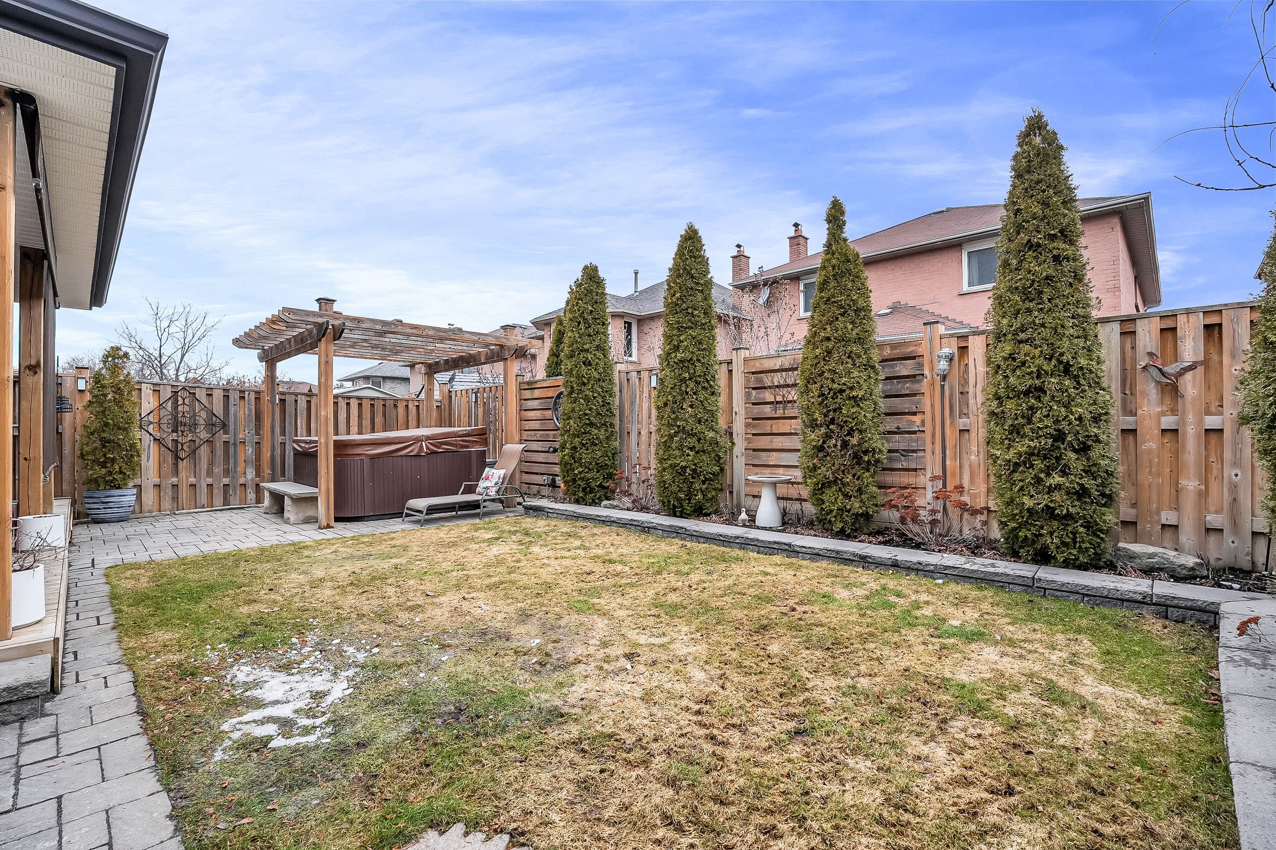 You've never experienced a street quite like this-where neighbours truly know and look out for one another, creating a warm and welcoming sense of community. This meticulously maintained all-brick home offers 4 bedrooms and 4 bathrooms, and has been filled with years of love, laughter, and family memories. Thoughtfully designed for both everyday living and entertaining, the layout is flexible to suit your lifestyle. The main floor offers versatile spaces-currently configured with a home office and a large dining/gathering area-while the kitchen easily accommodates additional seating with an eat-in option. Step outside and discover a backyard that truly feels like an extension of the home. Complete with a natural gas fire pit, hot tub, pergola, covered deck, and perennial gardens, this outdoor space is both low maintenance and ideal for relaxing or hosting. It's your very own outdoor family room. Upstairs, the spacious primary bedroom features additional wardrobe storage, while the fully finished basement provides the perfect setting for movie nights, game nights, and holiday gatherings. Ample storage throughout the home ensures there's space for everything-from seasonal décor to pantry essentials. The widened driveway adds convenience, and the location is unbeatable. With quick access to highway 401, transit, shopping, and everyday amenities, everything you need is within easy reach. Enjoy walks around the neighbourhood with a second cup coffee or booster juice. Walking distance to dunbarton high school, george ashe library, freshco, shopper's drug mart and more nearby shops-making daily life effortless and connected. This is more than a house-it's a place to grow, gather, and create your next chapter. Closing our chapter, and opening yours. See attached feature sheet for updates.