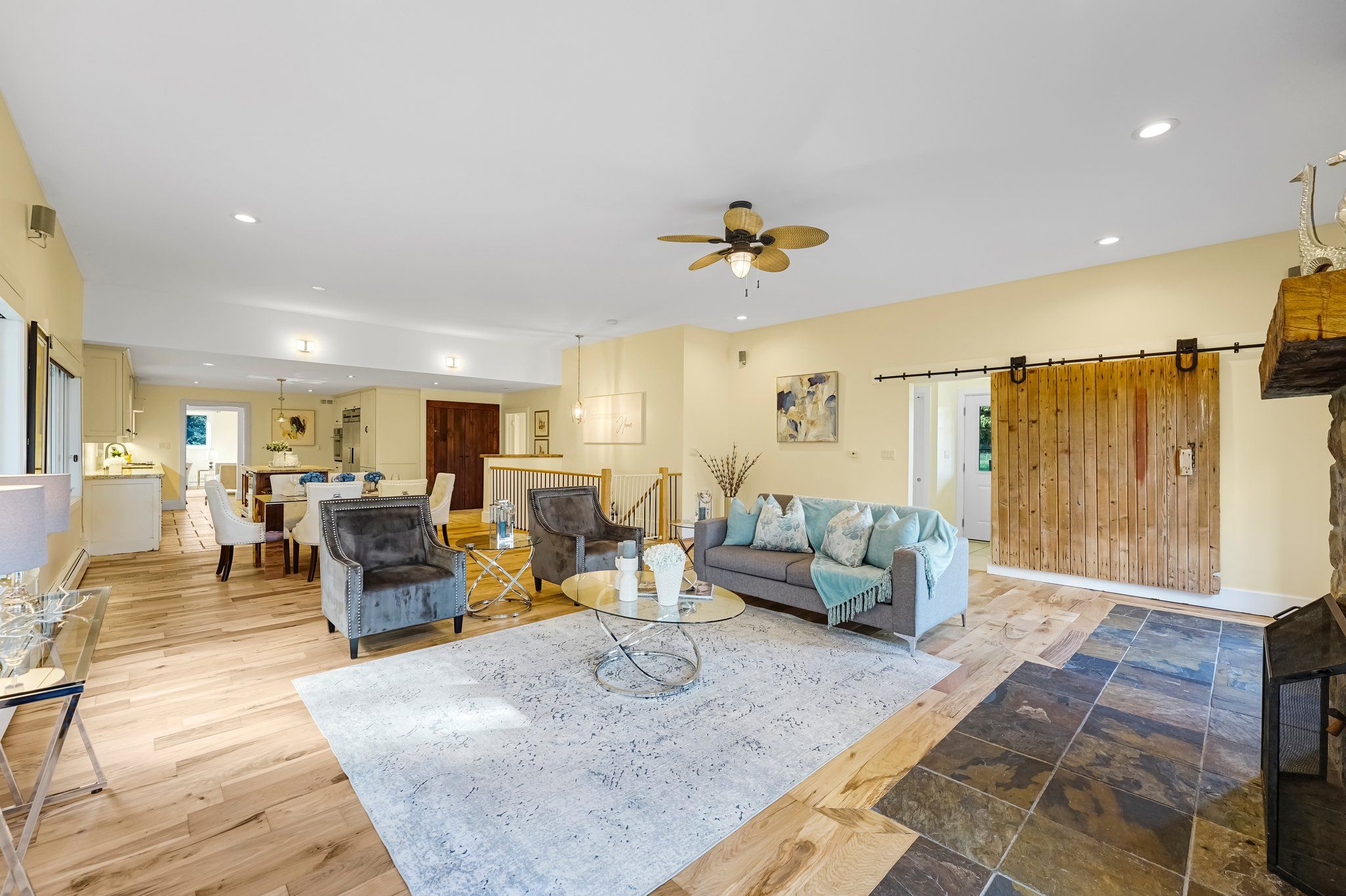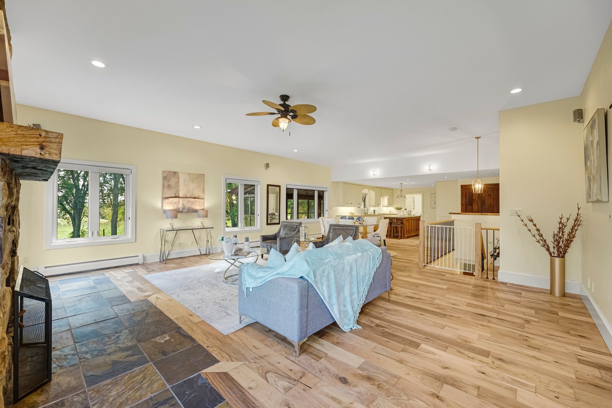 • Bright home featuring an enclosed porch and open concept living area.