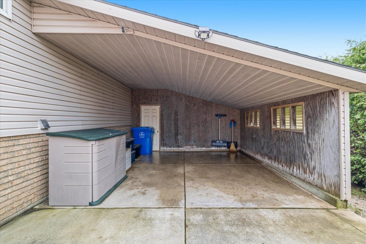 • Ample parking space with a concrete driveway and carport.