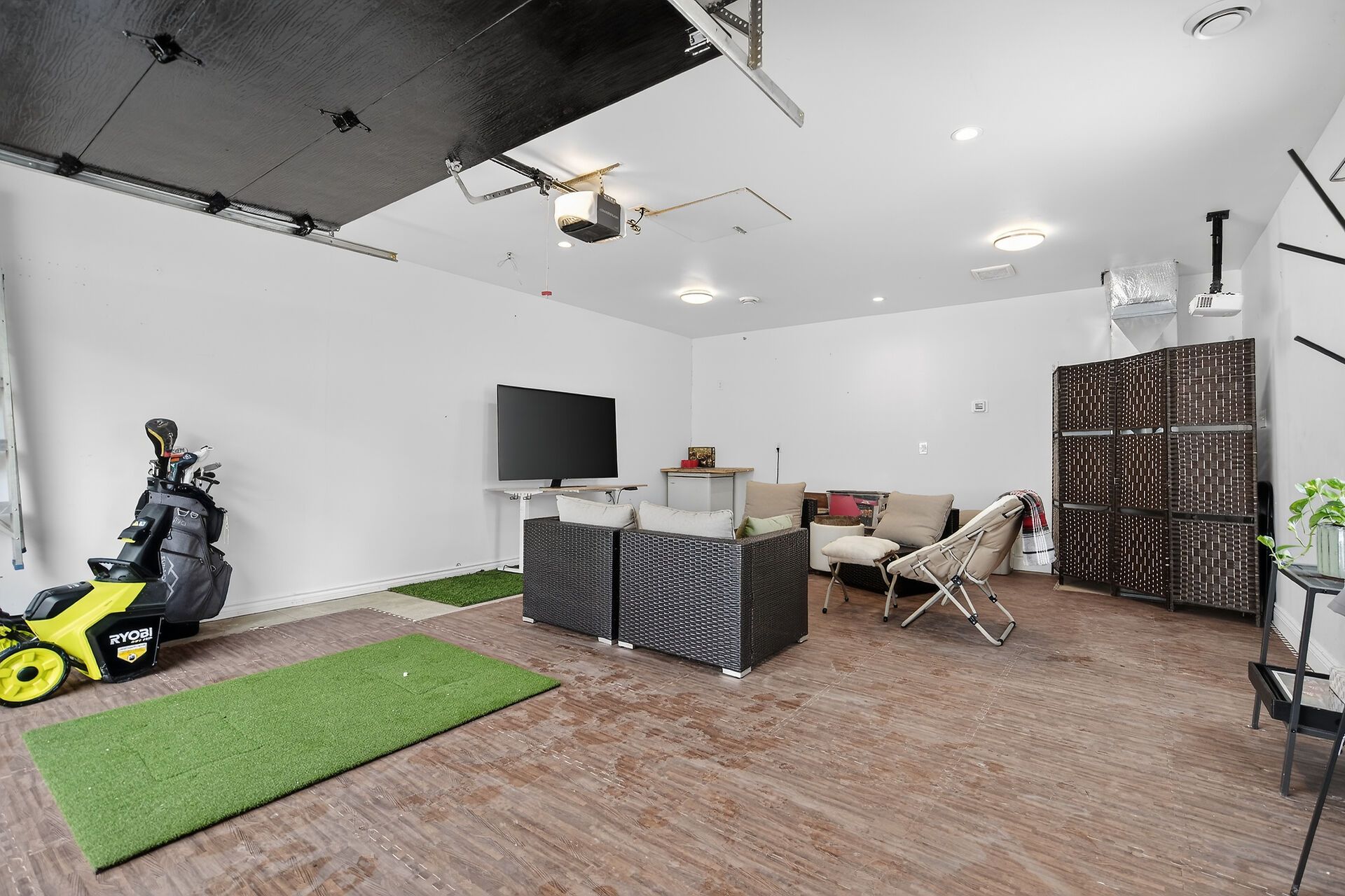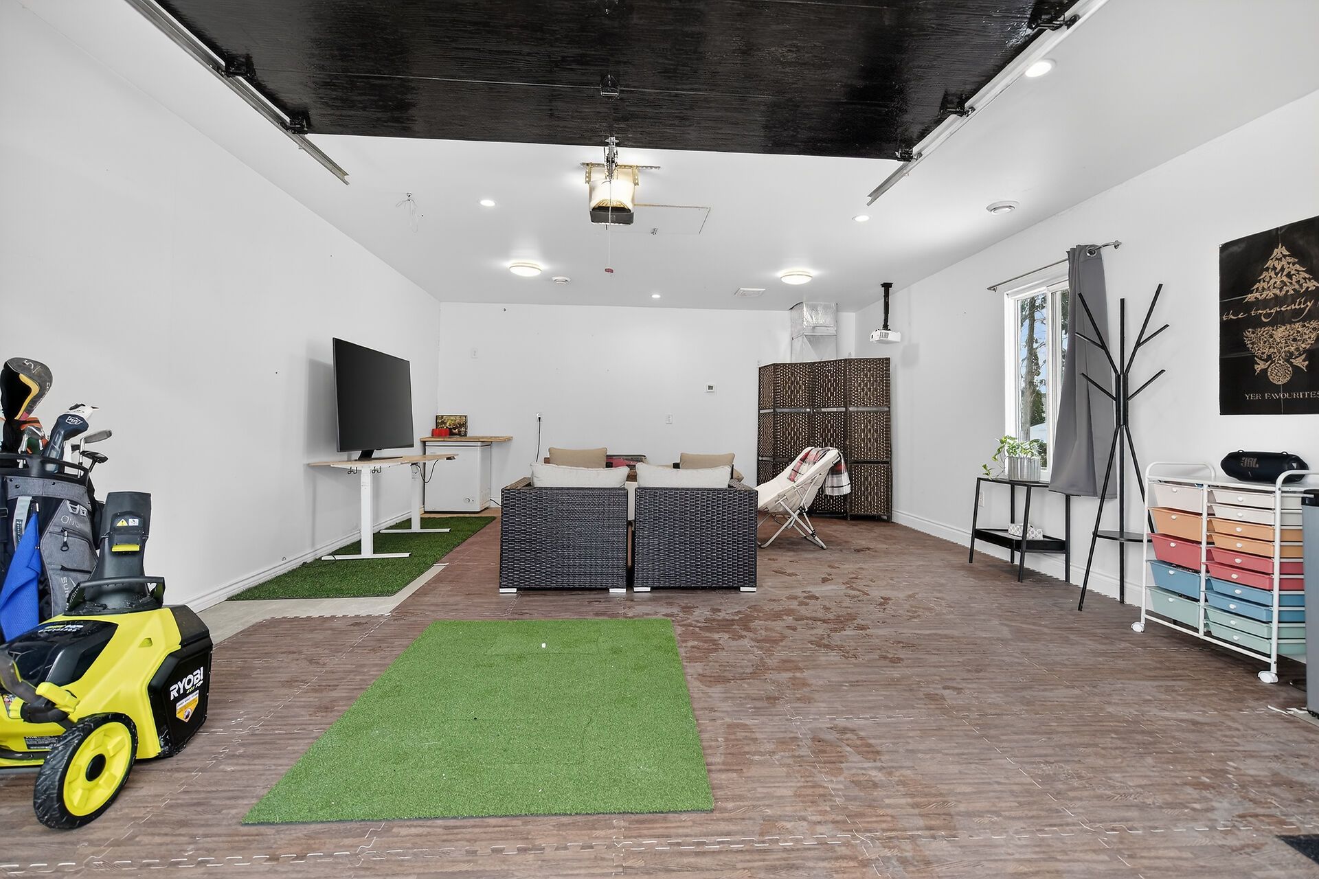 • Oversized heated garage offers versatile space for storage or hobbies.