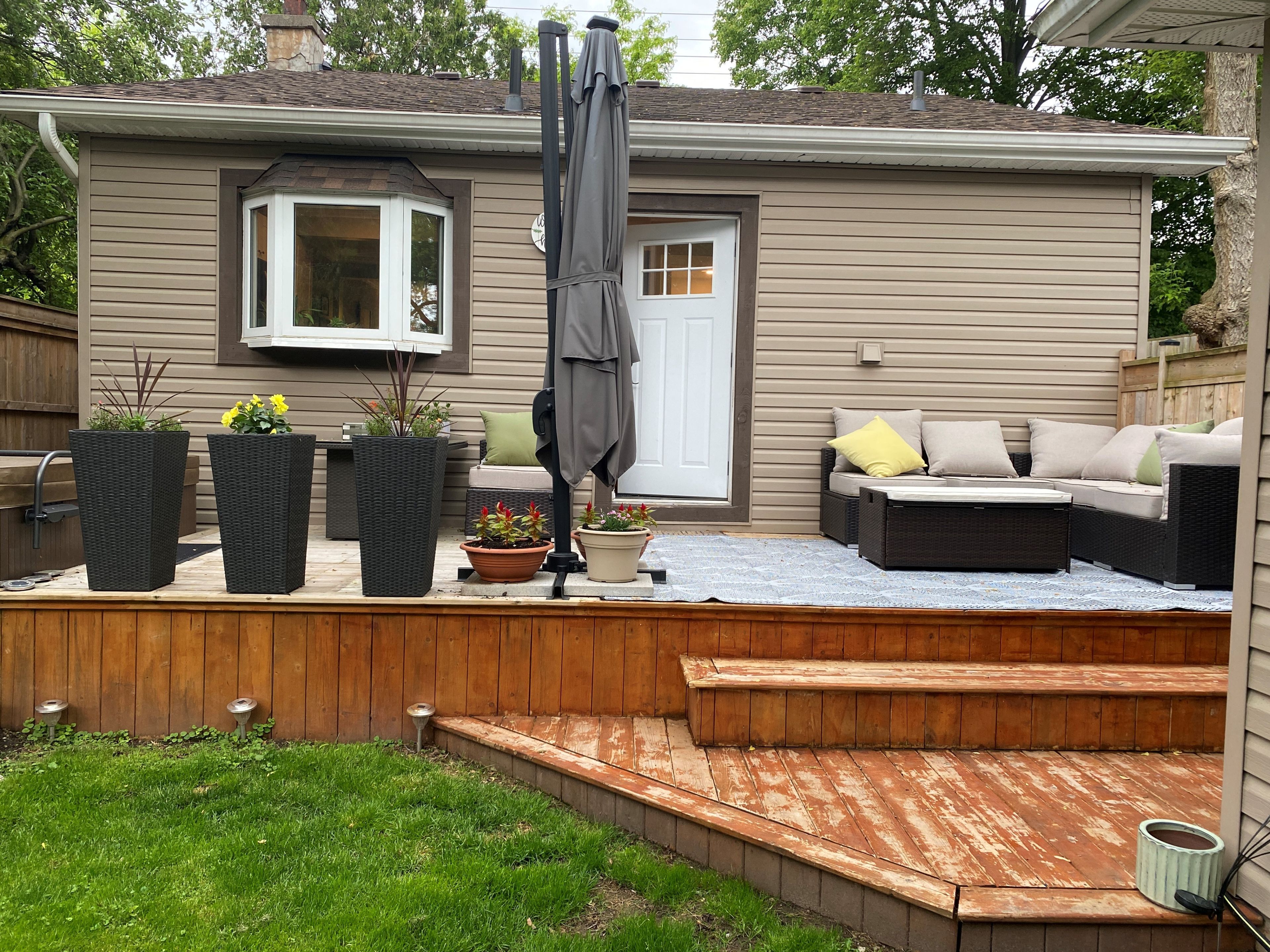 • Fully fenced backyard with a deck and hot tub for relaxation.