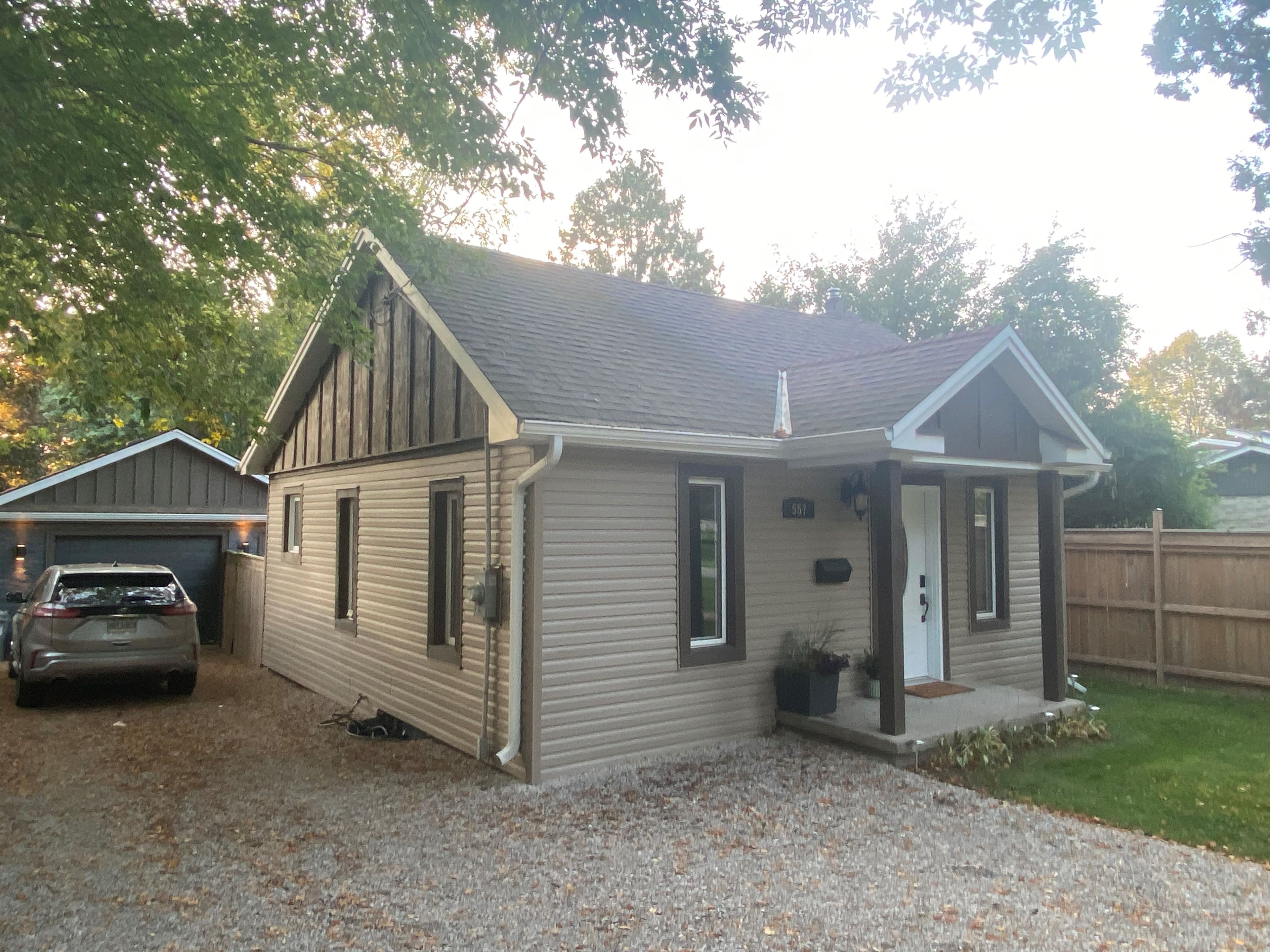 Welcome to 557 boler road - a beautifully fully renovated open-concept bungalow that perfectly blends style, comfort, and practicality. Whether you're a first-time home buyer eager to step into ownership, a retiree looking to downsize without compromise, or someone searching for a low-maintenance condo alternative, this home offers the ideal solution. With its cozy charm and thoughtful updates, it truly feels like a cottage in the city. Inside, you'll find two inviting bedrooms, a stunning 4-piece bathroom, and a bright living room with eat-in dining space designed for both everyday living and easy entertaining. You'll appreciate the carefully selected details throughout, including a wood-accented electric fireplace, modern pot lights, and elegant crown moldings that elevate the home's character. Main floor laundry adds an extra layer of convenience, while the basement provides excellent storage for seasonal items and more. Whether you're a car enthusiast, hobbyist, or work-from-home professional, the oversized heated detached garage offers incredible versatility - keep your vehicle sheltered from the elements or create the ultimate flex space tailored to your lifestyle. Imagine your own man den or she den, a private office, or even a golf simulator for year-round enjoyment. Step outside to a fully fenced backyard framed by mature trees, offering exceptional shade and privacy. The spacious deck and inviting hot tub create the perfect backdrop for relaxing after a long day, entertaining guests, or enjoying bbq season all summer long. Located in the heart of byron - one of london's most sought-after neighbourhoods - you'll enjoy close proximity to beautiful springbank park, boler mountain, fantastic restaurants, great schools, and convenient access to the 401 and 402. This is more than a home; it's a lifestyle opportunity you don't want to miss.