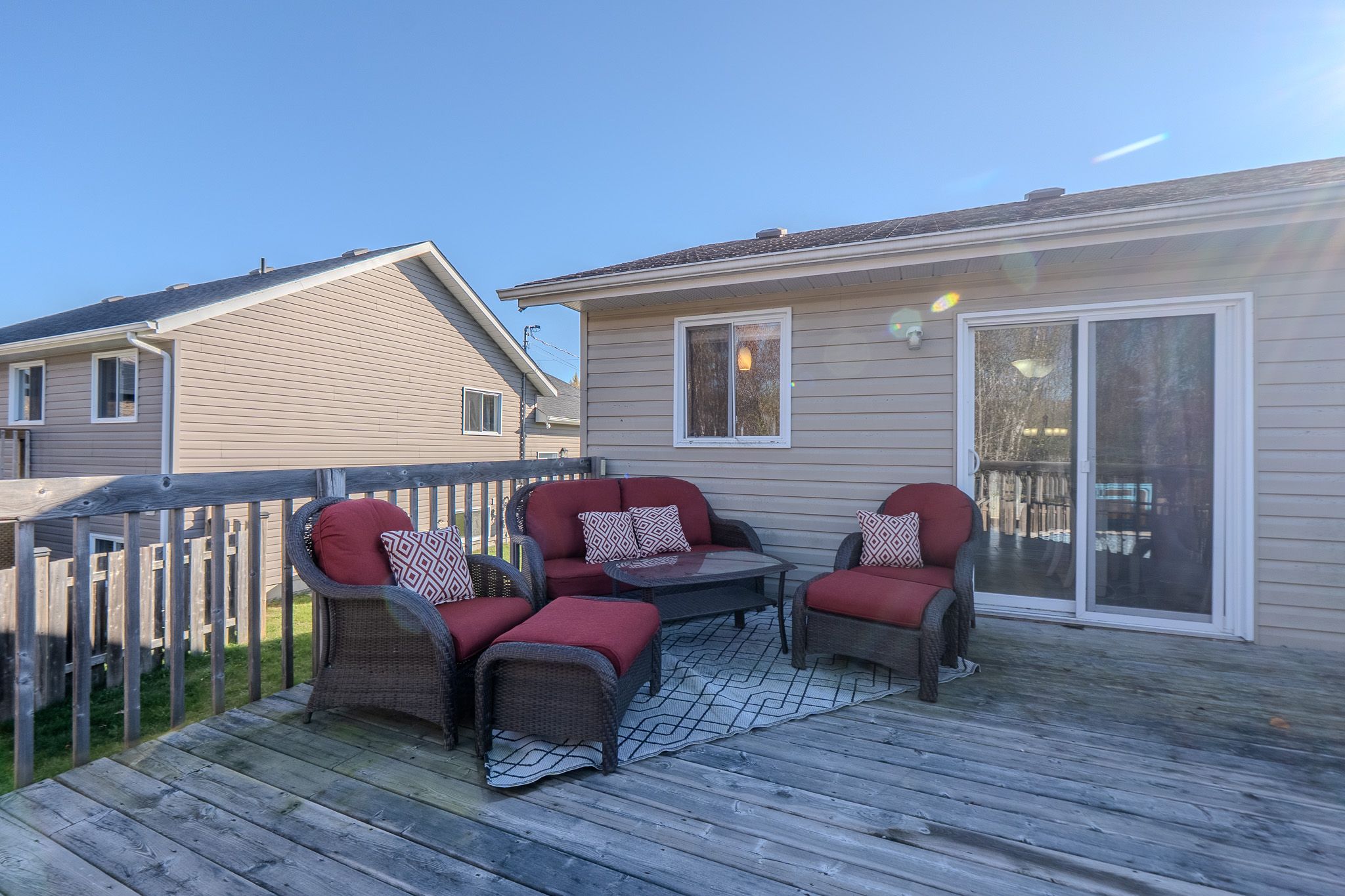 • Back deck overlooks above-ground pool, ideal for summer fun.