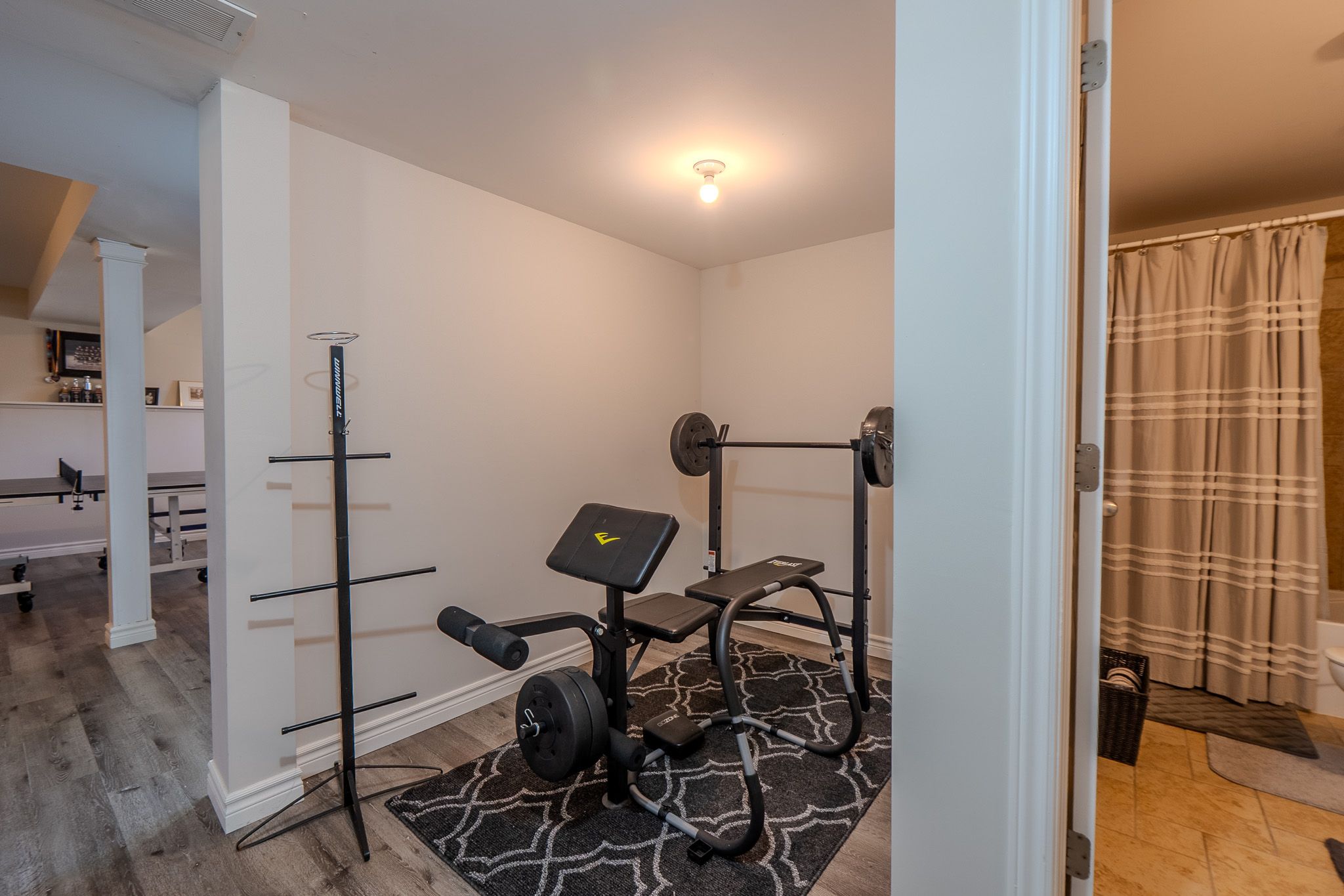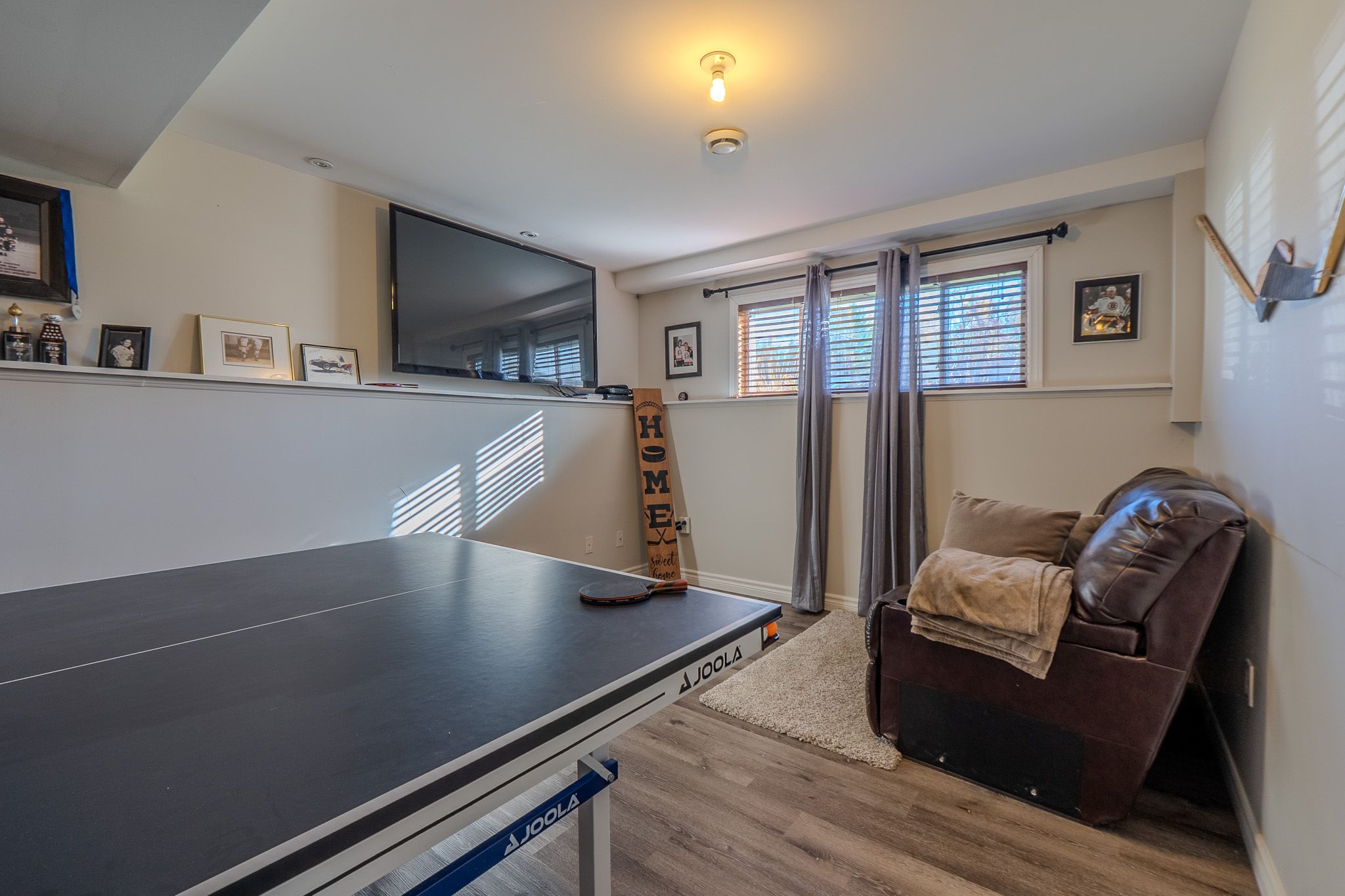 • Finished basement with rec room for movies and games.