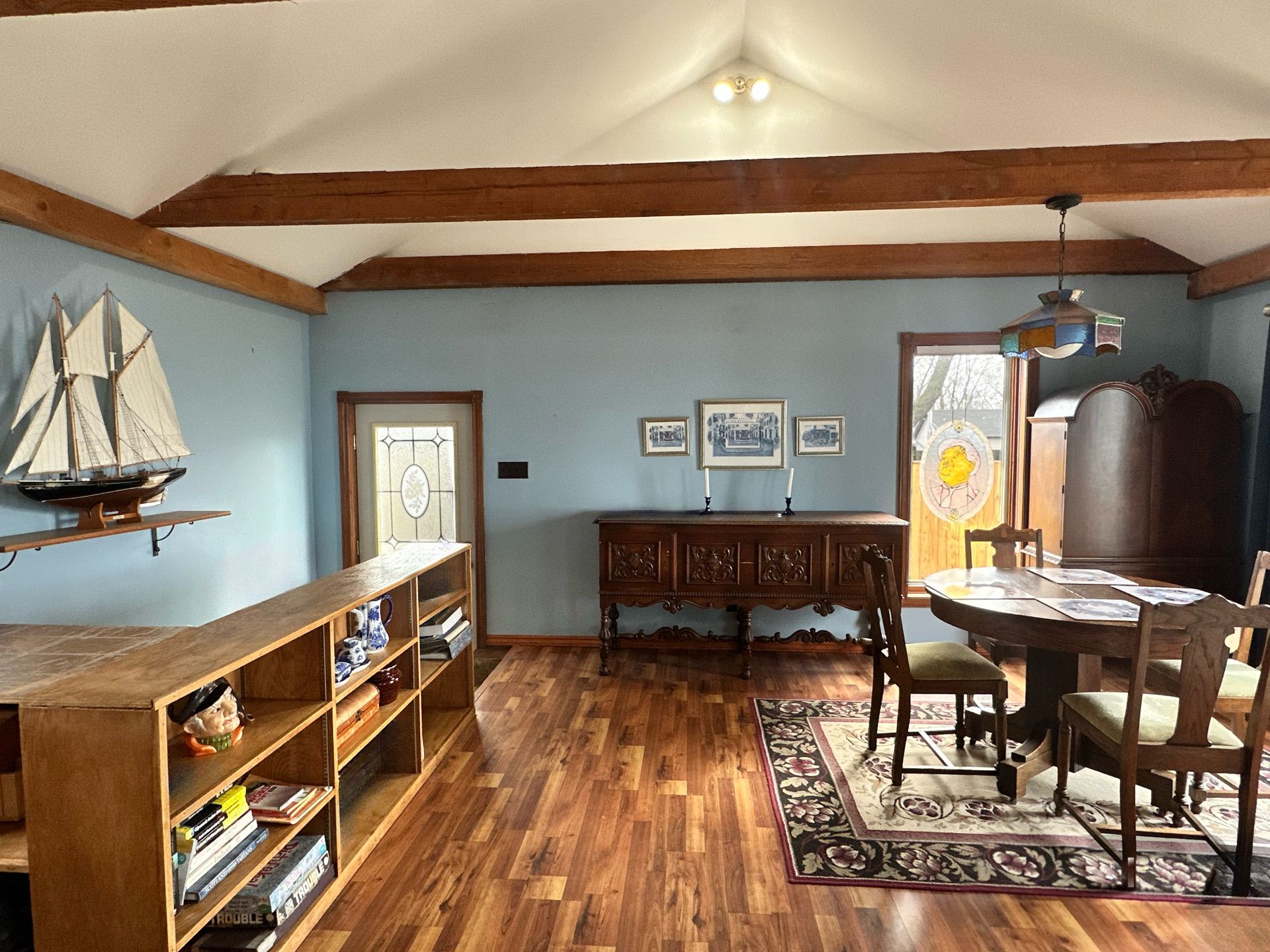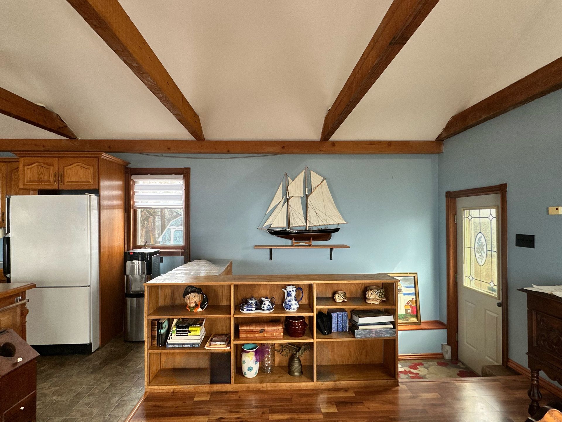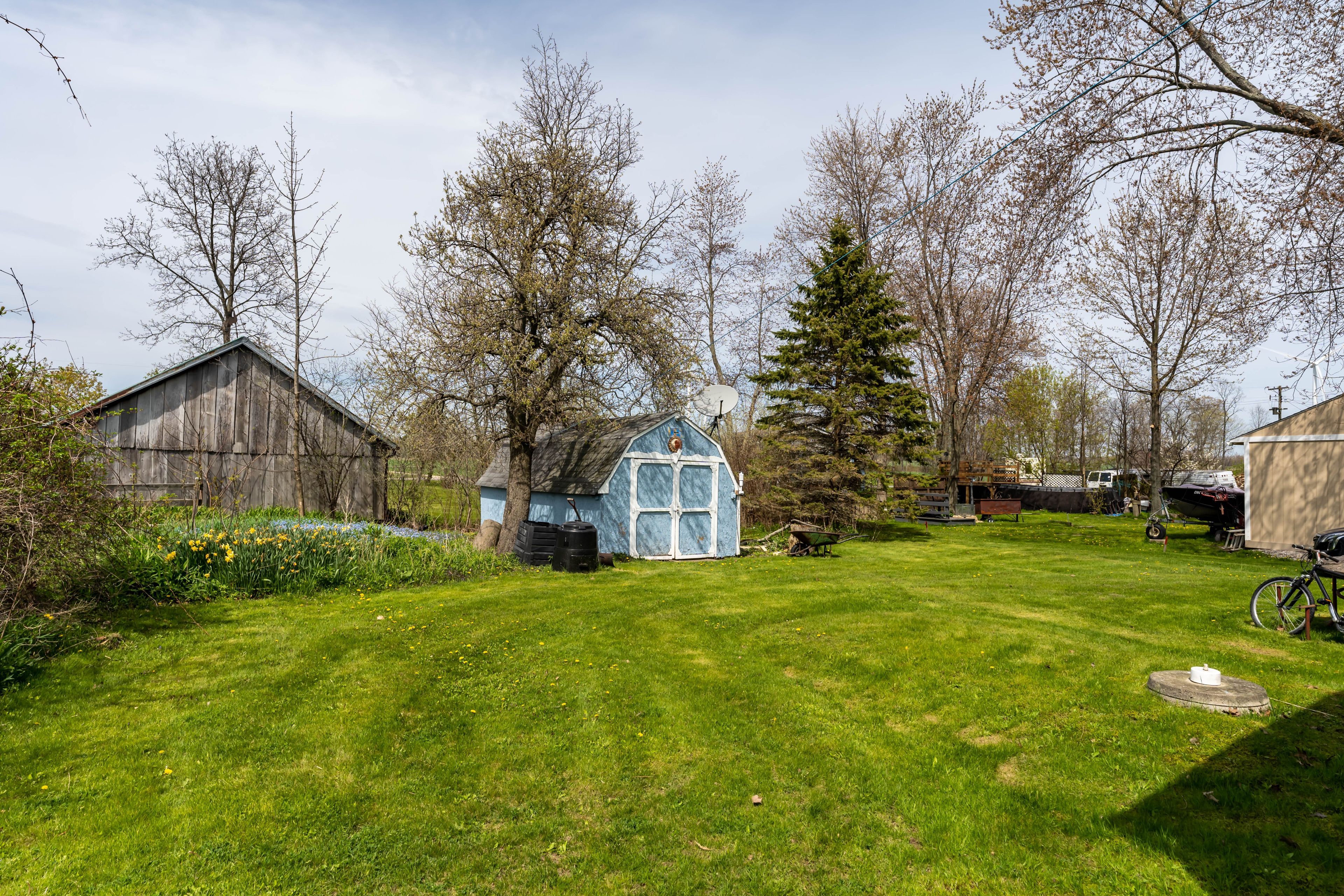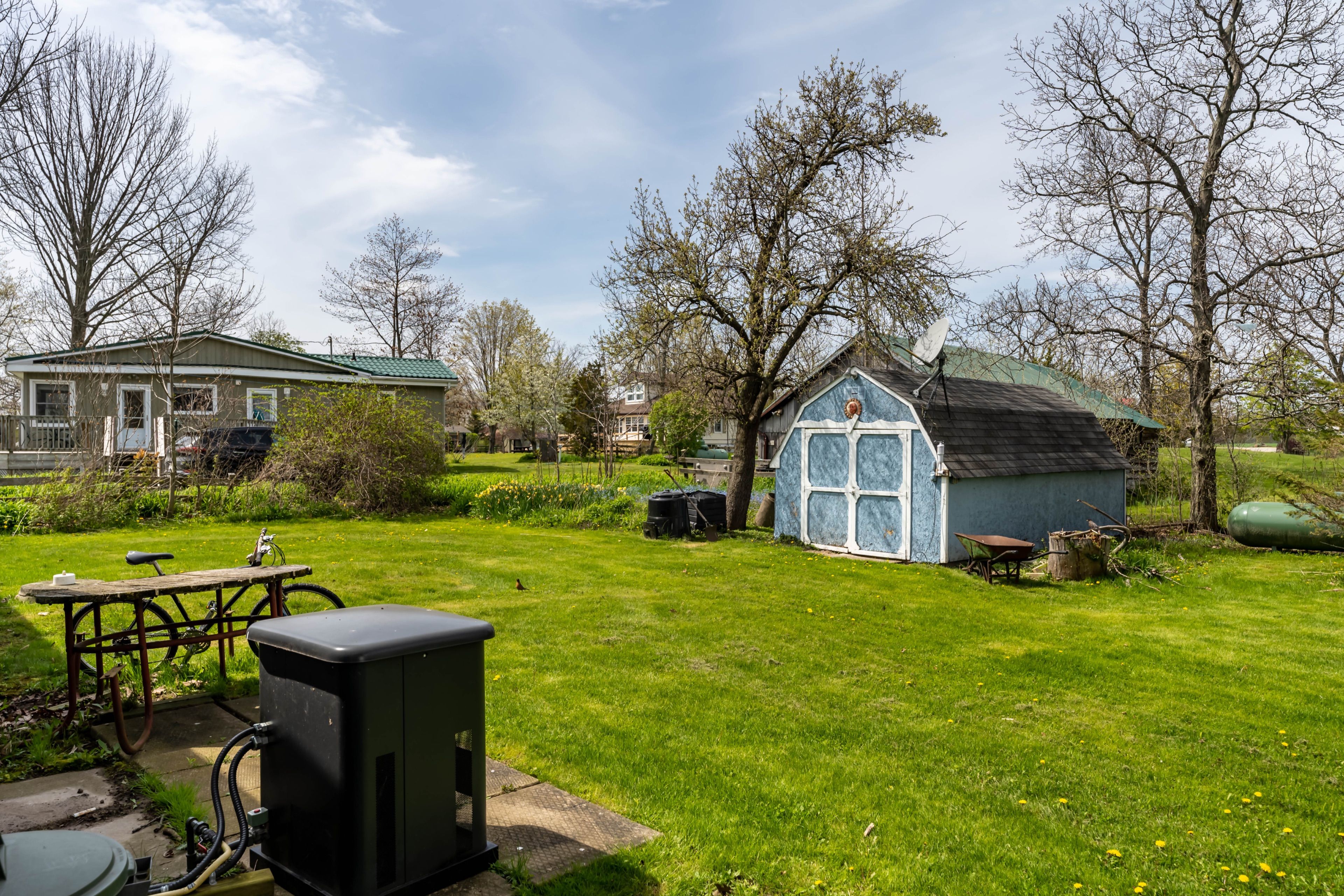 Waterfront retreat on a quiet road owning the north and south (waterside) of the road. This year-round 2-bedroom home offers the perfect blend of relaxation and recreation, featuring just over 70 feet of lake erie water frontage and 2022 wilkinson built break wall, plus a natural sand and pebble beach for endless summer enjoyment. Step inside to a bright, open-concept living/dining/kitchen space highlighted by vaulted, beamed ceilings and a wall of windows showcasing lake views and awesome sunsets. The inviting layout is ideal for both everyday living and entertaining. The home includes a basement (1992) providing ample storage space and development potential, while the expansive deck is perfect for morning coffee or hosting family and friends against a beautiful waterfront backdrop. Plenty of driveway parking accommodates all your vehicles and recreational toys. Additional updates include roof shingles and the added peace of mind of a backup generator. A rare opportunity to own a lakeside escape-perfect as a year-round residence or weekend getaway!