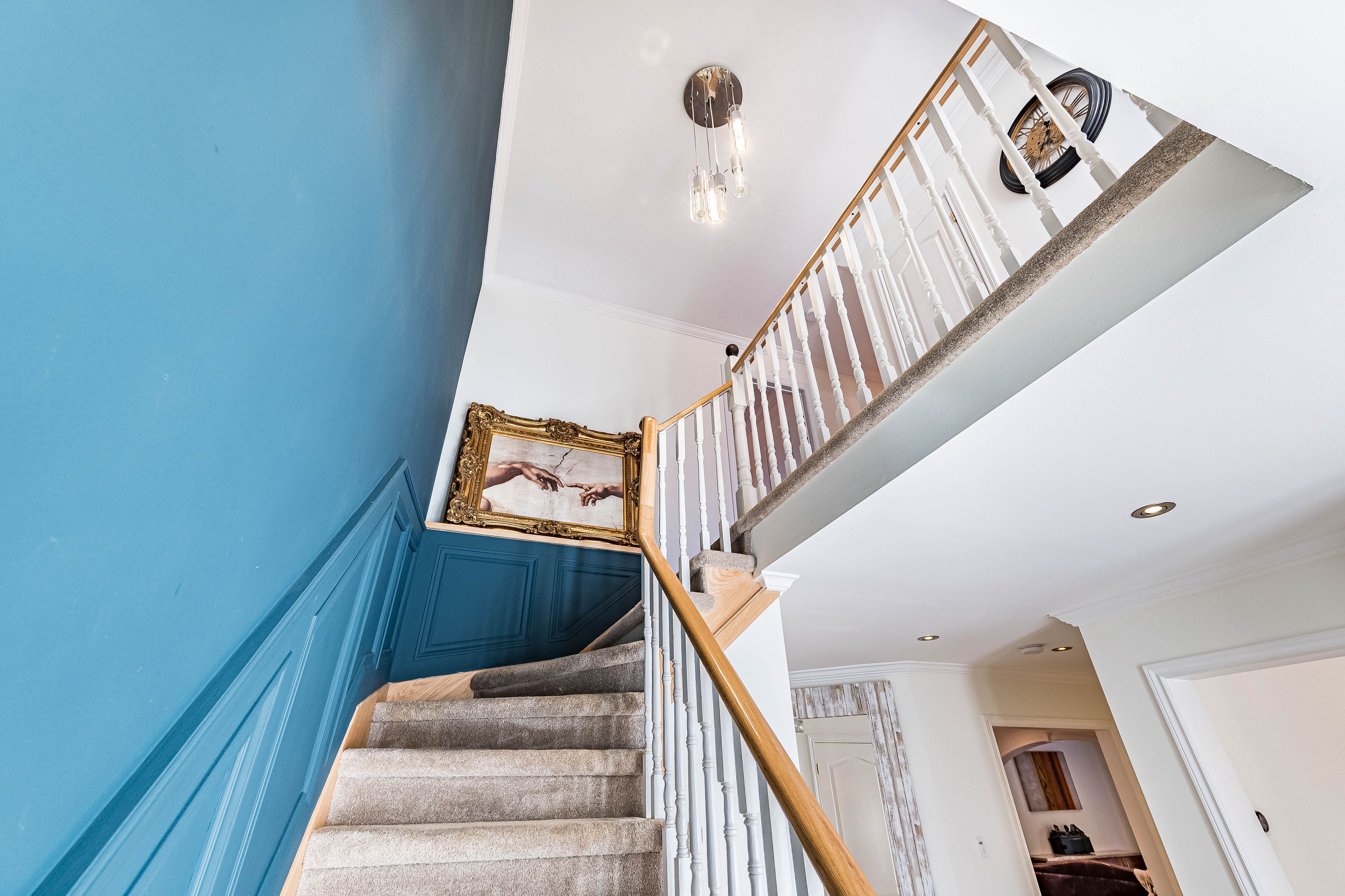 A stunning corner-lot luxury home nestled in the heart of mississauga! This fully furnished executive home offers the perfect blend of elegance and convenience, right in the centre of everything you need. A prime location close to heartland town centre, square one, schools, shops, parks, and highways, offering the best of city living in a quiet and safe neighbourhood. From the outside, the home makes an immediate impression with its classic brick exterior, mature trees, and beautifully landscaped grounds that wrap around the corner lot. The backyard features a spacious patio, outdoor seating area, and a sparkling inground swimming pool. Step into the home through a bright and welcoming grand foyer that sets the tone for the entire space, where tasteful furniture, elegant colours, and beautiful decor create an inviting atmosphere and the perfect starting point for the rest of the home. Throughout the home, you'll notice smooth ceilings and pot lights that enhance its modern and luxurious feel. On the main floor, you'll find a formal living room ideal for guests, a separate dining room for special gatherings, and a spacious family room designed for everyday comfort. The gourmet chef's kitchen is fully equipped and open-concept, featuring high-end stainless steel appliances, granite countertops, and a cozy breakfast area that flows seamlessly to the backyard patio oasis. A powder room and convenient laundry room with direct access from the garage complete this level. As you make your way up the elegant curved staircase, the smooth transition leads you to four spacious bedrooms, including a generously sized primary suite featuring a walk-in closet and a luxurious 5-piece ensuite. Three additional well-appointed bedrooms and a full washroom provide comfort and functionality for the whole family. This exceptional fully furnished and equipped home is move-in ready and waiting for the perfect tenants to enjoy its comfort, style, and prime mississauga location!