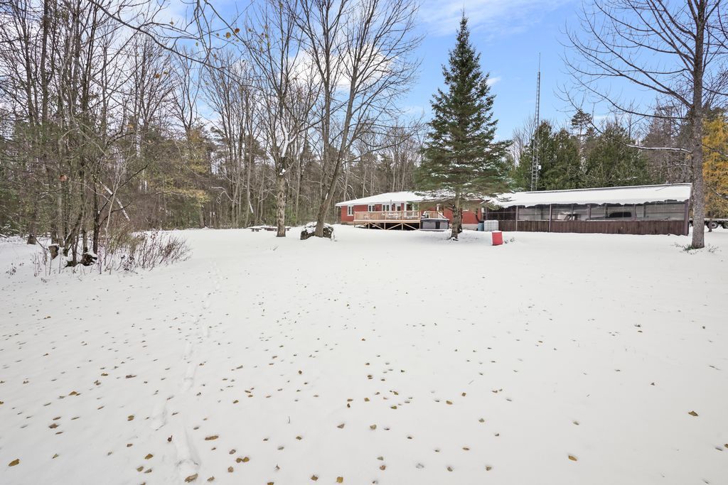 Welcome to this beautiful 9. 6-acre property located in a peaceful natural setting, just minutes from the inlets leading to georgian bay. A true haven for outdoor enthusiasts, the extensive on-site trail system is perfect for four-wheeling, hiking, snowmobiling, skiing, or snowshoeing-offering year-round enjoyment right from your own backyard. The charming bungalow offers over 1600 square feet of comfortable main-floor living, beginning with a welcoming front foyer that opens into a bright living room and an adjoining dining area. The kitchen provides plenty of functional space and easy flow for everyday living. The primary bedroom includes its own 4-piece ensuite, and an additional bedroom offers flexibility for family or guests. A spacious extra room can serve as a family room, home office, or an additional bedroom depending on your needs. Step outside to a large back deck overlooking the expansive yard, complete with a hot tub for relaxing after days spent exploring the trails. The property also features a one-car garage and a generous attached carport, providing ample covered parking and storage. This property combines privacy, recreation, and comfortable living-all in a sought-after location close to georgian bay. Don't miss your chance to enjoy nature at your doorstep - book your private showing today!