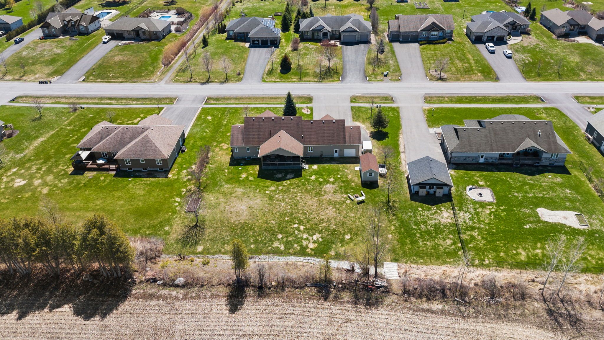 Welcome to this exceptional custom ian drew home, perfectly positioned on an exclusive cul-de-sac with no rear neighbours, offering privacy and refined living. Impeccably maintained, the property features elegant front landscaping with a stone walkway, raised garden beds, and an oversized paved driveway with additional side parking. Designed for elevated outdoor living, the impressive 30' x 16' covered rear deck showcases a vaulted cedar ceiling and low-maintenance composite decking, an ideal space for entertaining or relaxing in total privacy. The backyard also includes a premium storage/work shed and a rainbird 9-zone irrigation system. Inside, 9-foot ceilings enhance the open-concept living, dining, and kitchen areas, complemented by hardwood floors, granite countertops, and a cozy gas fireplace anchoring the space. The primary suite offers a spacious walk-in closet and a luxurious ensuite with a walk-in shower and soaker tub. Two additional bedrooms, one featuring a vaulted ceiling, are serviced by a full bath, while the main level is completed by a laundry/mudroom and powder room. A versatile loft provides the perfect space for a media room, home office, or additional lounge area. The lower level provides a wide-open canvas, whether for recreation, fitness, or future finishing. The oversized 3-car garage is insulated and drywalled, featuring a full rear garage door for backyard access and hot/cold water taps. Extensive mechanical upgrades include a kinetico water system, updated hot water tank and pressure tank, and a fully serviced system with recent water testing available. A generlink 240v connection offers whole-home generator capability. A rare offering combining quality craftsmanship, thoughtful design, and upscale features, tailored for the most discerning buyer. Walking distance to foodland, no go coffee, red dot cafe and the osgoode link pathway, a trail over 20 km long, connecting osgoode to leitrim road and the new lrt station.