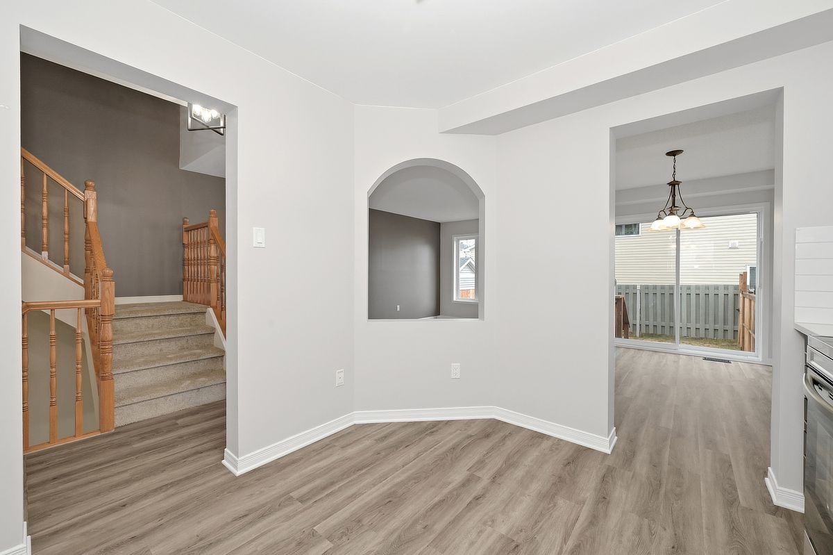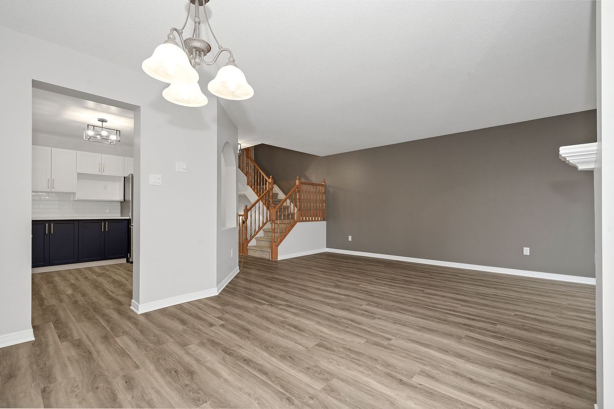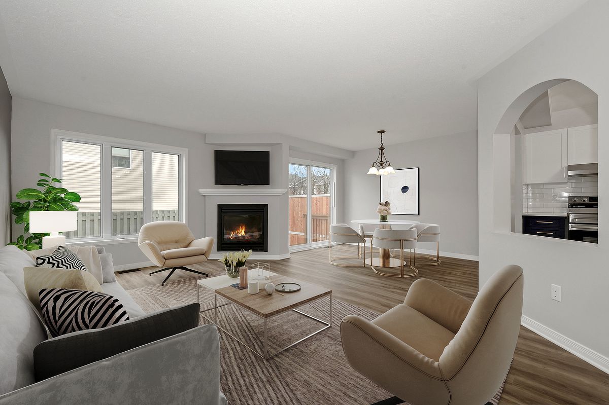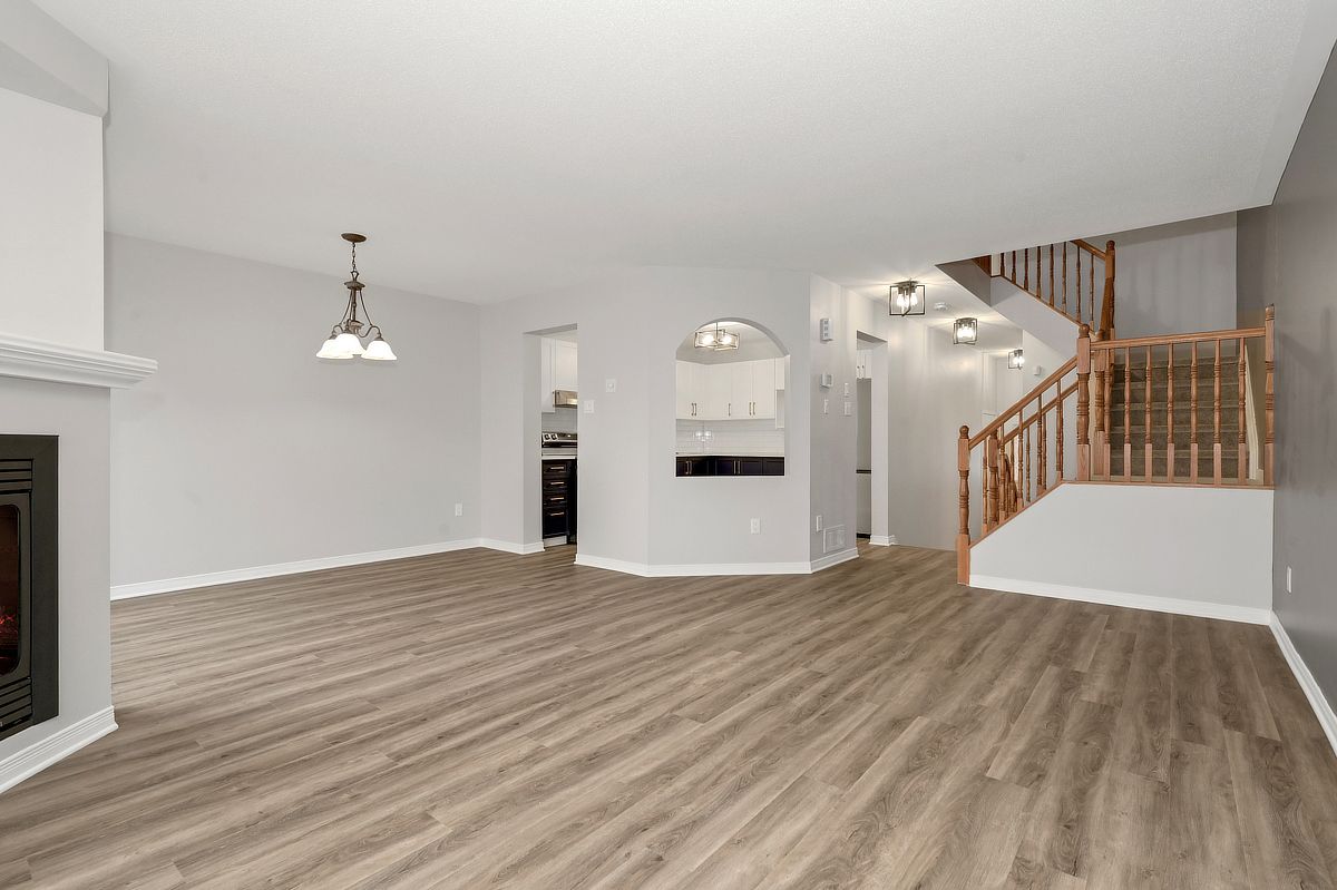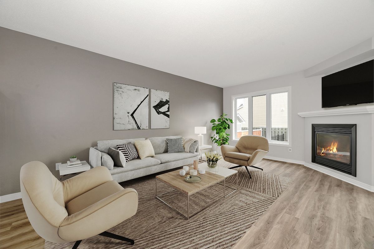 Sunlight spills through every level of this impeccably maintained minto empire model, where thoughtful updates and a fresh, modern finish create a home that feels bright, welcoming, and truly move in ready. The main floor offers an open, inviting layout centered around a beautifully renovated kitchen (2026) featuring quartz countertops, abundant counter space, and excellent storage. It's a space designed for both everyday ease and effortless entertaining. The adjacent living area is anchored by a cozy gas fireplace, perfect for relaxing evenings at home. Extensively updated throughout, the entire home has been freshly painted (2026) and features new vinyl plank flooring (2026) on the main level along with new carpet throughout (2026) and roof (2021). A stylishly renovated powder room (2026) completes the main level, tying everything together with a clean, modern feel. Upstairs, all bedrooms are generously sized, offering comfort and flexibility. The primary suite includes a walk in closet and a luxury ensuite with a roman tub and separate shower, a perfect retreat at the end of the day. The lower level is filled with natural light thanks to an oversized picture window, creating a bright and versatile space for a family room, home office, or recreation area. Ideally situated with quick access to portobello, innes, and trim, this location puts schools, shopping, dining, and transit just minutes away. Aquaview park and its scenic trails offer ponds, greenspace, and year-round recreation, creating a peaceful, well-connected suburban setting. Some photos have been virtually staged.