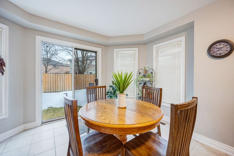 • Open concept kitchen with stainless steel appliances and breakfast area.