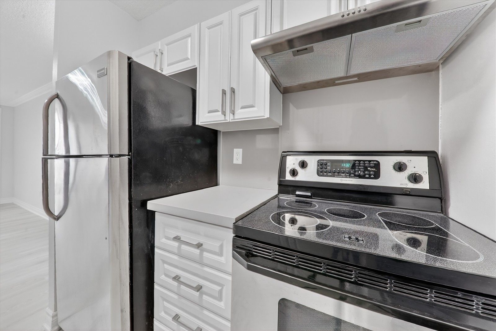 Excellent opportunity for first-time buyers! Newly renovated one bedroom, one bathroom condo apartment located in a highly desirable neighborhood. Bright open concept layout with walk-out to balcony. Upgraded kitchen featuring quartz countertops and stainless steel appliances. Washer & dryer rough-in available in the unit. Safety and security prioritized with 24/7 security. Conveniently located close to all amenities: minutes to shopping, schools, community centre, church, parks, hospital, and public transit. Easy access to hwy 401 and much more. Great location for commuters!