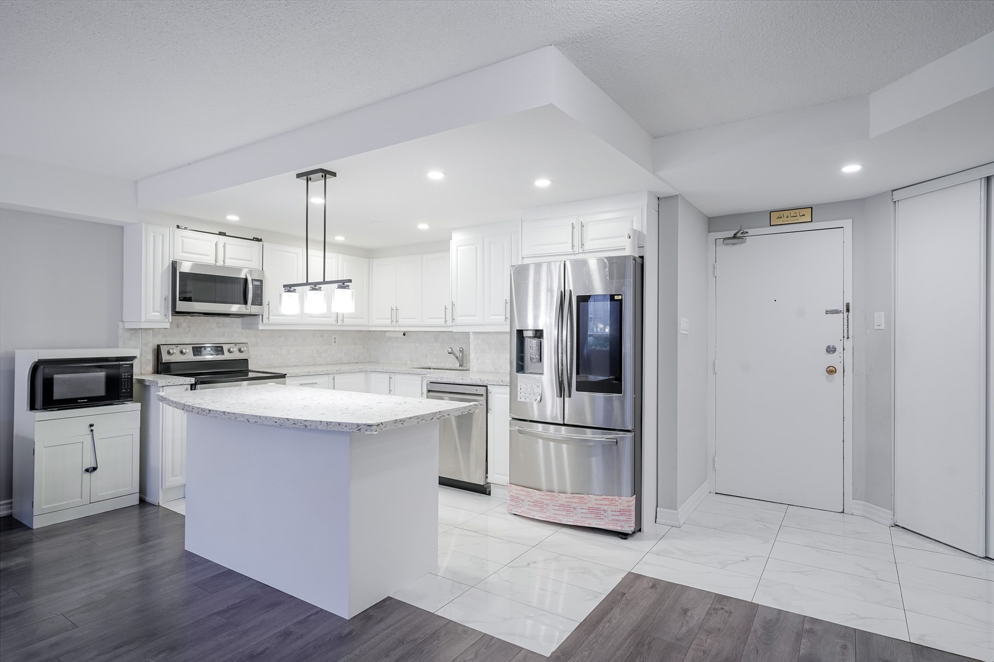 Live the toronto lifestyle in this fully upgraded 3-bedroom condo! Featuring a modern kitchen with a central island and sleek pot lights, an airy living room with sweeping city views, and a master bedroom with a huge triple-door closet, this home blends style and functionality effortlessly. Extras include a separate ensuite laundry, extra storage, and pristine laminate flooring throughout. Steps from transit, shopping, dining, schools, and places of worship, with quick access to highway 401 - everything you need is at your doorstep. Perfect for first-time buyers or savvy investors looking for a turnkey property in a prime location. Don't miss out!