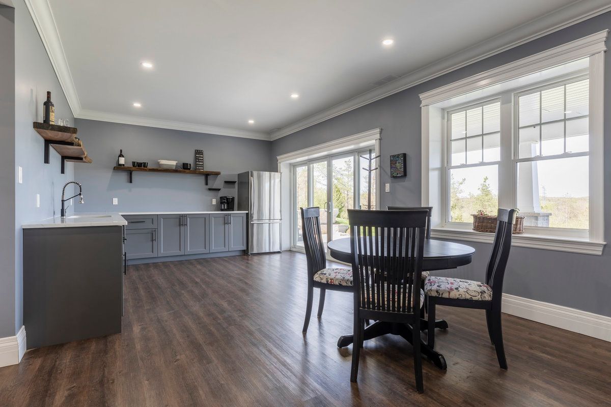 Welcome to 5583 third line - a stunning custom-built country estate where craftsmanship, modern luxury, and efficiency meet. Built in 2021, this exceptional bungaloft residence was built with insulated concrete form (icf) construction for superior energy efficiency, durability, and comfort - a true standout in today's market. The thoughtfully designed main level showcases an open-concept layout with soaring ceilings, wide-plank flooring, and abundant natural light. The gourmet kitchen features premium cabinetry, quartz countertops, a large island, and seamless flow to the dining and great room - ideal for entertaining or quiet family evenings. The main-floor primary suite offers a spa-inspired ensuite and walk-in closet, providing a luxurious retreat with views of the surrounding countryside. Upstairs, a private second-level suite includes a spacious bedroom, den, and full ensuite - perfect for guests or extended family. The fully finished lower level expands the living space with a 2-bedroom, 2-bathroom in-law suite complete with its own kitchen, living area, and walkout to the backyard. Additional lower-level highlights include a home theatre, exercise room, and ample storage. For the hobbyist or business owner, this property delivers unparalleled versatility: an attached 4-car garage with 16-foot ceilings plus a 40' x 65' detached shop, also constructed with icf, featuring a loft for added workspace or storage. Set on a private, scenic lot in the rolling hills of erin, this property combines rural tranquility with sophisticated living - just minutes from town amenities and an easy commute to the gta, guelph, and georgetown. Built to the highest standards and designed for modern multi-generational living, 5583 third line is more than a home - it's a lifestyle statement.