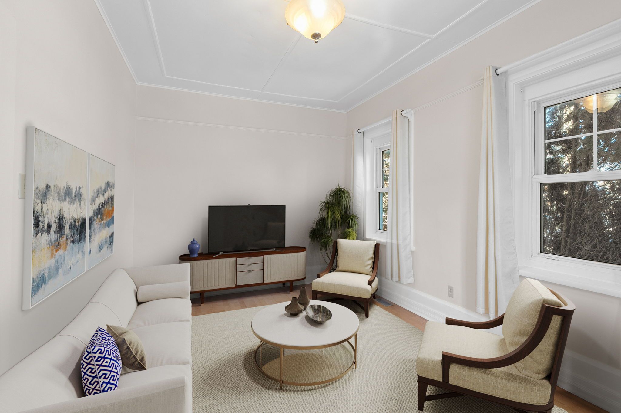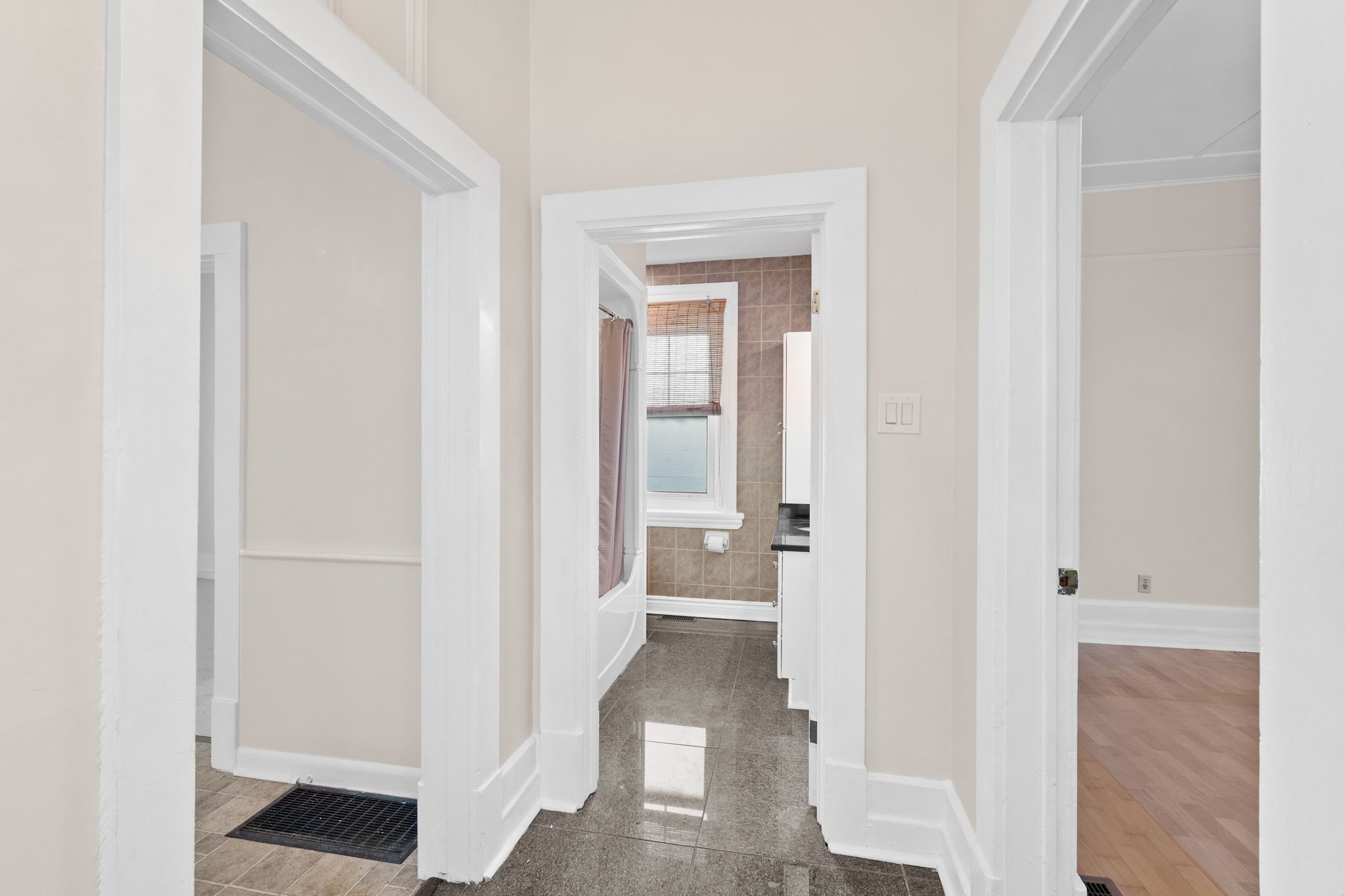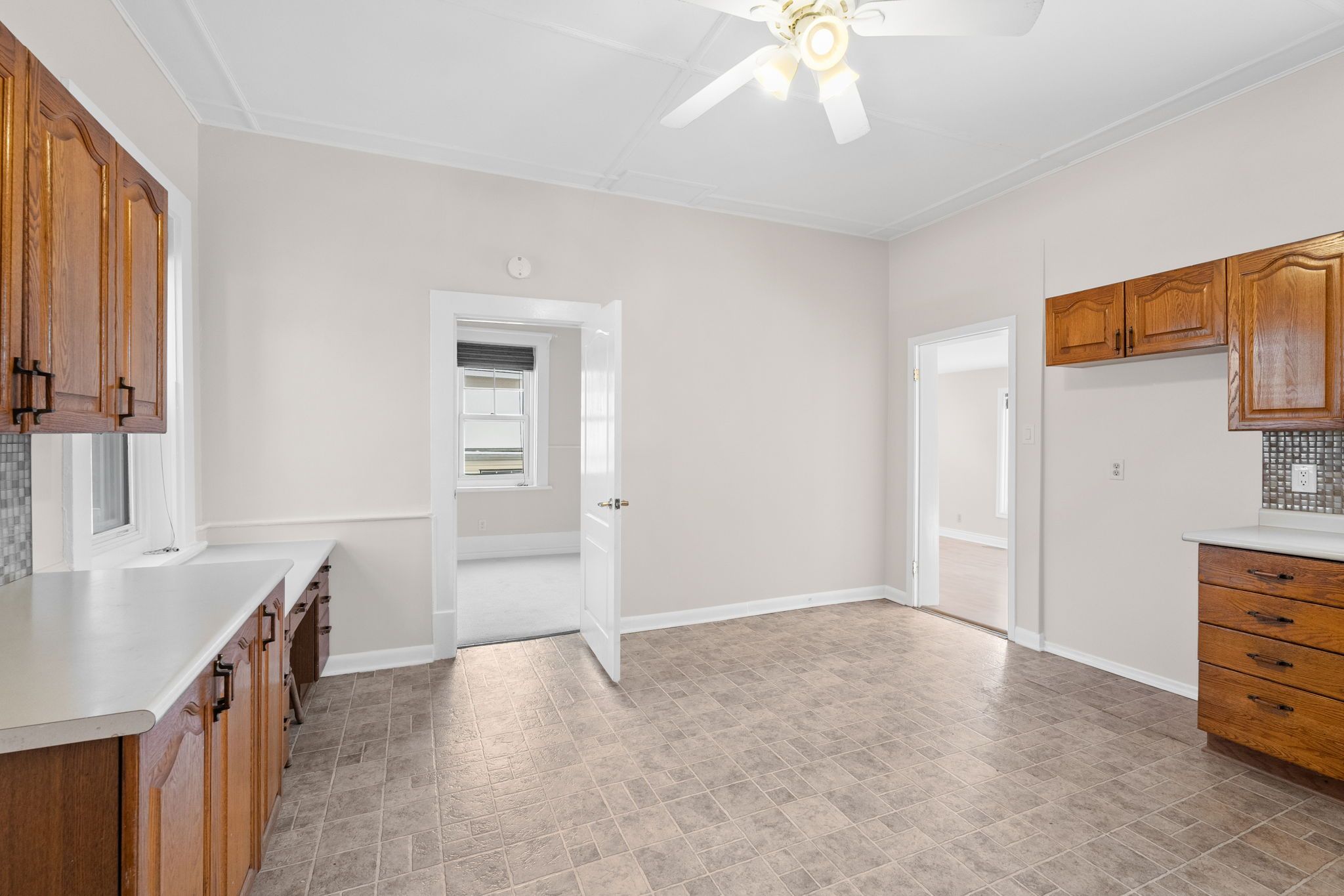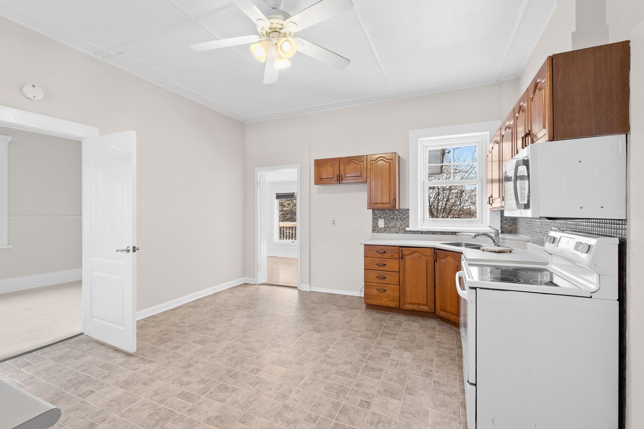 • Bright and neutral interior with an eat-in kitchen and two bedrooms.