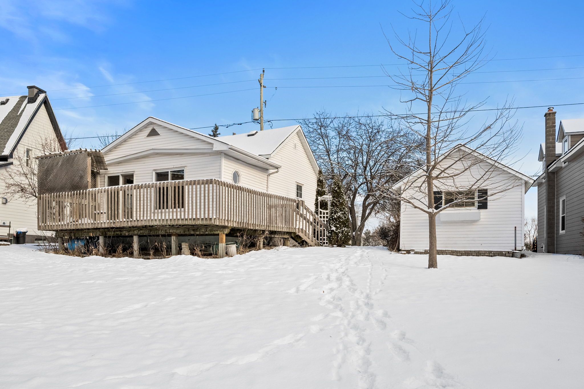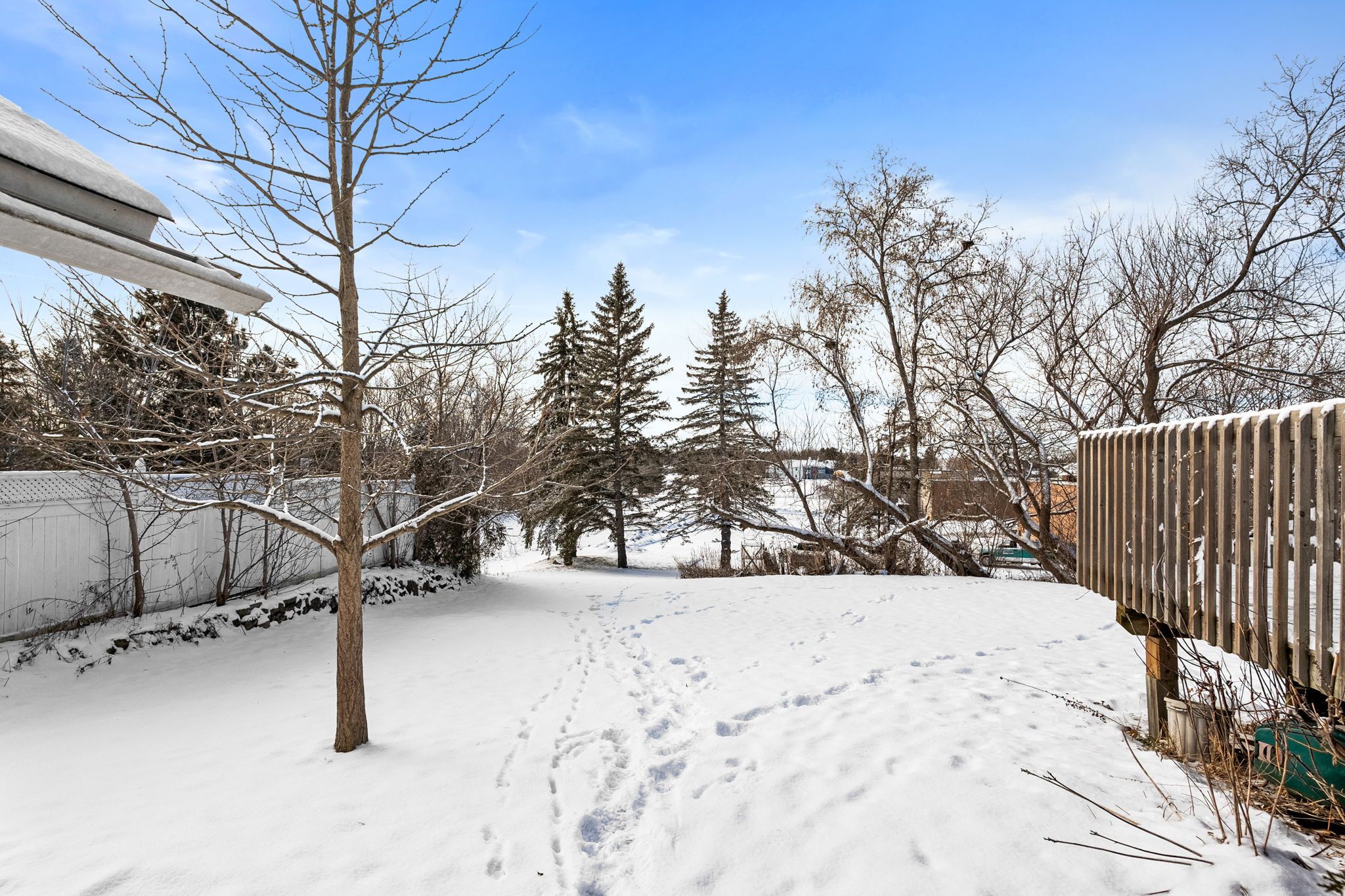 • Deck overlooks a generous yard, perfect for outdoor enjoyment.