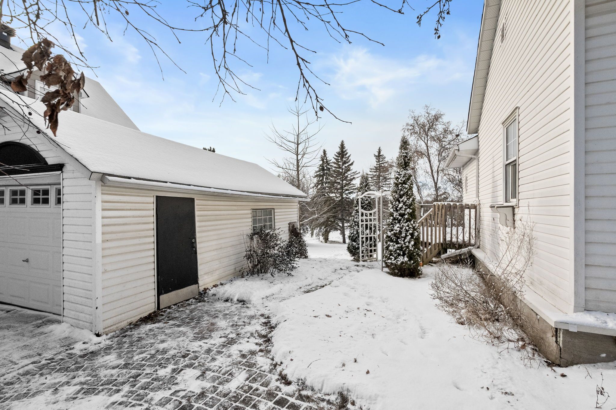 • Detached garage and parking available for two vehicles.