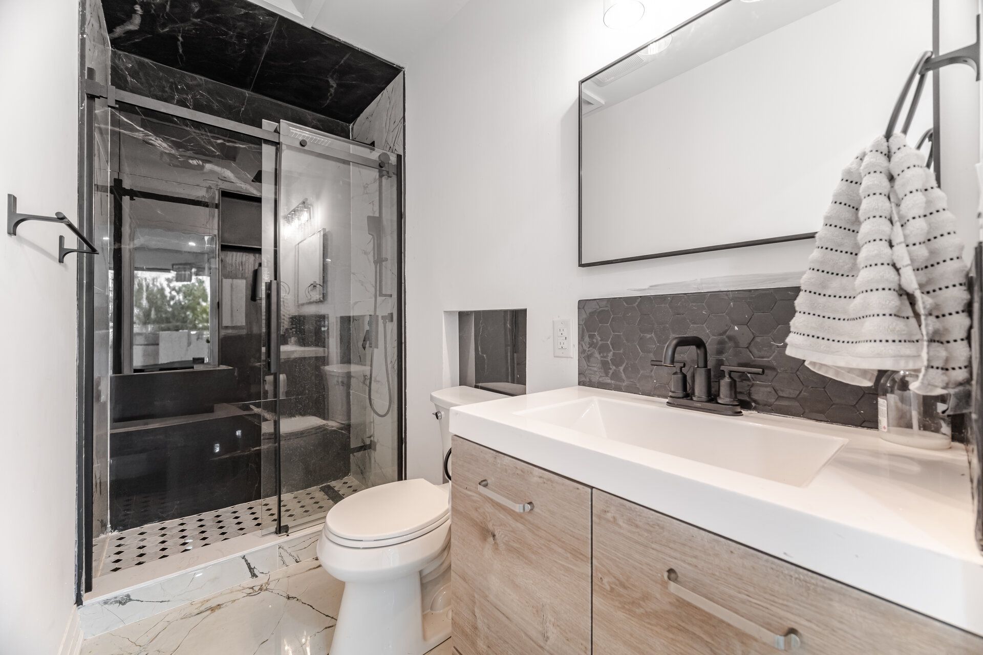 • Brand-new kitchen with stylish finishes and modern appliances.