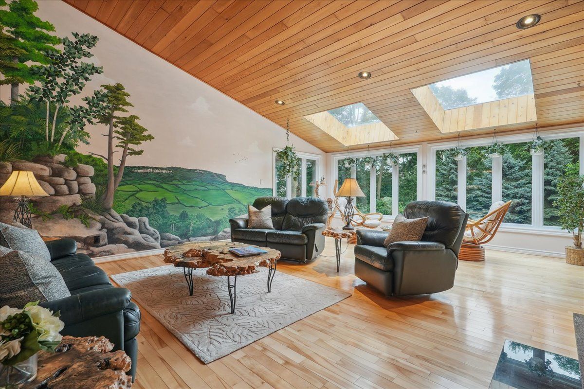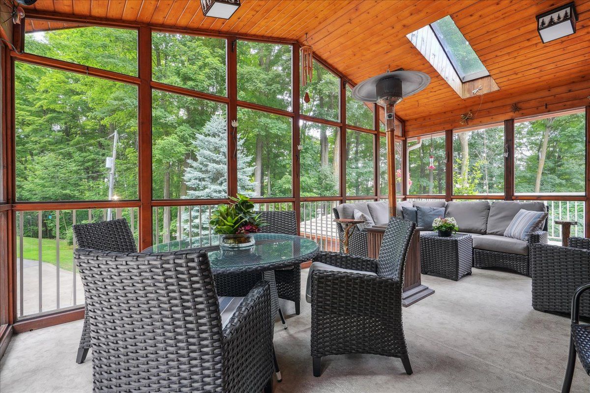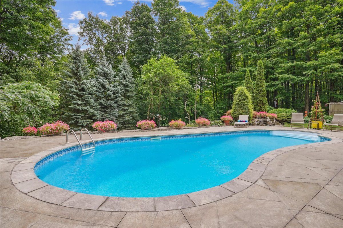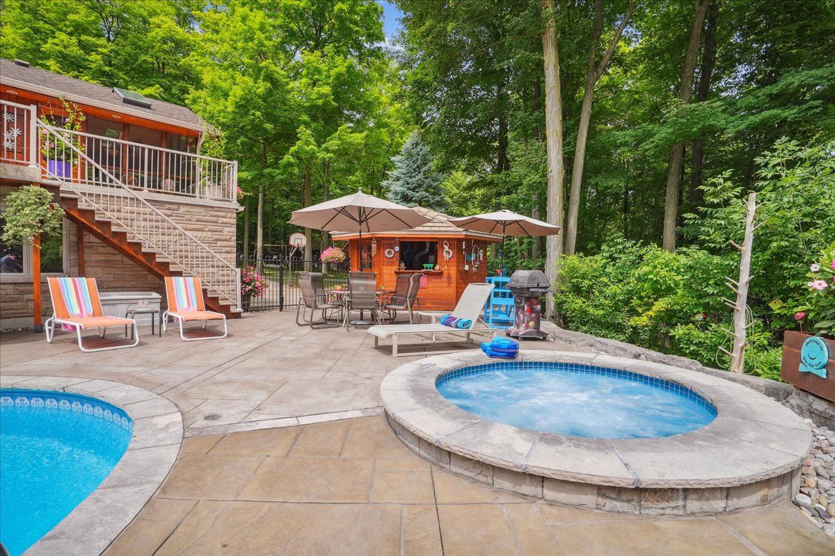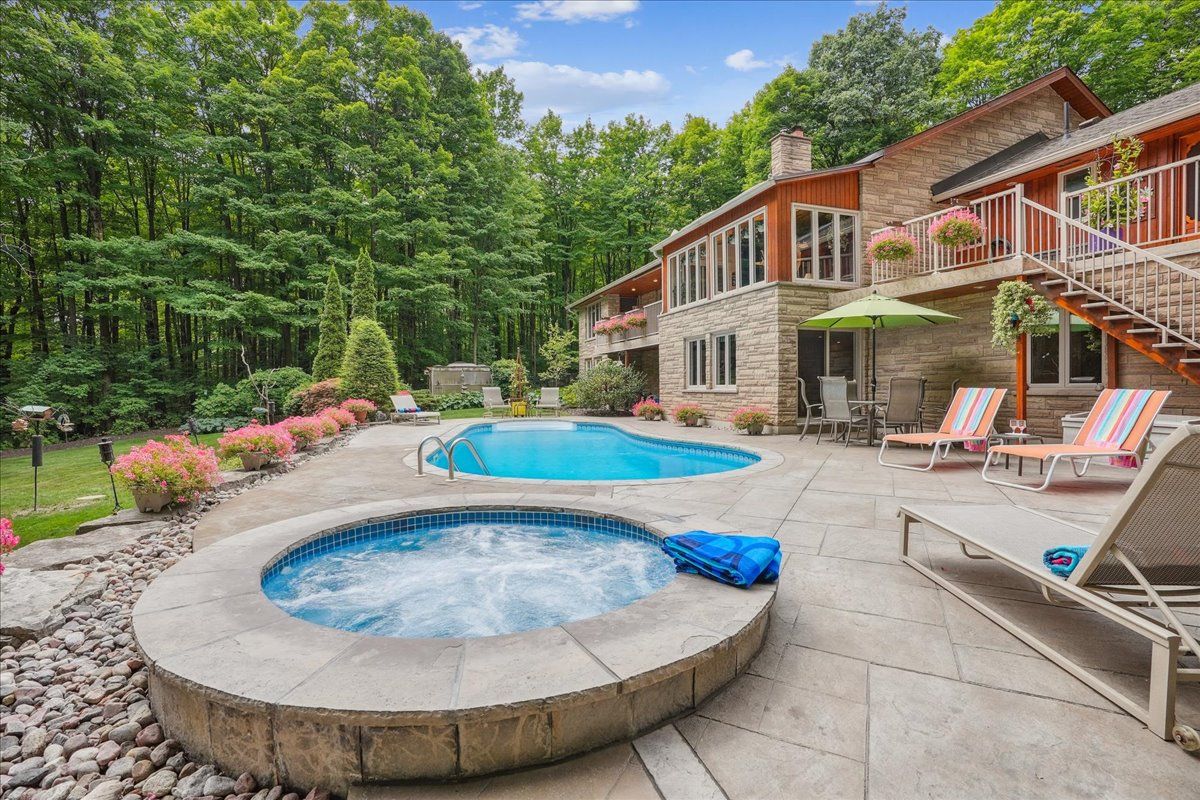 Discover an unparalleled gem rarely available on the market: a private and serene estate with a custom-designed home that fulfills every dream. Set on over 10 lush acres amidst the stunning niagara escarpment, this meticulously cared-for property is just minutes from the 401 and downtown milton. Surrounded by vibrant perennial gardens and towering mature trees, this home is perfectly positioned in the heart of halton conservation's premier parks. You'll be just moments from kelso conservation area, rattlesnake point, crawford lake, hilton falls, and the bruce trail ideal for outdoor enthusiasts and nature lovers. The custom-built bungalow features over 6,000 sq. Ft. Of exquisite living space. Its open-concept design showcases vaulted ceilings, a double-sided stone fireplace, a spacious kitchen with pine cabinets, granite countertops, and an island. A convenient wet bar, elegant dining room, and a fantastic outdoor screen room offers the perfect space for 3-season entertaining. Enjoy stunning views from walkout decks off the kitchen, screen room, sun room, and master bedroom balcony. The lower level is a haven of relaxation and recreation. You will find a large recreation room with a cozy wood-burning stove, a games room, four additional bedrooms, and access to a three-car garage. Walk out to a luxurious inground pool with a hot tub, cabana, and a soothing water feature. The home is equipped with a 400-amp electrical service, a propane-powered generator, and a geothermal heating and cooling system. A separate two-car garage provides the ideal "man cave" and additional storage for garden equipment. Garden enthusiasts will love the large greenhouse/potting shed, and the property boasts a fire pit with a patio area, night landscape lighting, and over one kilometer of meticulously groomed walking trails. Why settle for a cottage when you can have this dream home without the drive? Experience the ultimate in luxury and tranquility this is truly what dreams are made of!