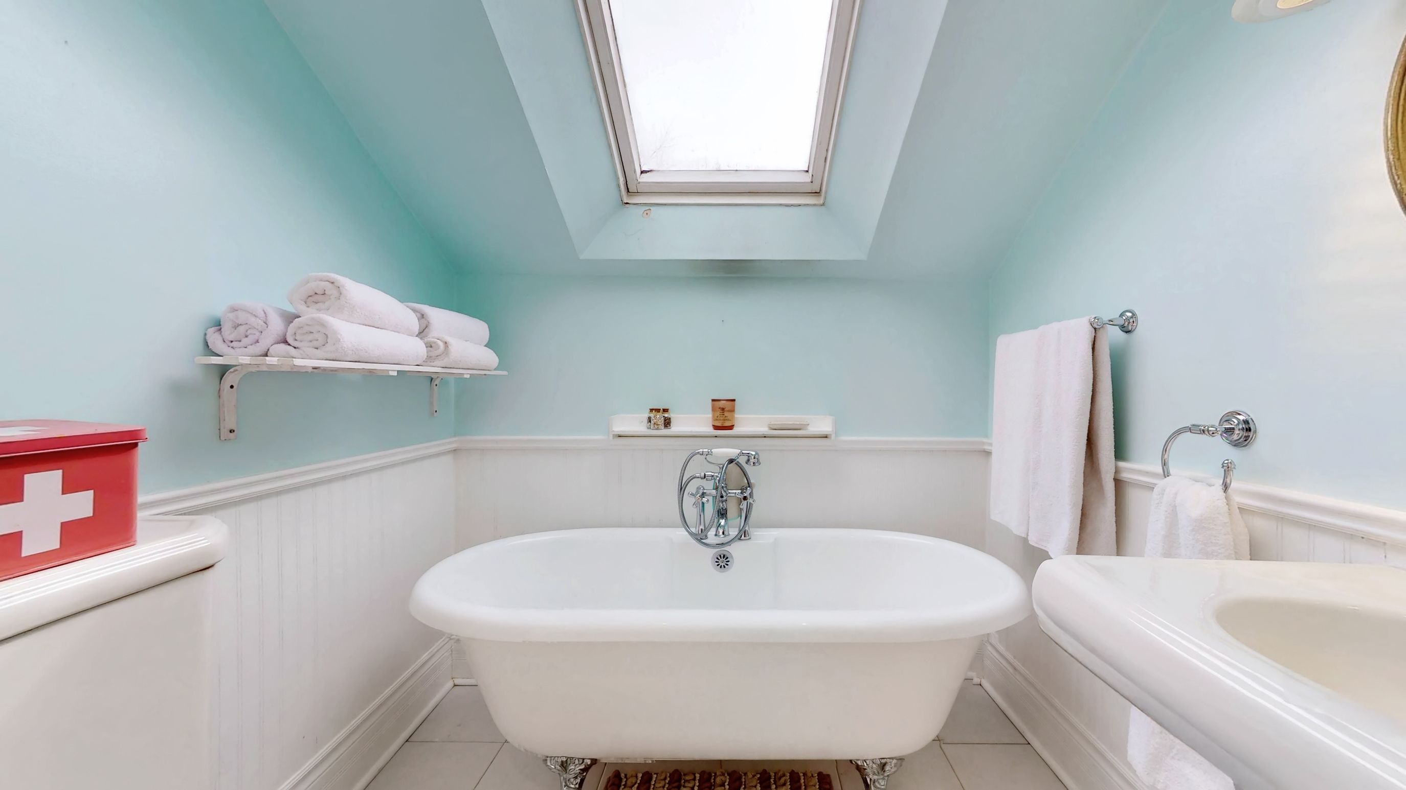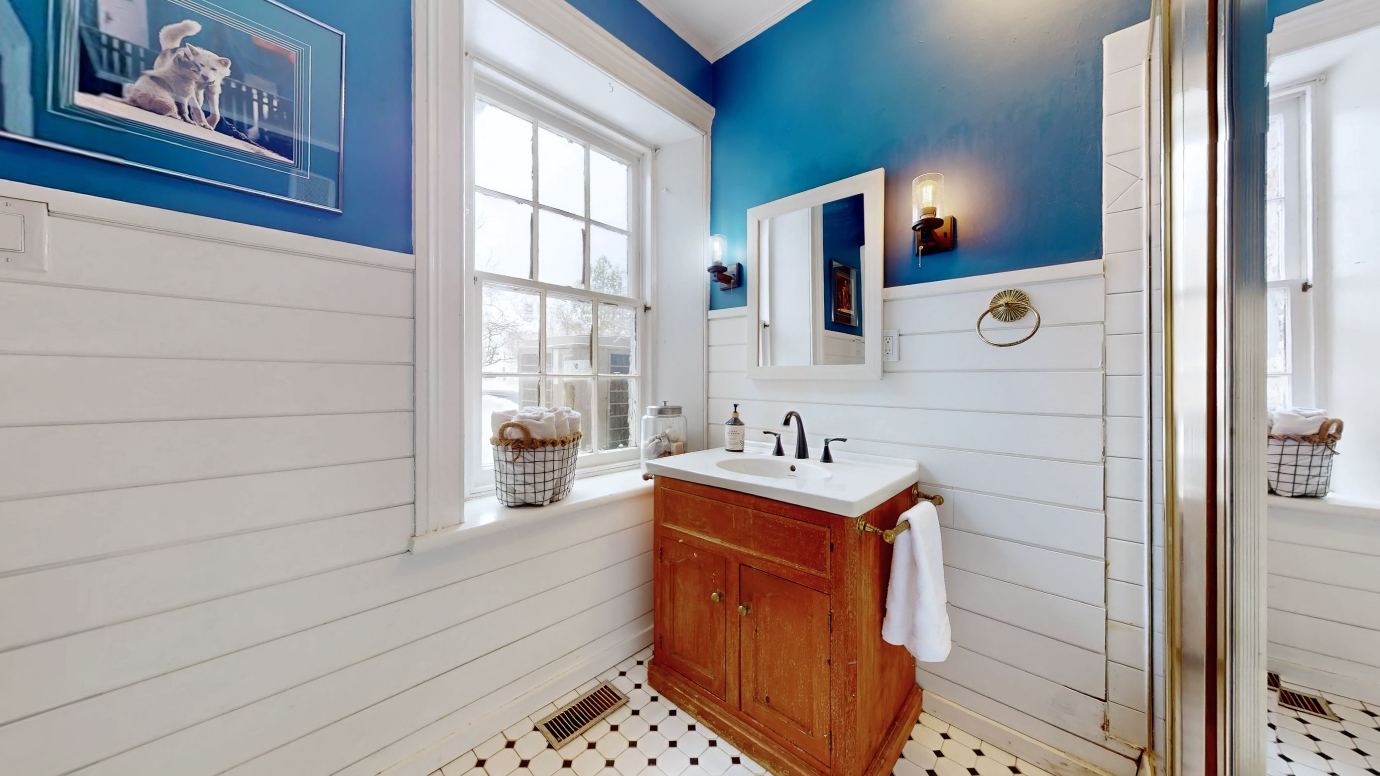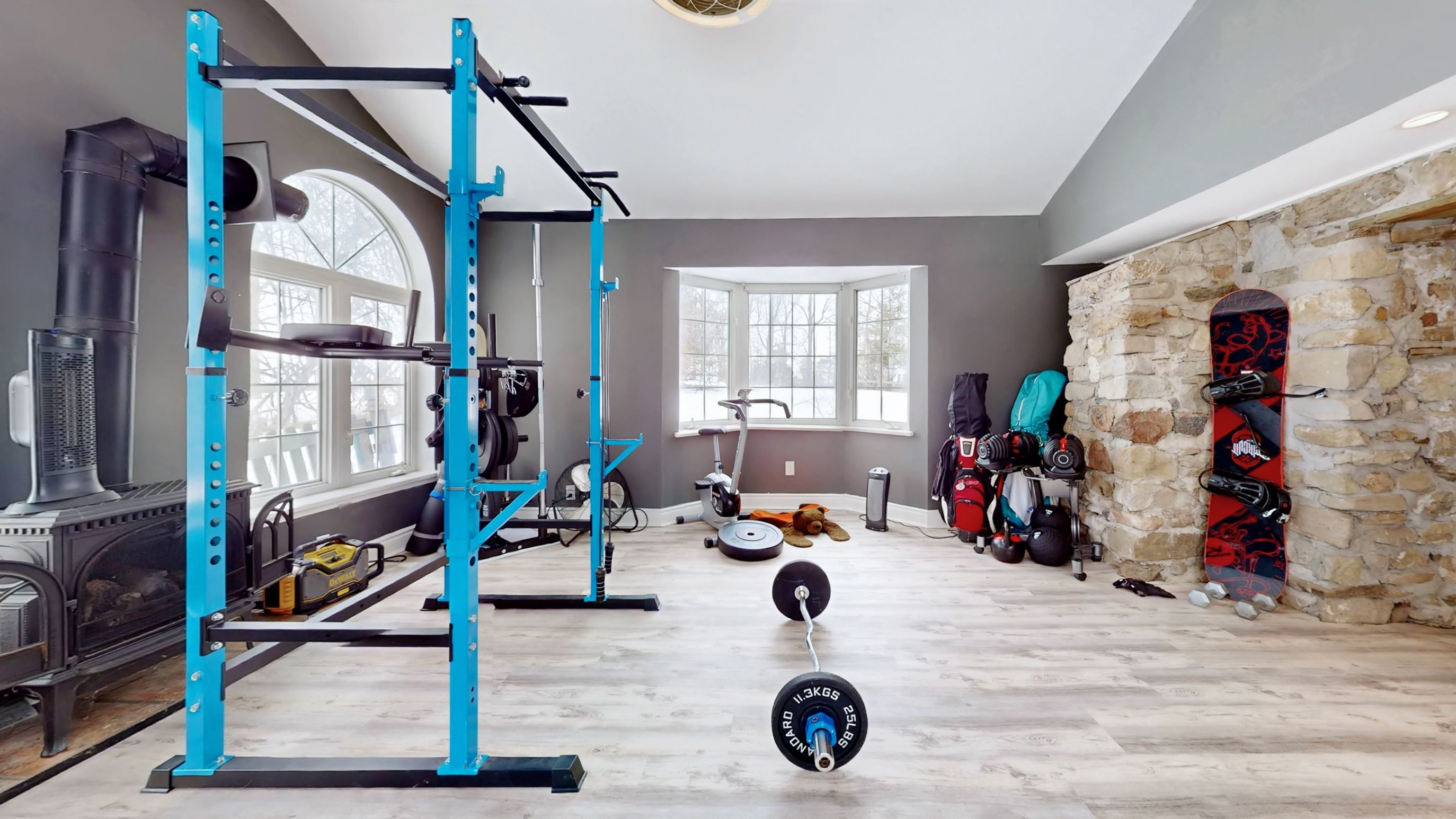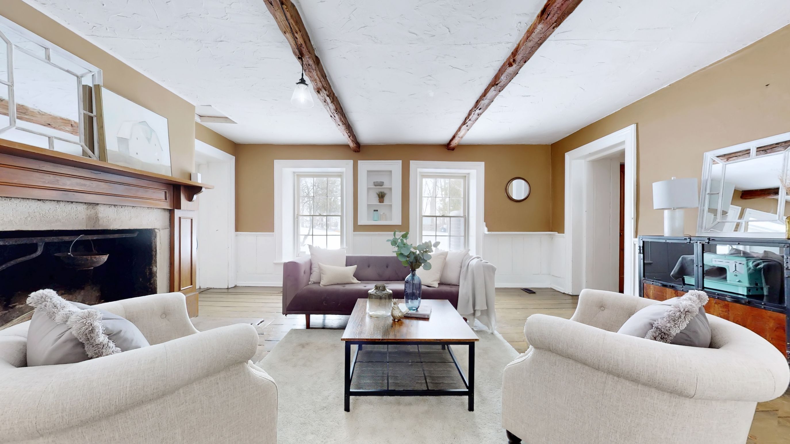 • Renovated kitchen with stone accents and a vintage-style Elmira Stove.