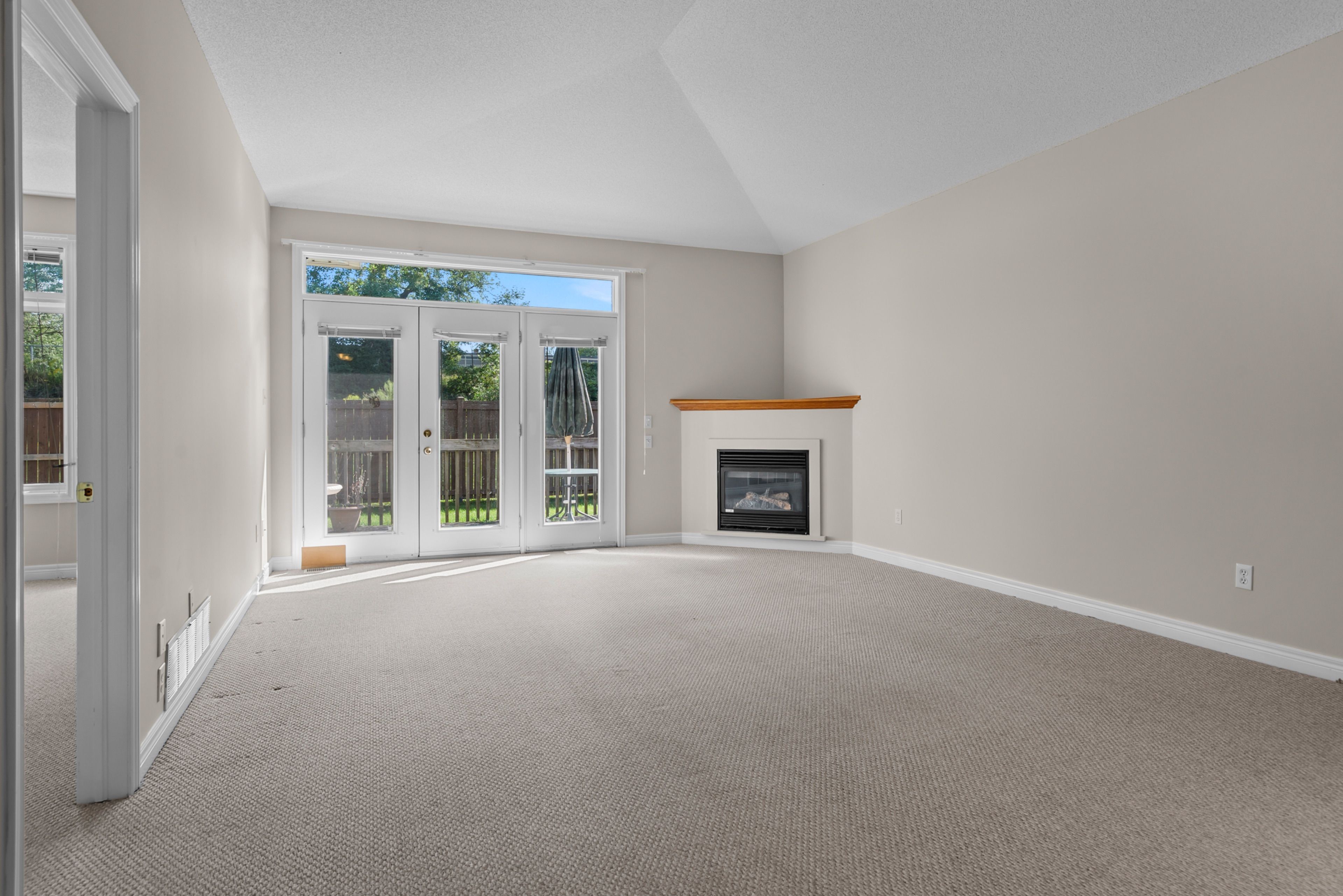• Open-concept living area with vaulted ceilings and a cozy gas fireplace.