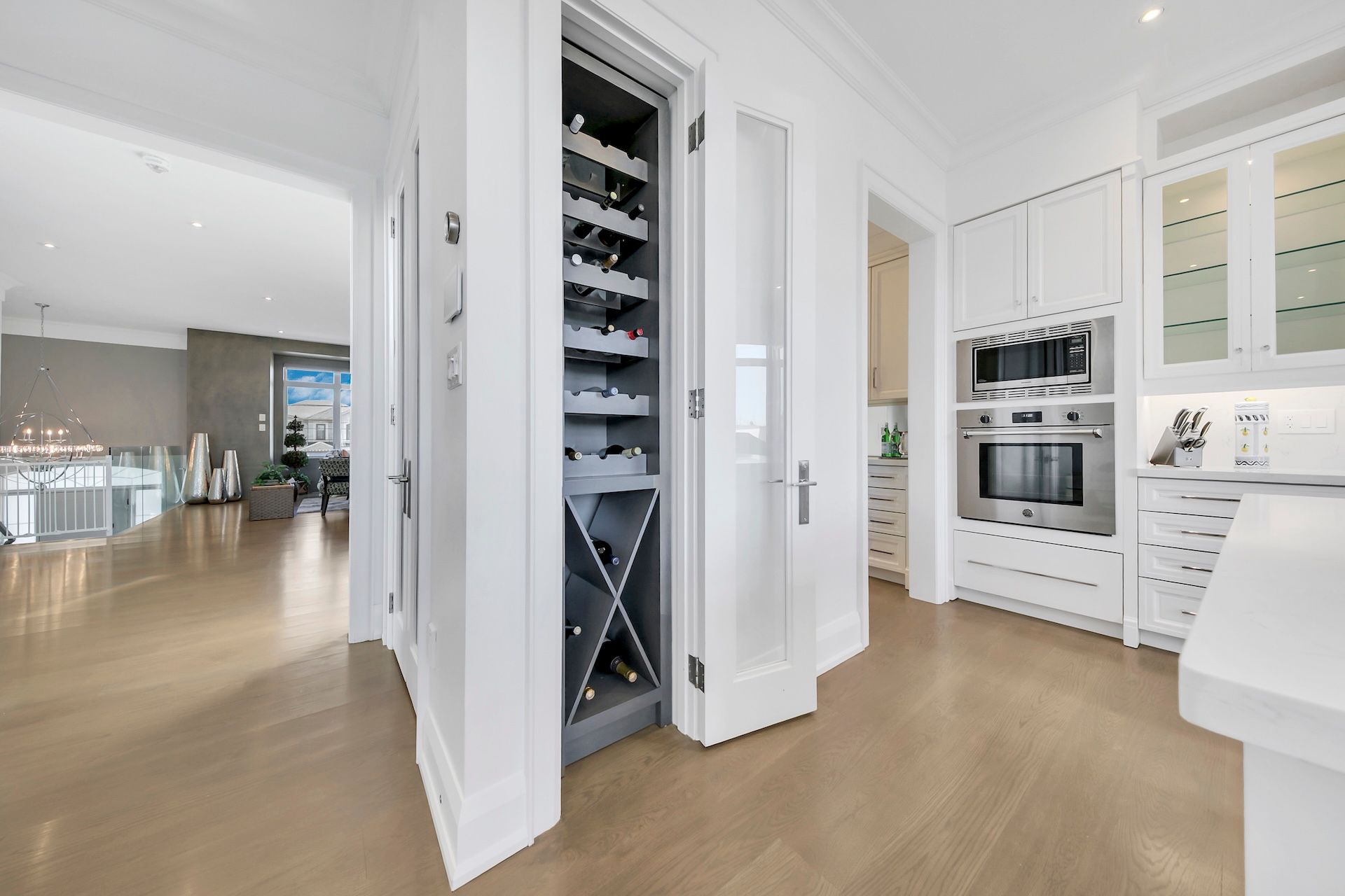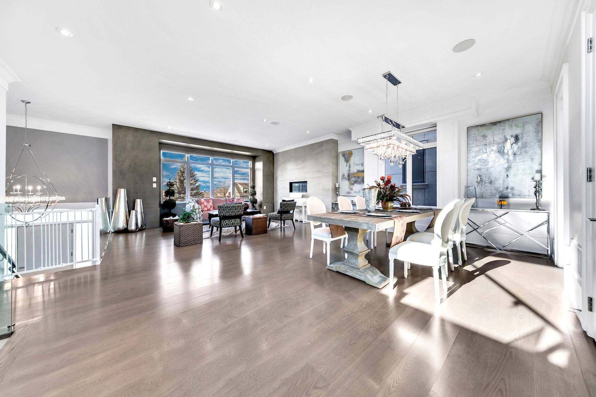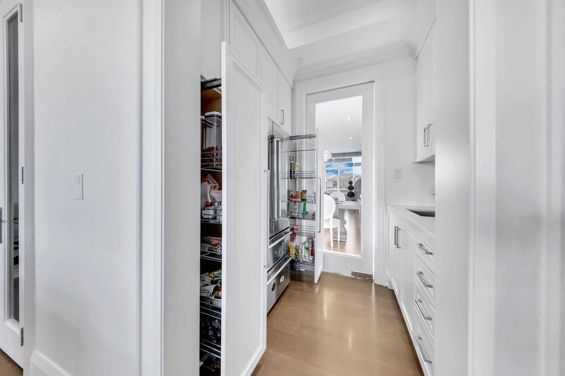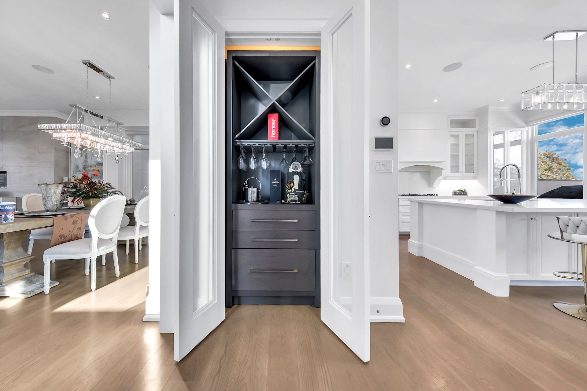 Timeless elegance meets exceptional craftsmanship in this stunning residence, offering over 5,000 sqf of meticulously finished living space. Built just eight years ago, the home is thoughtfully designed for impressive entertaining and outstanding everyday comfort. A breathtaking 17-ft entrance sets the tone from the moment you step inside, with abundant natural light streaming through oversized windows to showcase the home's premium finishes. The foyer features a striking custom panel wall, soaring ceilings, and open sightlines that create an unforgettable first impression. The main level offers 10-ft ceilings, elegant crown moulding, pot lights, and a well-planned layout that blends openness with functionality. Principal rooms are luxurious yet inviting, including a living room enhanced with a custom panel wall and large windows that fill the space with natural light. At the heart of the home is the chef-inspired kitchen, featuring an oversized island, double pull-out pantry systems, tall custom doors, premium cabinetry, built-in wine hutch, and two impressive wine displays. Built-in speakers in the kitchen, living and dining rooms elevate both everyday living and entertaining. The adjoining family room includes a rough-in for surround sound, allowing for a future cinematic experience. The upper level features 9-ft ceilings and four generously sized bedrooms, each offering excellent closet space, including multiple walk-in closets. The primary suite stands out with a spacious walk-in closet, double-sided gas fireplace, and a spa-like ensuite with heated floors and refined finishes. The fully finished basement with 12-ft ceilings provides exceptional versatility, showcasing a self-contained unit complete with a modern kitchen and rough-in laundry-ideal for multigenerational living, guests, or potential rental income. Additional storage further enhance the home's practicality, while the private backyard with no neighbour at the back complete this outstanding offeriing.