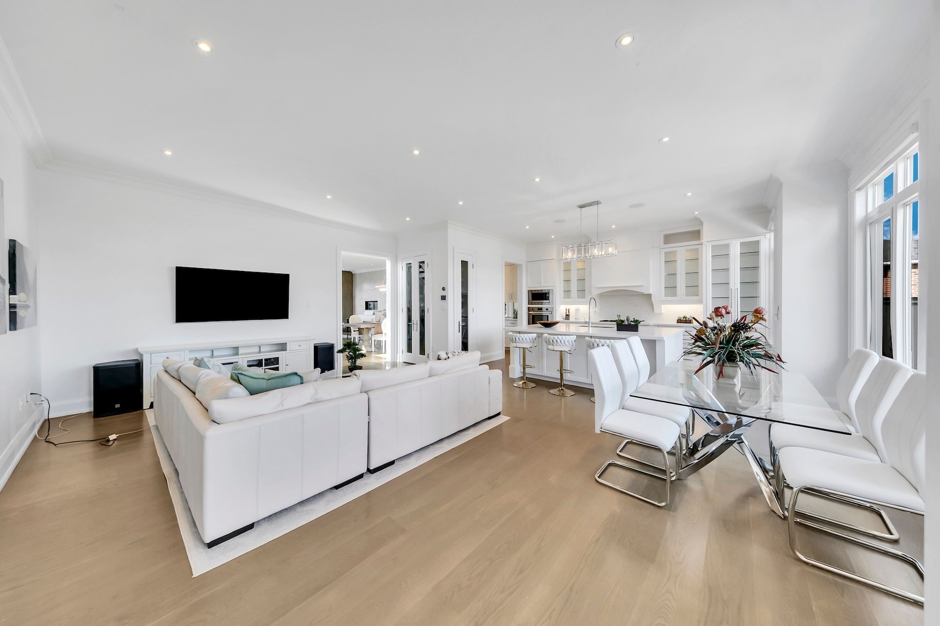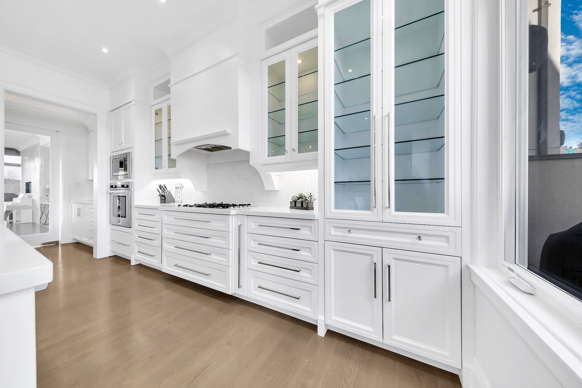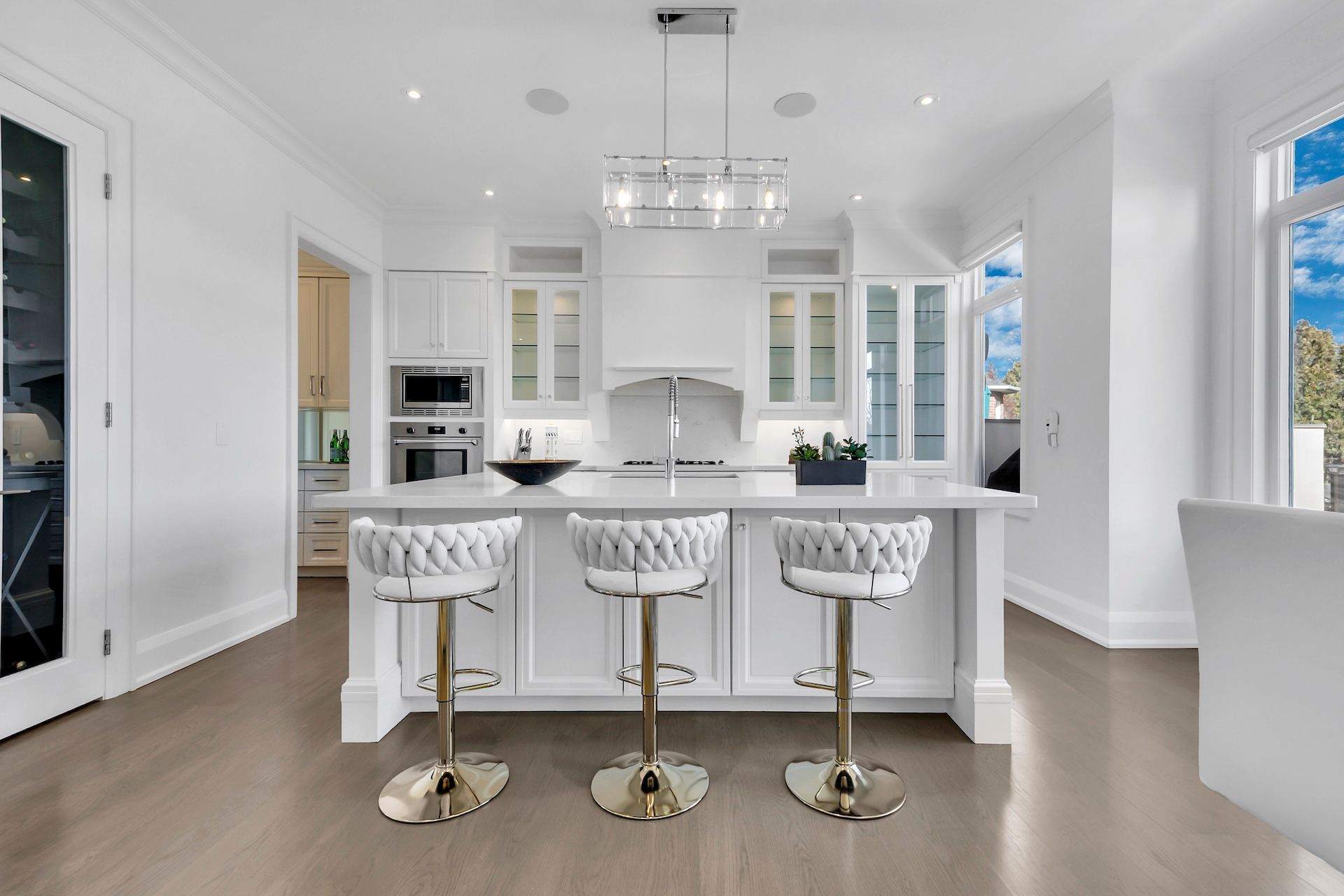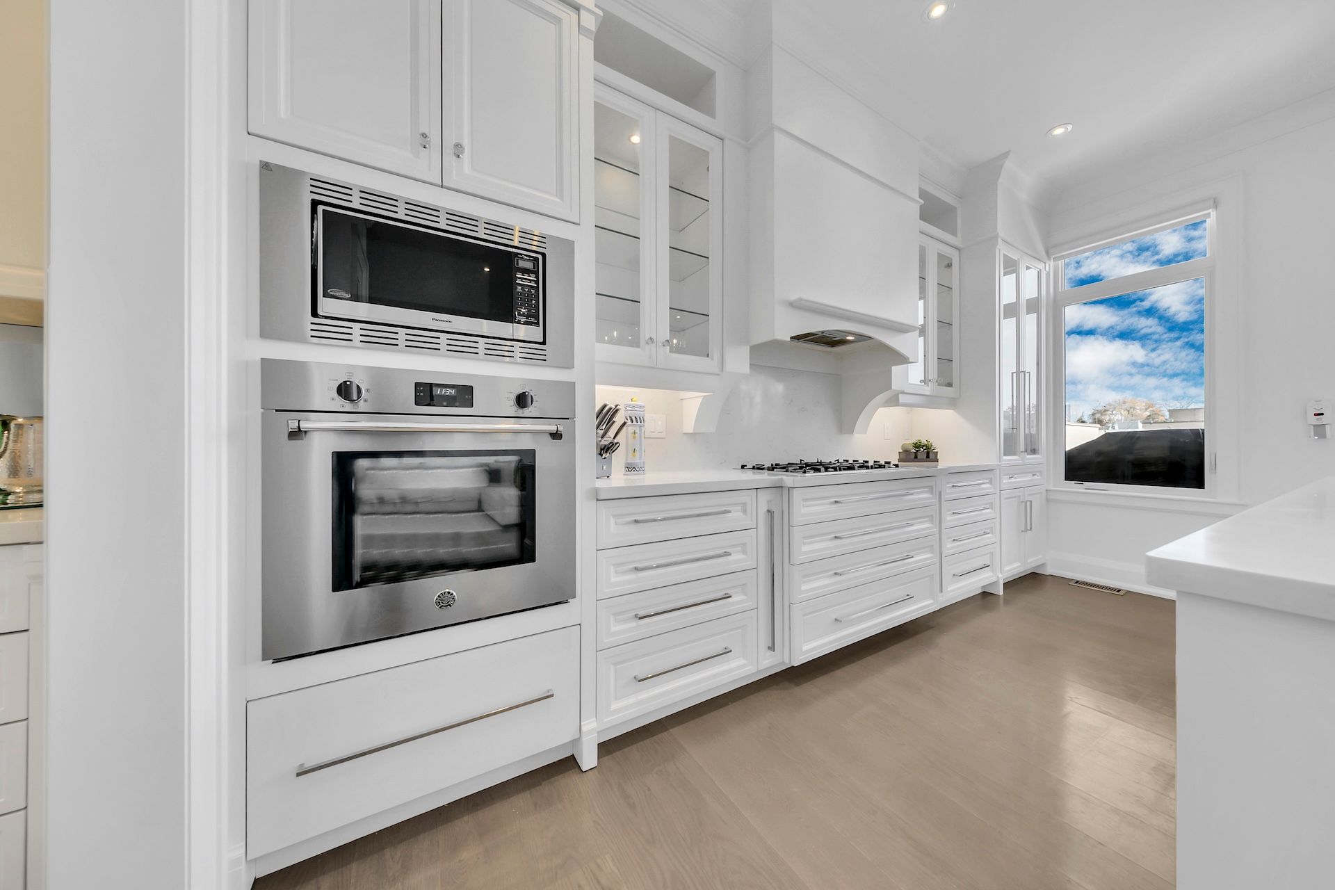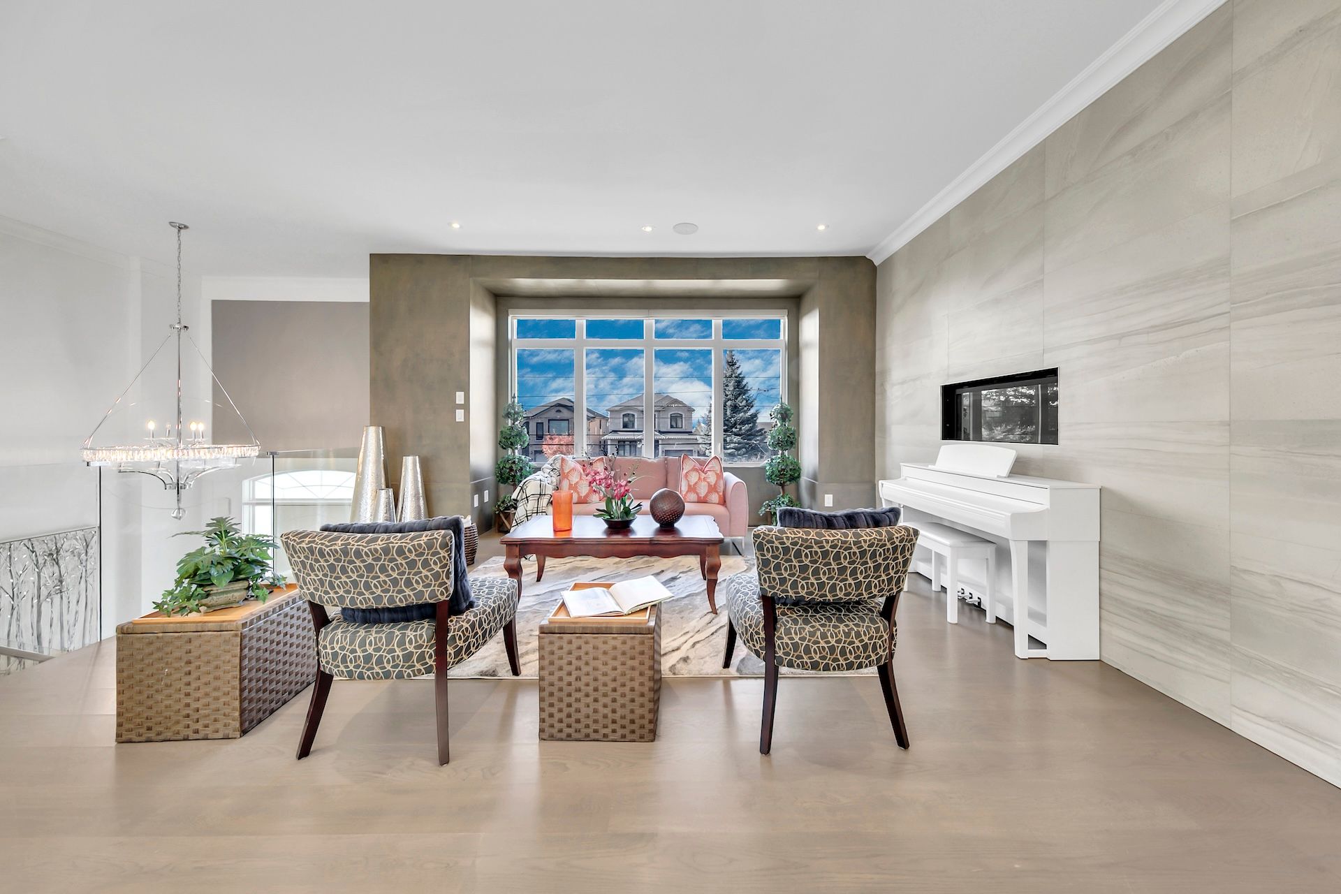 Timeless elegance meets exceptional craftsmanship in this stunning residence, offering over 5,000 sqf of meticulously finished living space. Built just eight years ago, the home is thoughtfully designed for impressive entertaining and outstanding everyday comfort. A breathtaking 17-ft entrance sets the tone from the moment you step inside, with abundant natural light streaming through oversized windows to showcase the home's premium finishes. The foyer features a striking custom panel wall, soaring ceilings, and open sightlines that create an unforgettable first impression. The main level offers 10-ft ceilings, elegant crown moulding, pot lights, and a well-planned layout that blends openness with functionality. Principal rooms are luxurious yet inviting, including a living room enhanced with a custom panel wall and large windows that fill the space with natural light. At the heart of the home is the chef-inspired kitchen, featuring an oversized island, double pull-out pantry systems, tall custom doors, premium cabinetry, built-in wine hutch, and two impressive wine displays. Built-in speakers in the kitchen, living and dining rooms elevate both everyday living and entertaining. The adjoining family room includes a rough-in for surround sound, allowing for a future cinematic experience. The upper level features 9-ft ceilings and four generously sized bedrooms, each offering excellent closet space, including multiple walk-in closets. The primary suite stands out with a spacious walk-in closet, double-sided gas fireplace, and a spa-like ensuite with heated floors and refined finishes. The fully finished basement with 12-ft ceilings provides exceptional versatility, showcasing a self-contained unit complete with a modern kitchen and rough-in laundry-ideal for multigenerational living, guests, or potential rental income. Additional storage further enhance the home's practicality, while the private backyard with no neighbour at the back complete this outstanding offeriing.