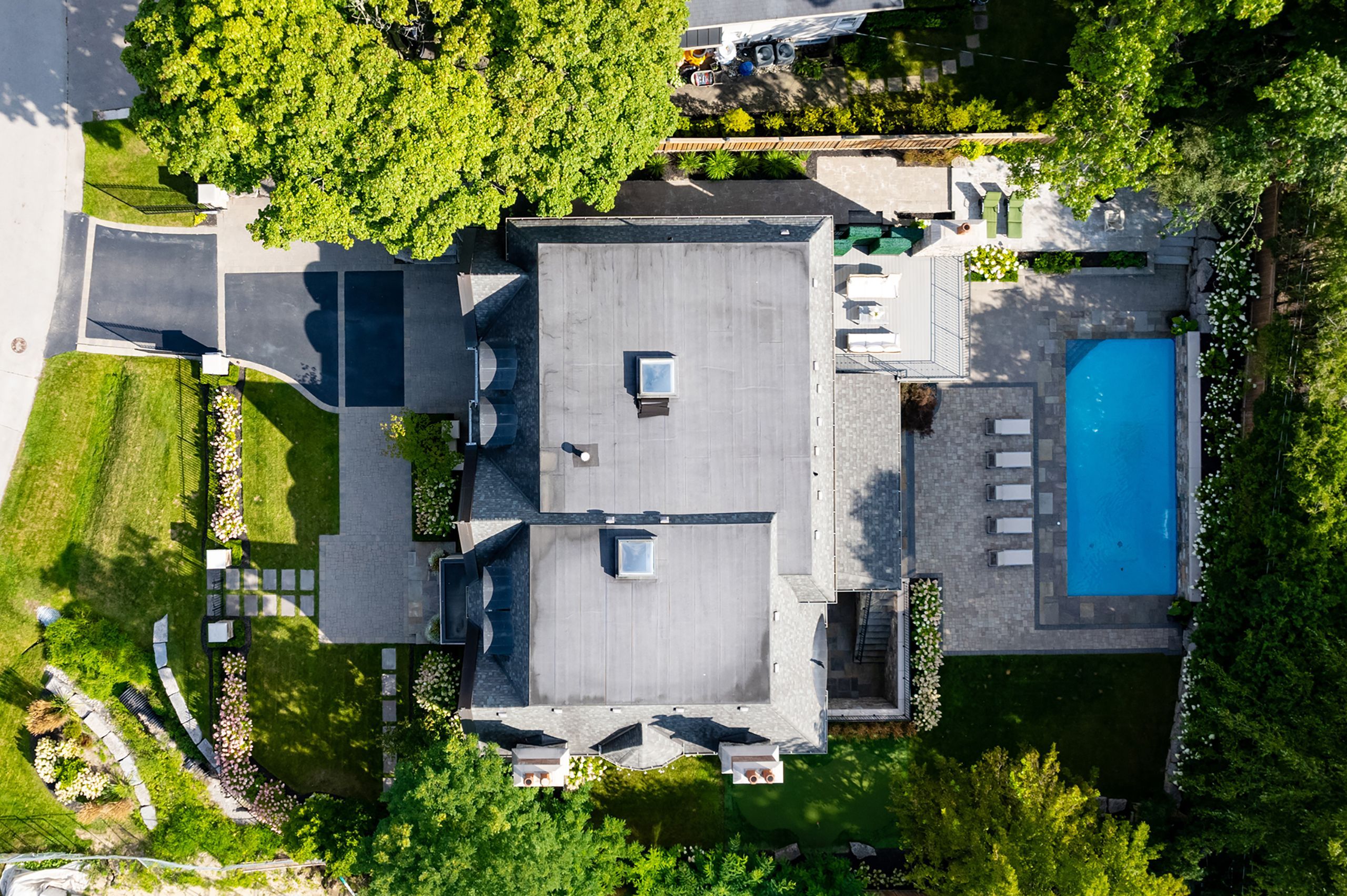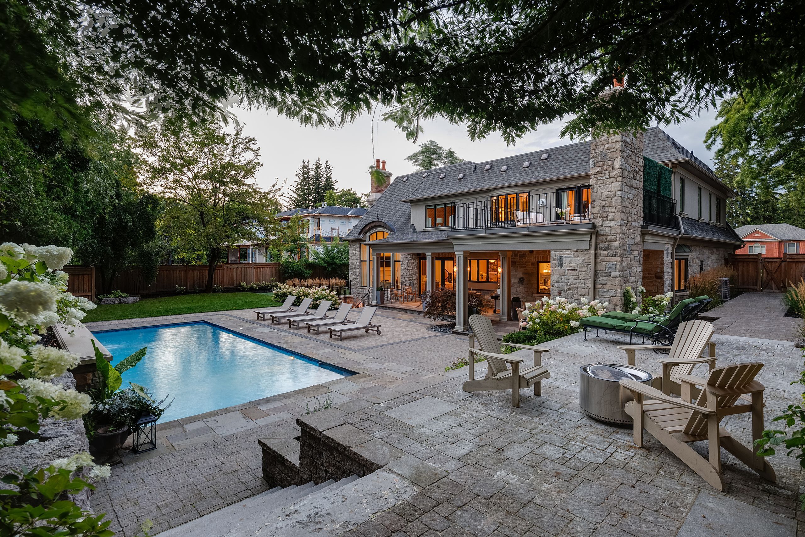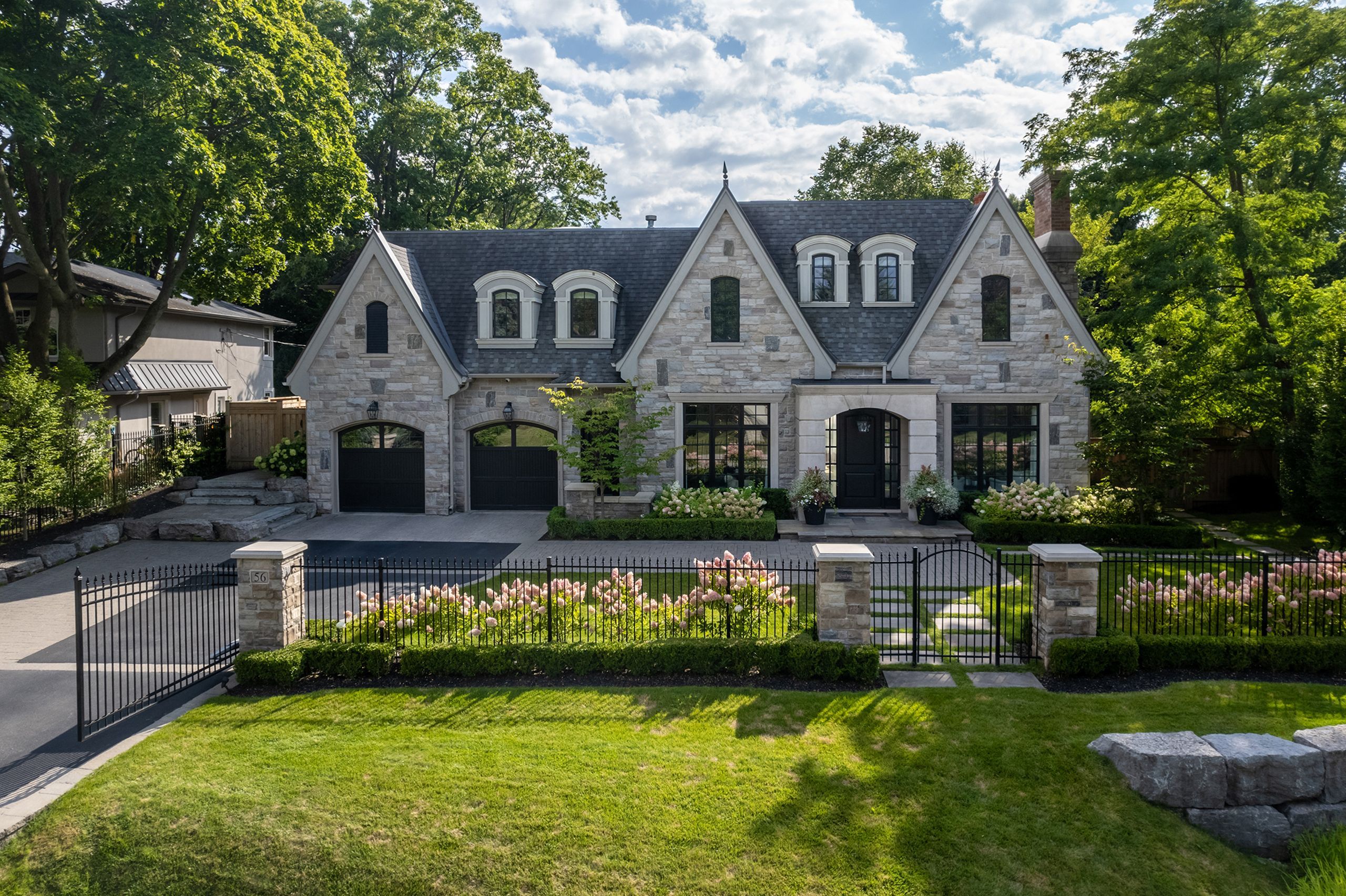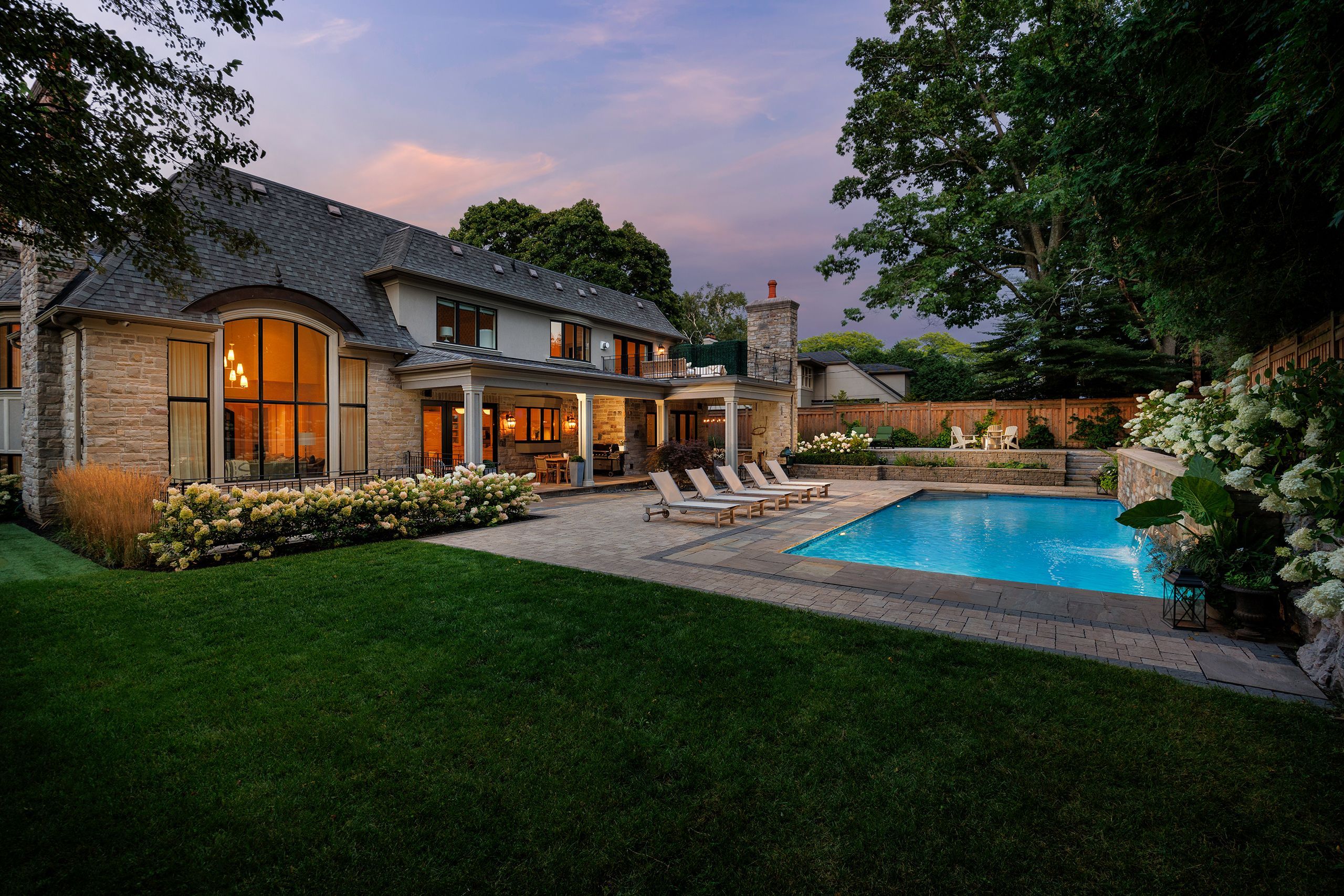 Set on one of oakville's most admired streets south of lakeshore, 56 alexander drive is a custom home defined by timeless design, scale, and craftsmanship. A stone exterior, gated wrought iron driveway, and 3-car tandem garage introduce over 8,400 sq. Ft. Of refined living space. With 6 bedrooms, 7 bathrooms, and a premium west-backing lot, the home offers an exceptional lifestyle just steps to the lake and within walking distance to downtown. The main level showcases elegant flow and generous proportions. The kitchen opens to the great room, where floor-to-ceiling windows bring in natural light. A spacious living room with a gas fireplace creates a warm setting for gathering, while the dining room is ideal for entertaining. A private office with access to an outdoor sitting area and wood-burning fireplace adds a quiet retreat. Elevated finishes and the convenience of an elevator enhance both comfort and livability. Upstairs, five well-appointed bedrooms and bathrooms, including three recently renovated with heated floors, continue the home's thoughtful design. The primary suite offers a gas fireplace, private patio, and a spa-inspired ensuite with a sunken soaker tub and marble vanity. The lower level is designed for lifestyle and recreation, featuring a theatre, exercise room, wine cellar, sauna, additional bedroom, craft room, and recreation space, with a walk-up to the backyard. Outdoors, the west-facing yard is a private retreat. A saltwater pool with waterfall, covered patio, putting green, and fireplace create a setting for both entertaining and quiet enjoyment, completing the home's seamless indoor-outdoor living experience.