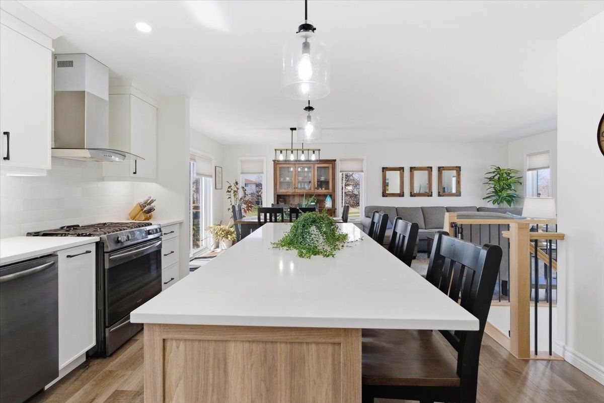 • Open main floor layout with kitchen, dining, and living spaces for entertaining.