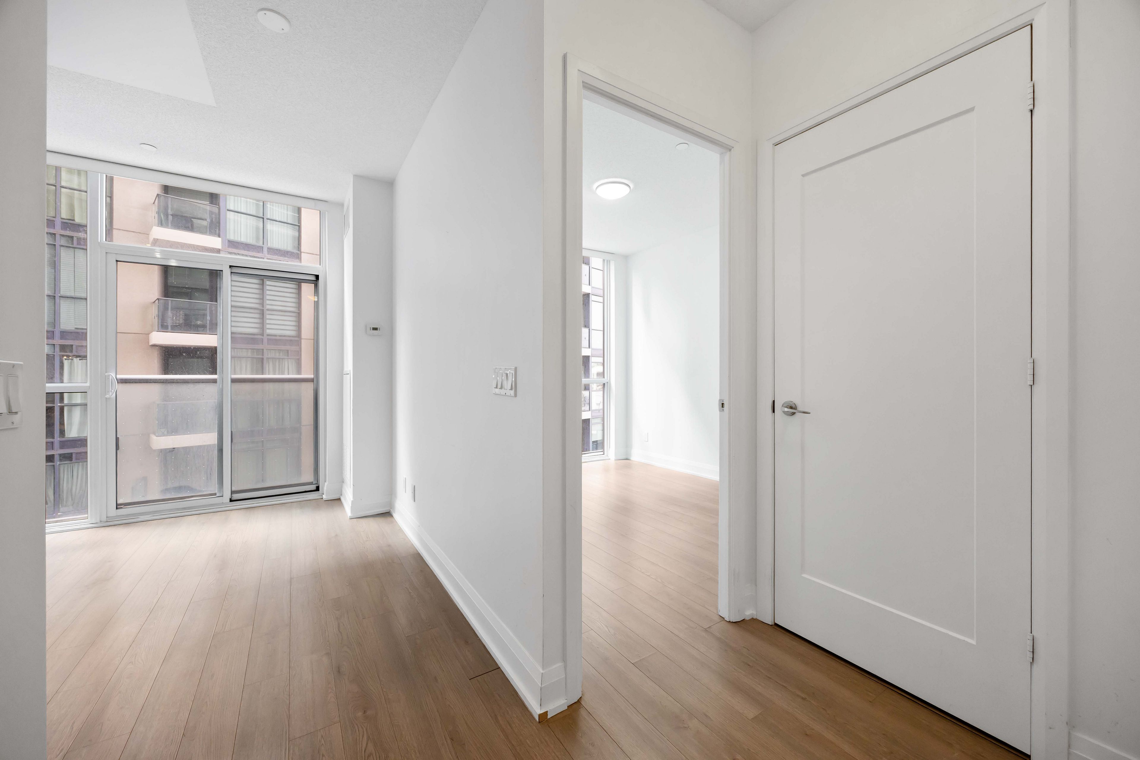 • Premium building amenities include a gym, indoor pool, and 24-hour concierge.