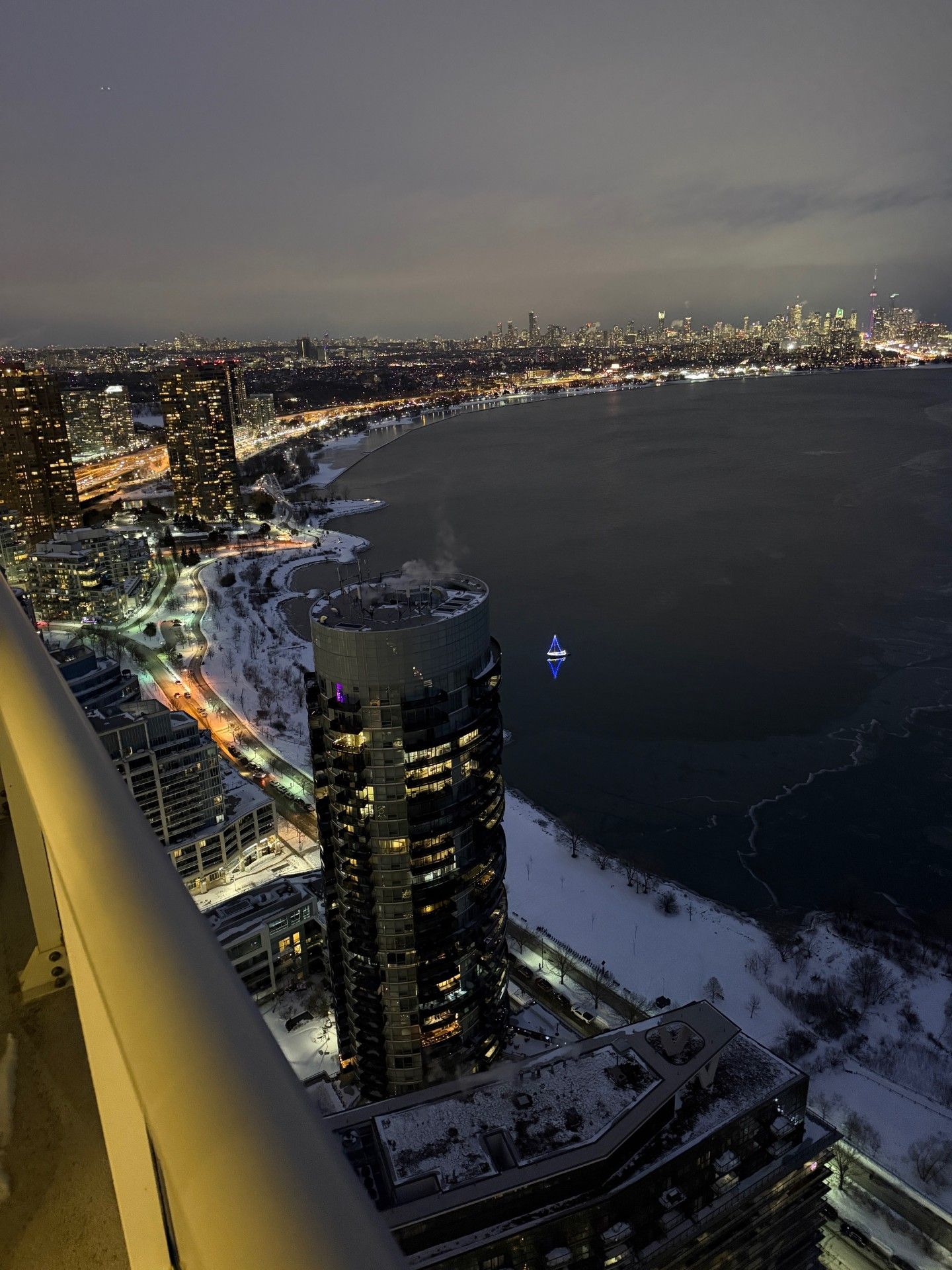 Experience exceptional waterfront living in this stunning 1,400 sq. Ft. Corner suite on the47th floor at lago. This rare offering features a wrap-around balcony with unobstructed lake ontario and cn tower views through floor-to-ceiling windows that fill the home with natural light. Inside, you'll find an impeccably designed 2+1 bedroom, 2-bathroom layout with a highly efficient floorplan and multiple walkouts to the terrace-ideal for those who love seamless indoor-outdoor living. The generous den, complete with a window and door, is a perfect third bedroom option or private office. The open-concept living area is centered around a stylish modern kitchen featuring premium built-in appliances, sleek cabinetry, and a large island, making it a chef's delight and an entertainer's dream. The primary bedroom offers a peaceful retreat with its own balcony access, a spacious closet, and a beautifully appointed ensuite. Residents enjoy access to world-class amenities, including an indoor pool, hot tub, sauna, fully equipped gym, theatre room, party room, bbq terrace, guest suites, dog wash station, 24-hr concierge, and visitor parking. Located steps from scenic parks, lakeside trails, transit, dining, and just minutes to the gardiner and mimico go station, this suite offers the lifestyle you've been dreaming of.