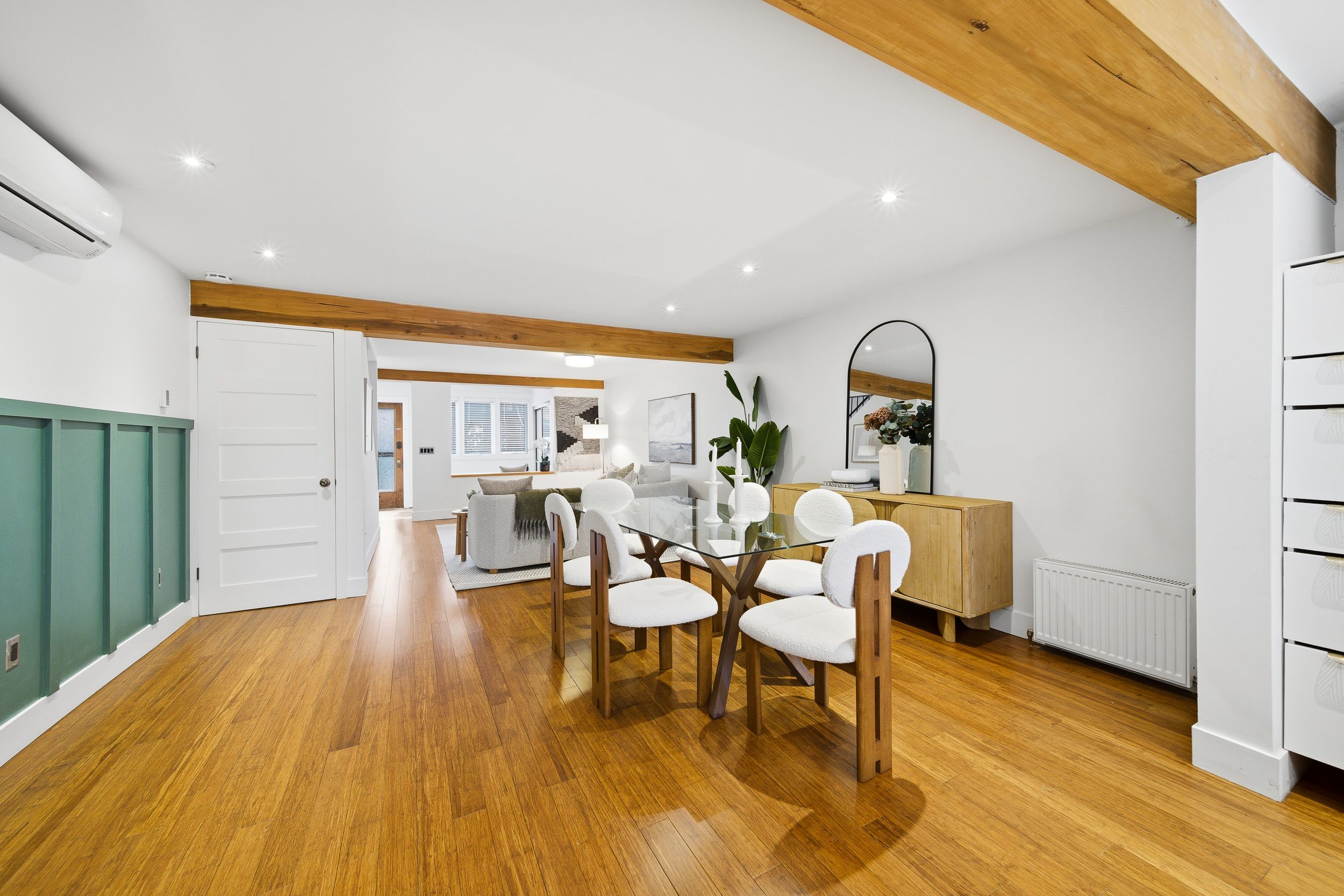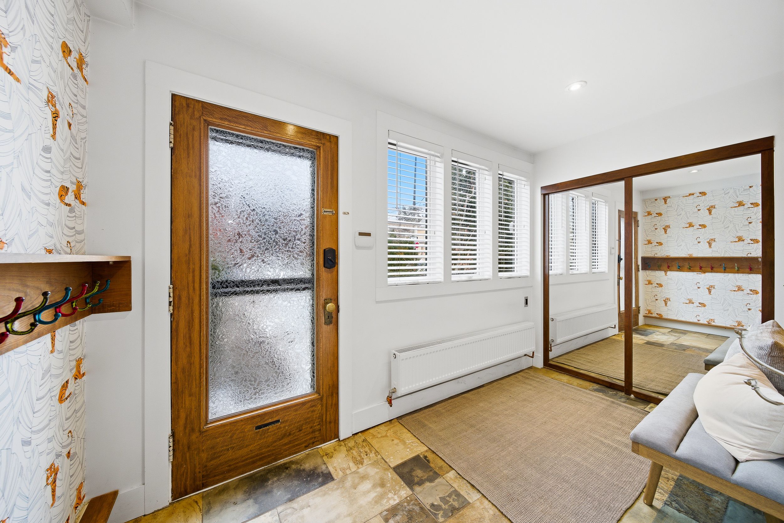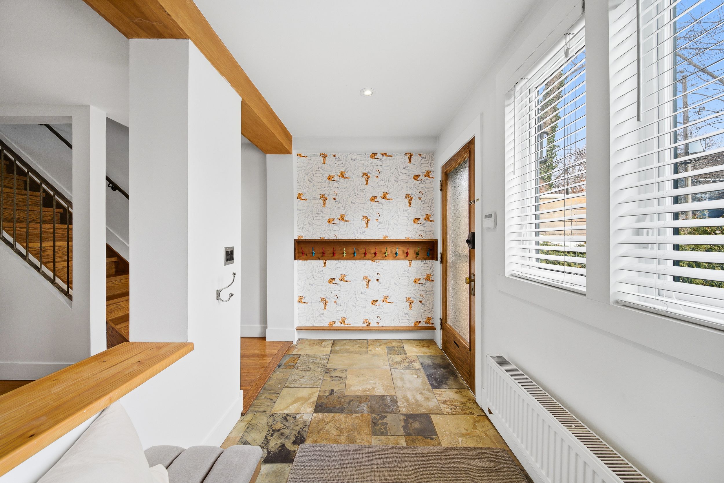 • Open-concept main floor with elegant foyer and preserved vintage door.