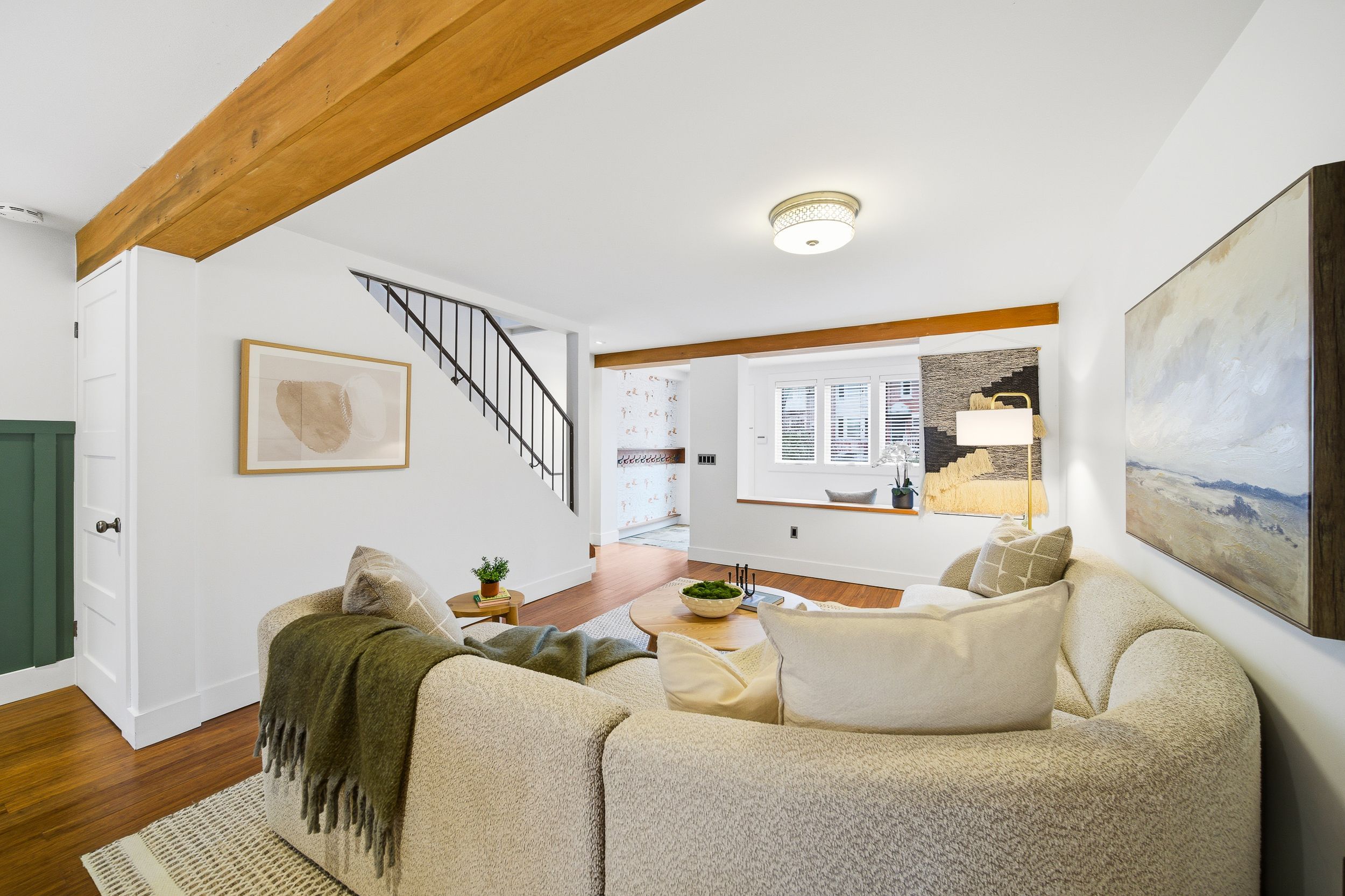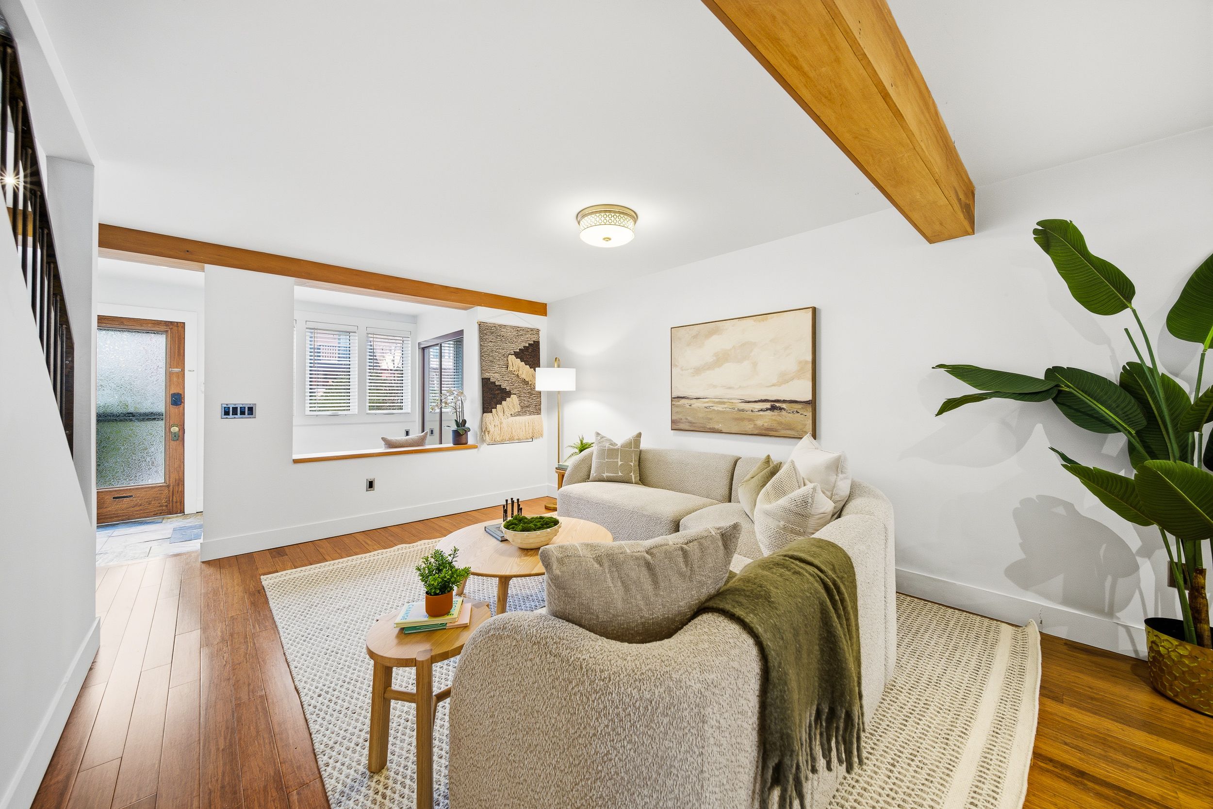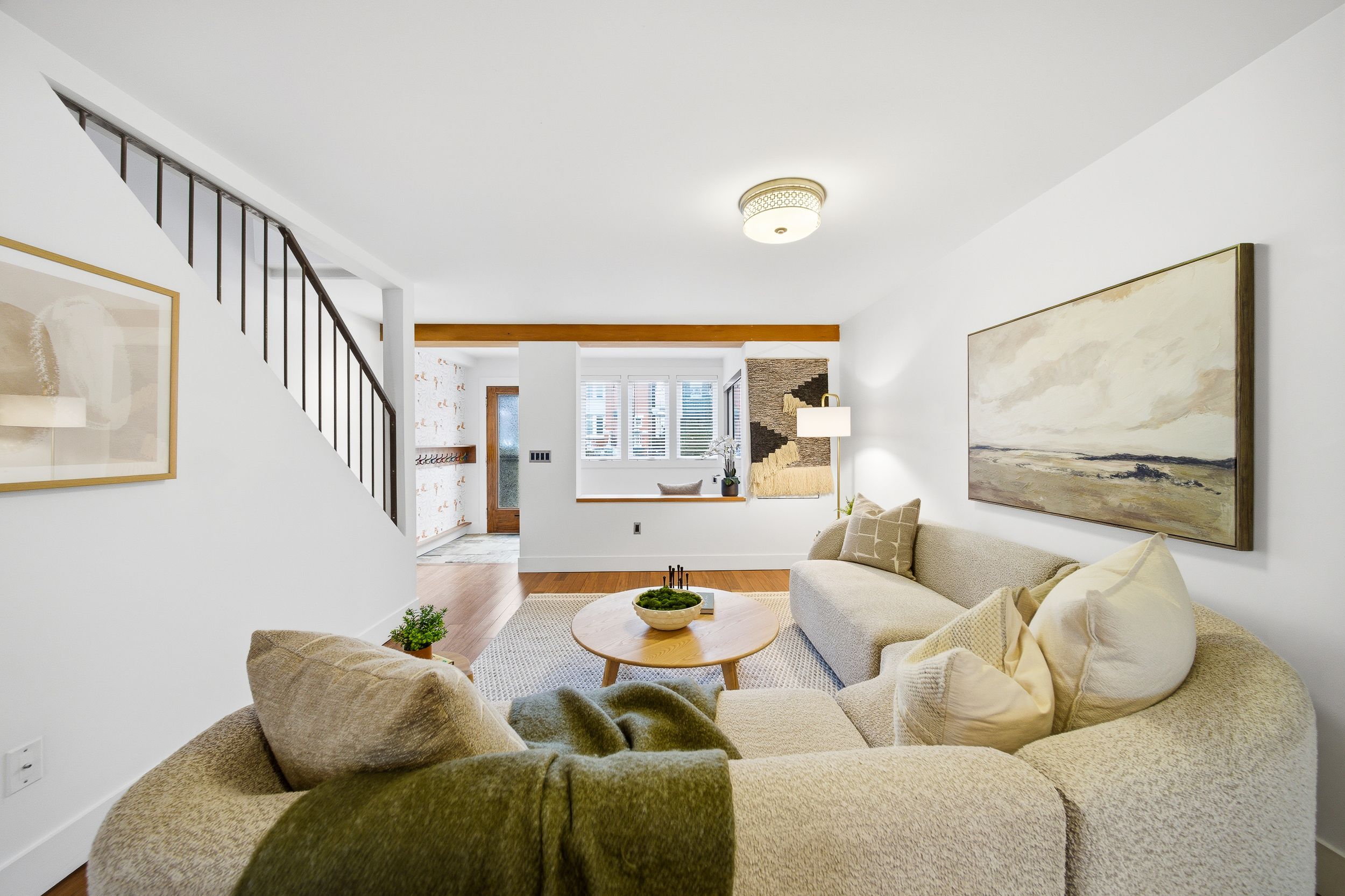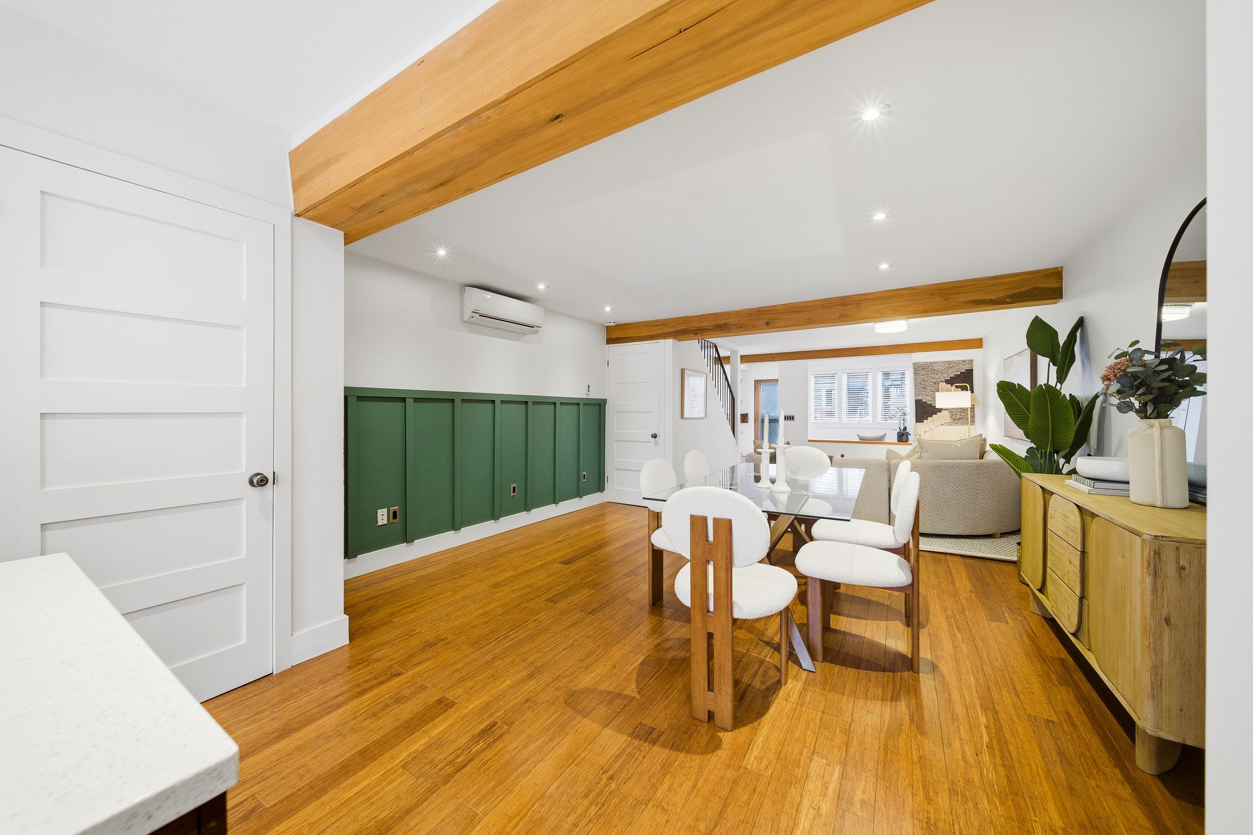 • Open-concept main floor with elegant foyer and preserved vintage door.